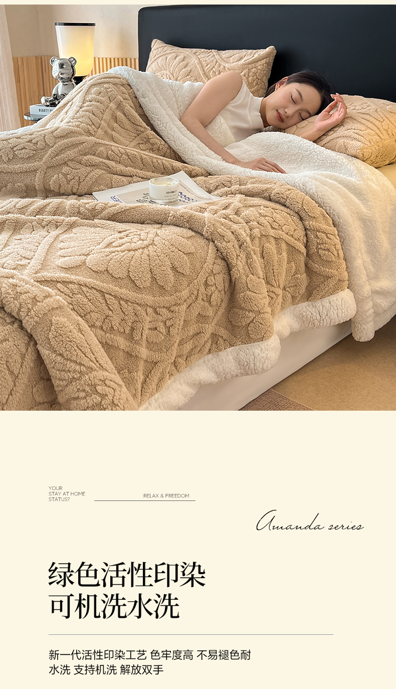 (总)莱家富 2026新款加厚双层复合毯舒棉绒剪花毛毯,兰色,绿色,米色,深灰色,樱花粉,紫色