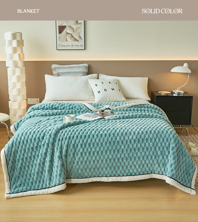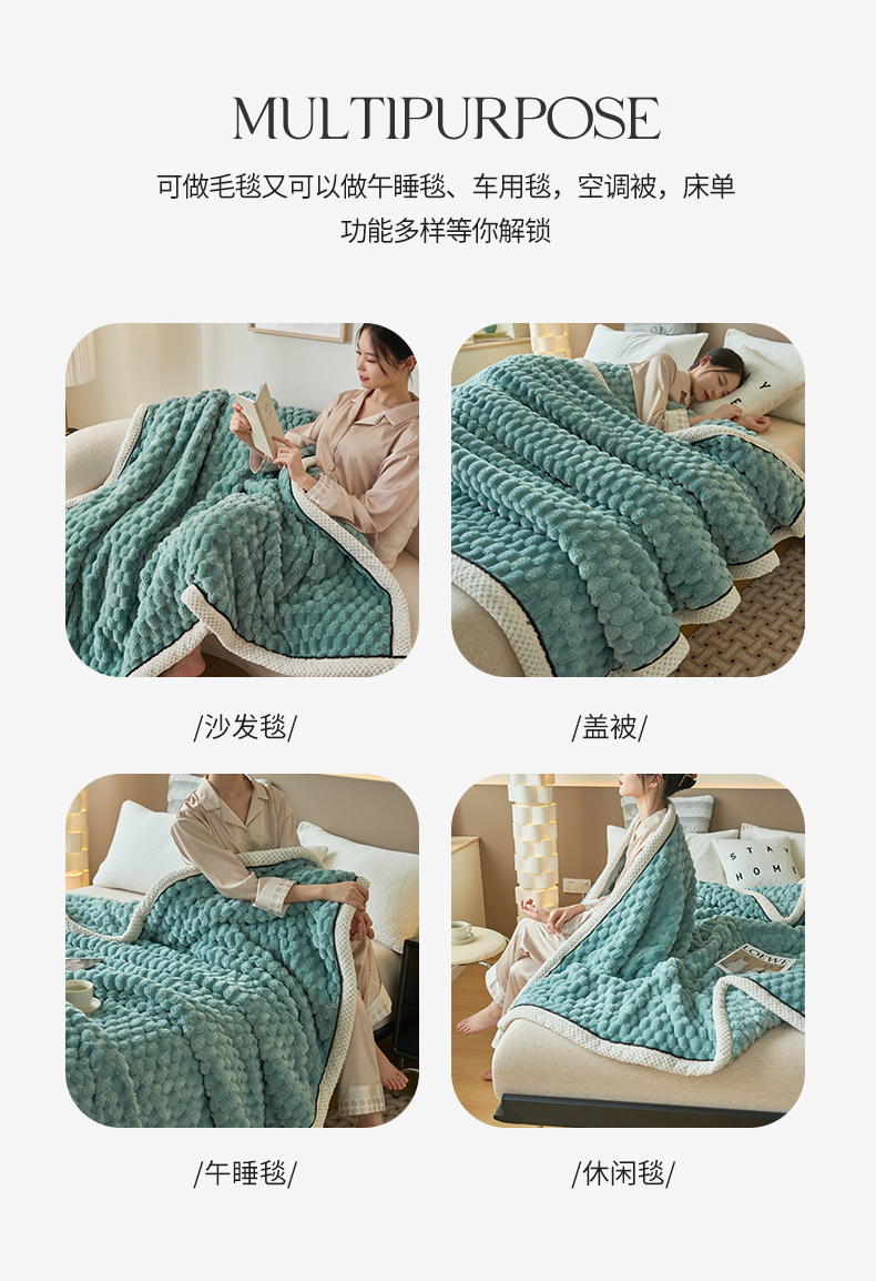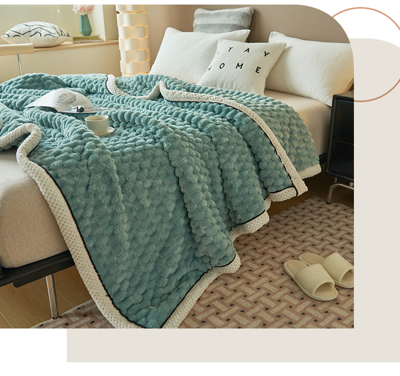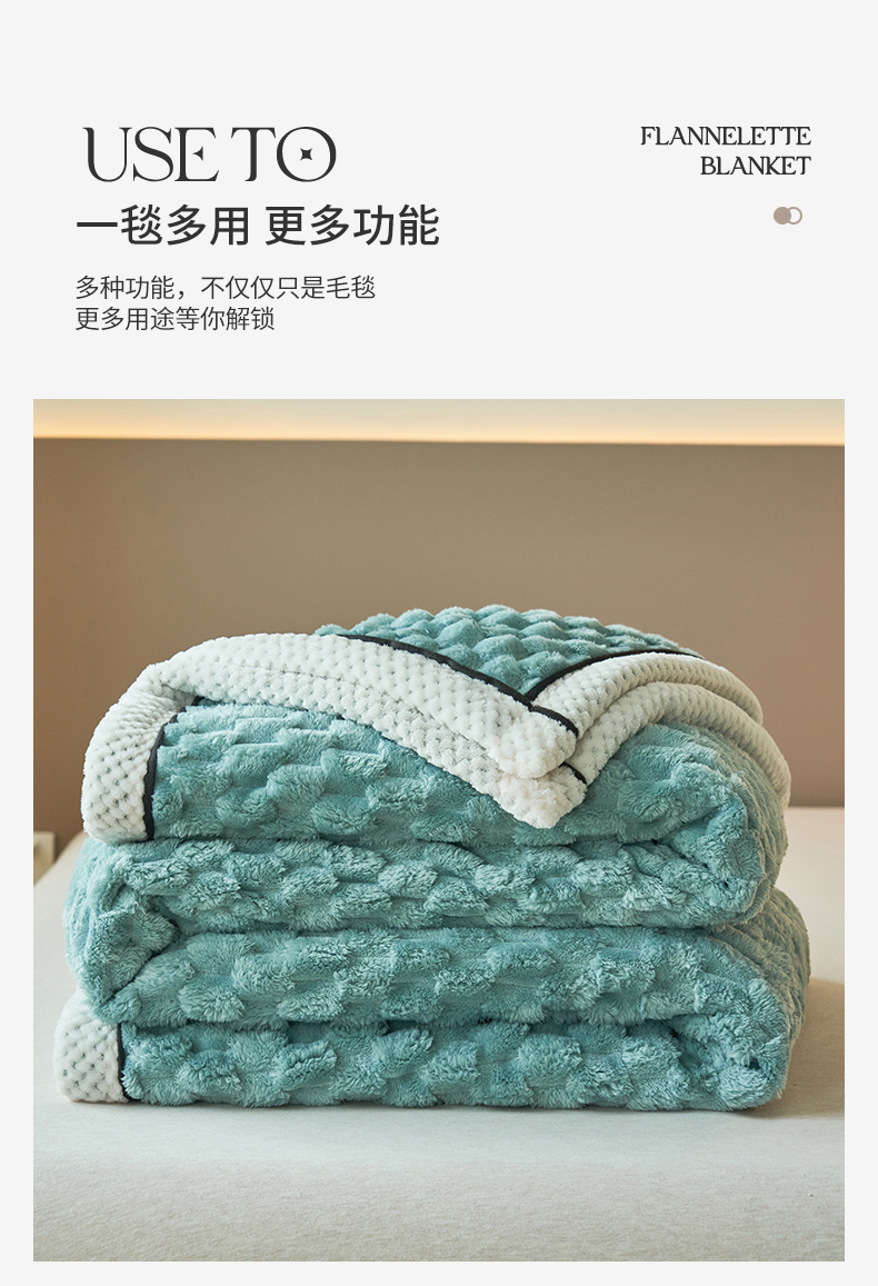 莱家富 2026新款跨境外贸金龟绒多功能毛毯高克重法莱绒牛奶绒保暖毛毯(支持抽空压缩,卷包) 湖水绿
