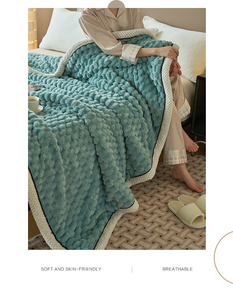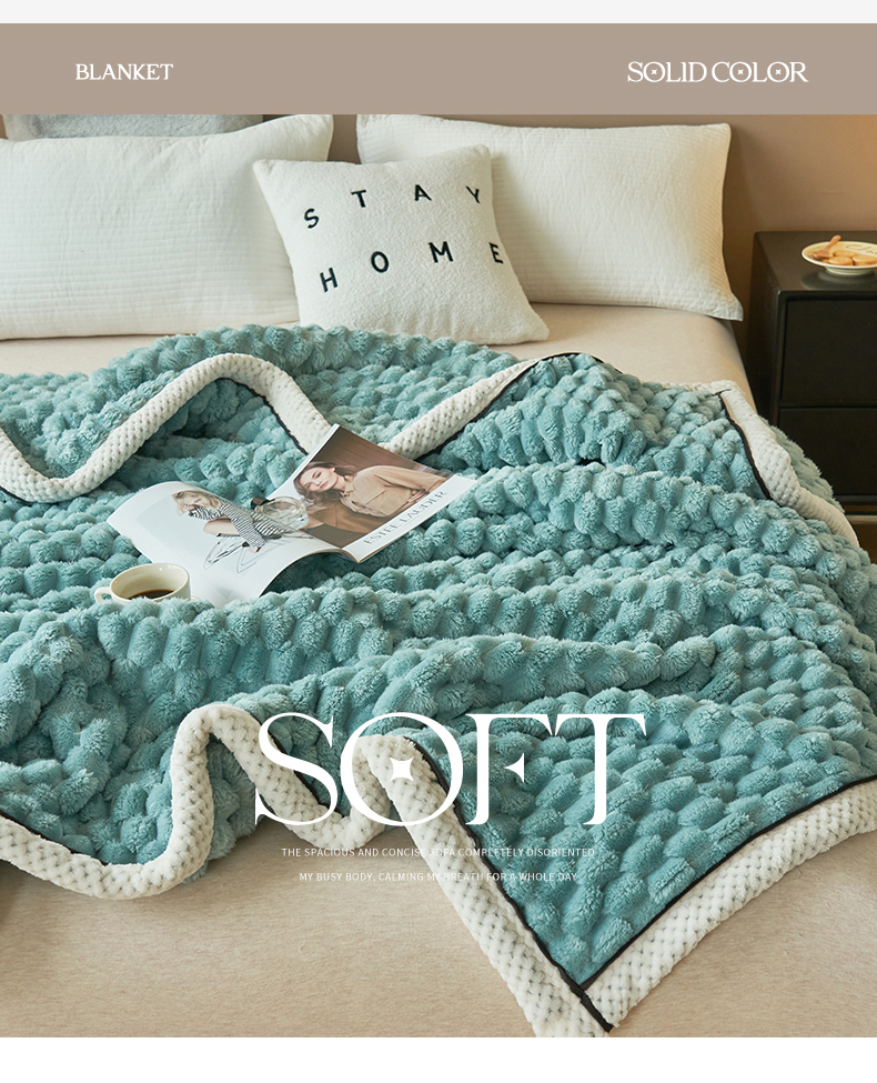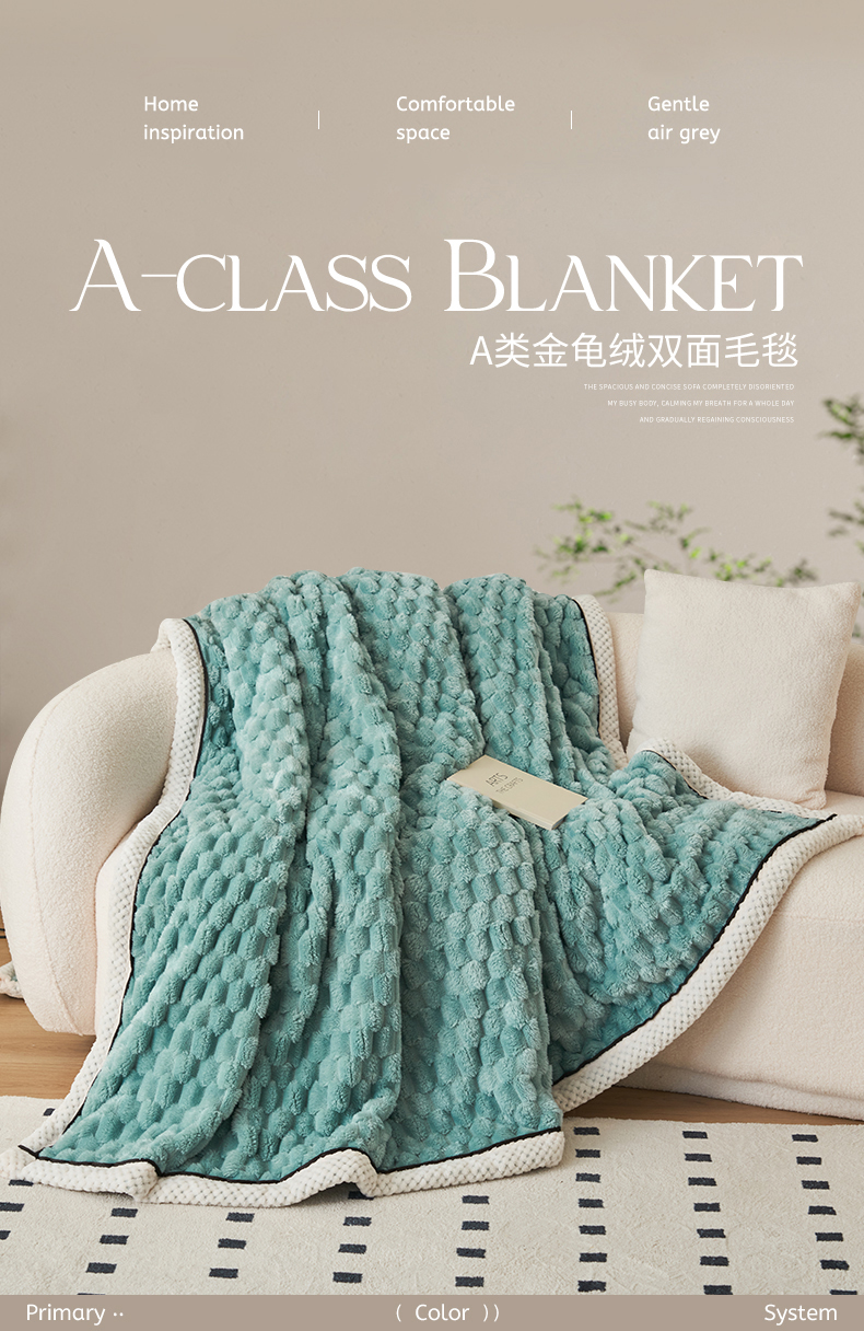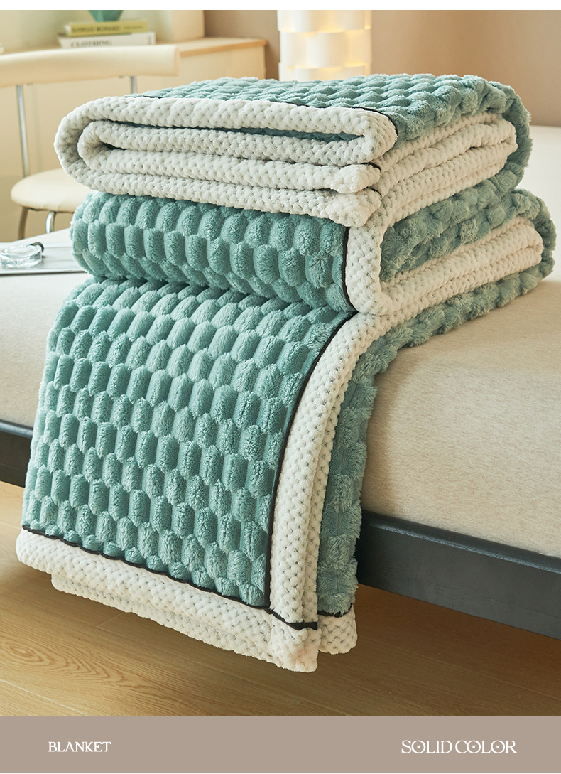 莱家富 2026新款跨境外贸金龟绒多功能毛毯高克重法莱绒牛奶绒保暖毛毯(支持抽空压缩,卷包) 湖水绿