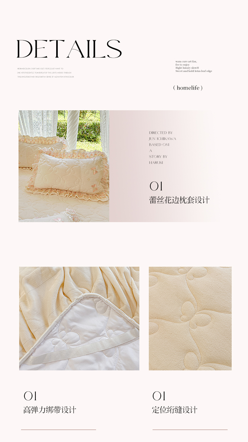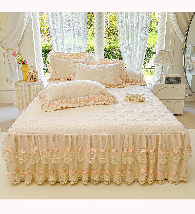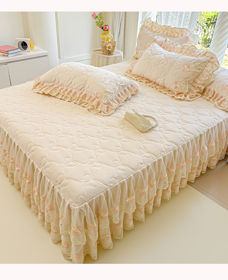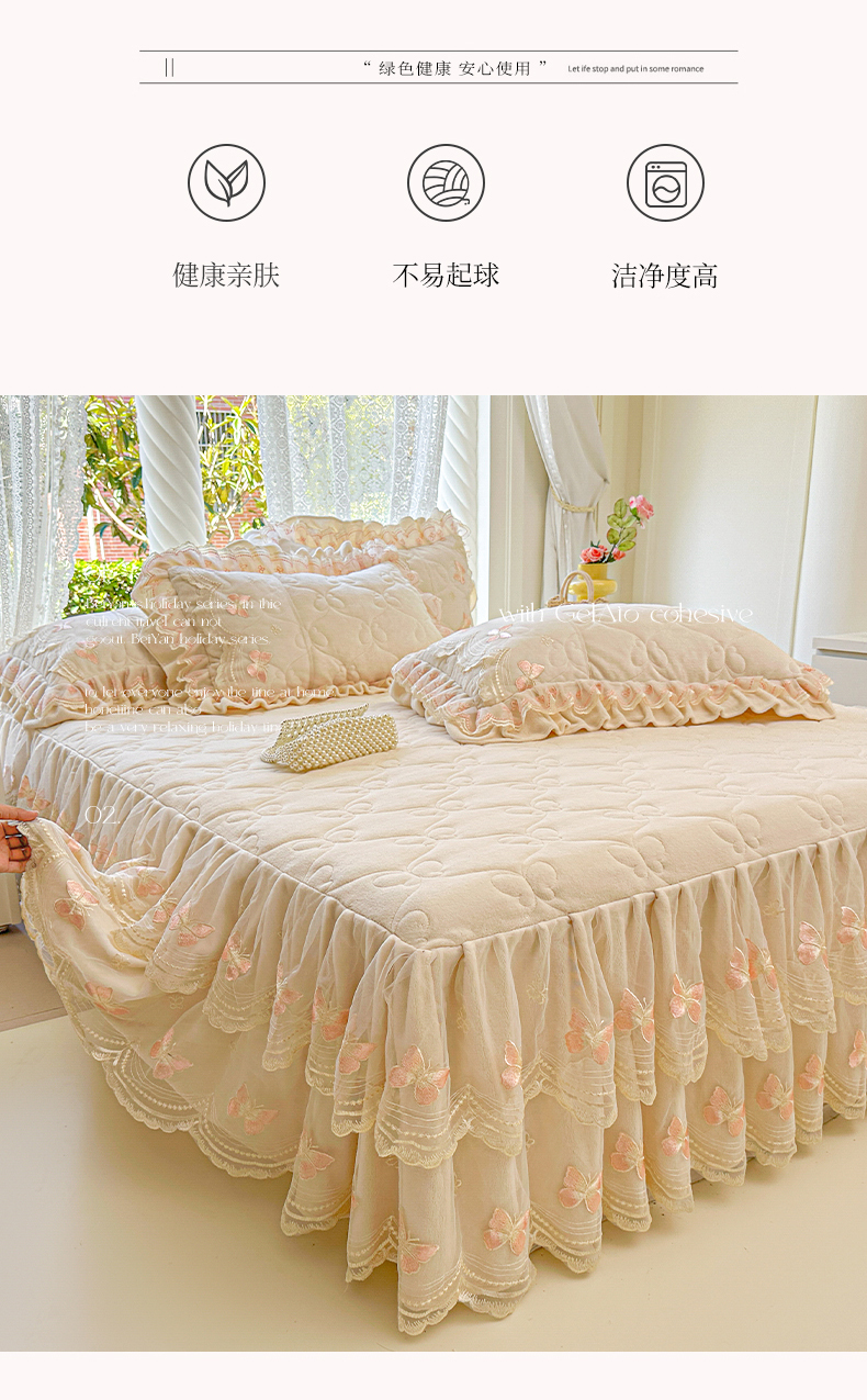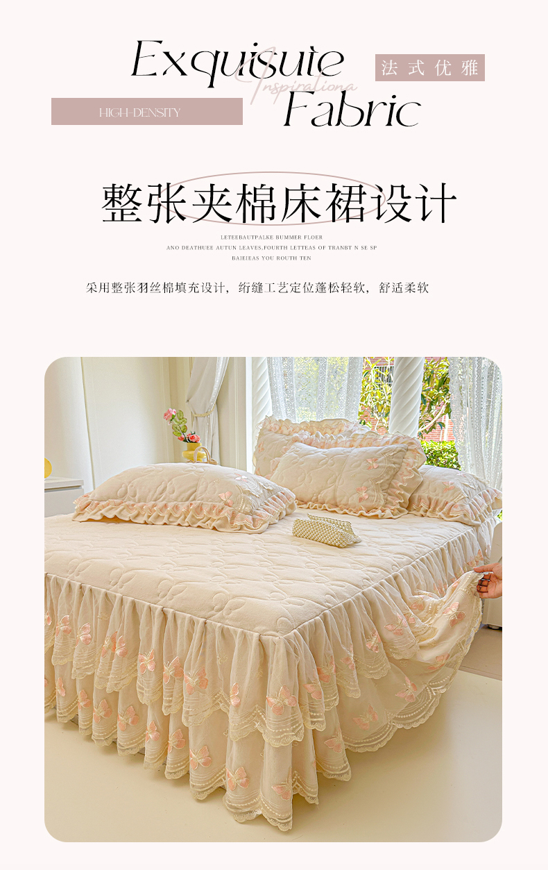 当前位置: 91家纺网 > 商品网购 > 床品套件 > 三件套 > 虹星家纺 2025新款花边牛奶绒床裙三件套系列 蝶恋-粉玉