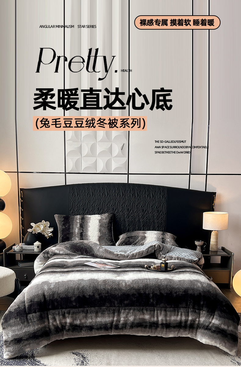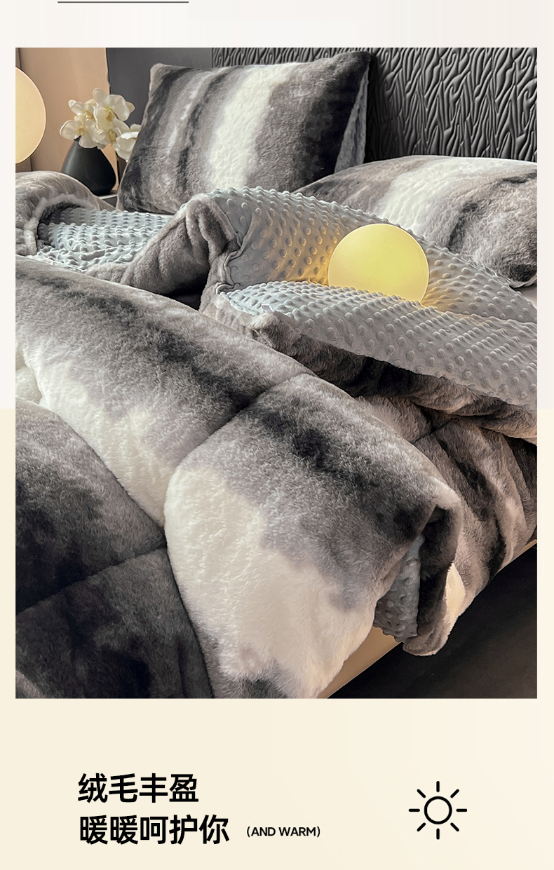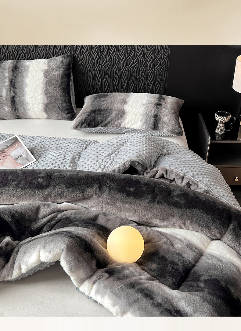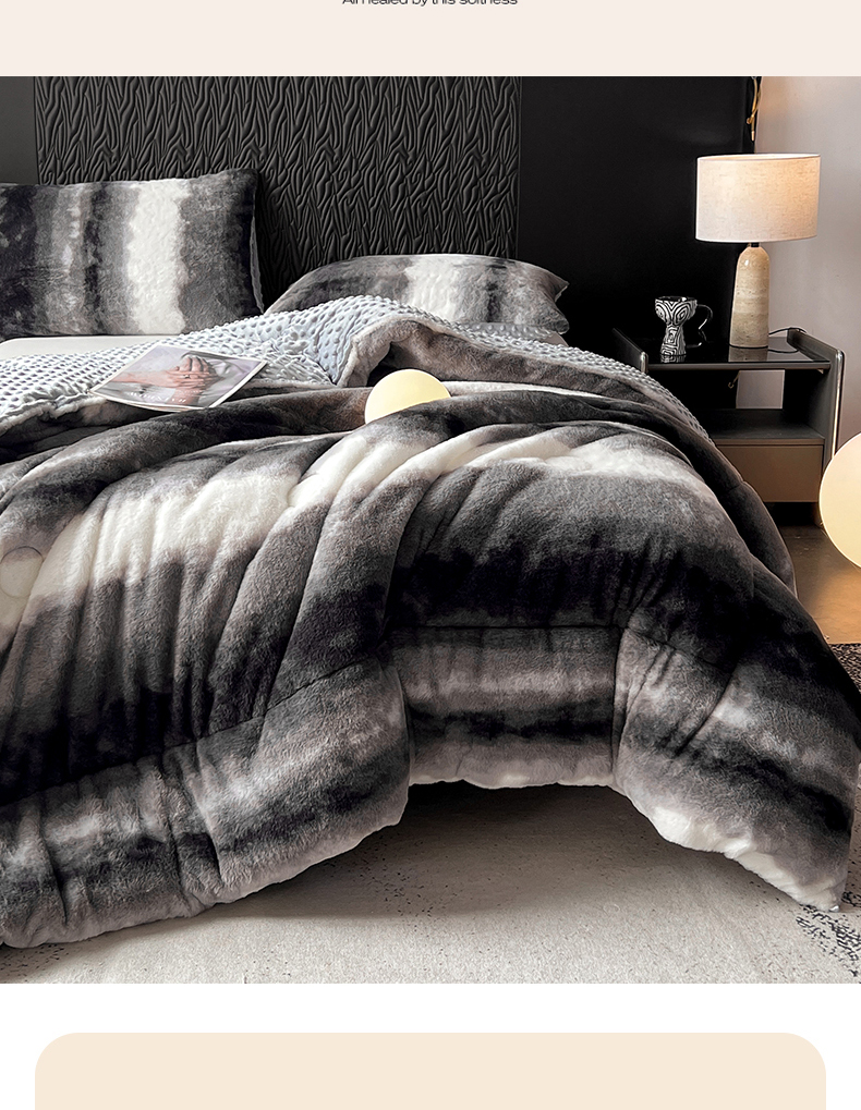 米乐被业 2025新款兔毛印花豆豆被被子被芯 水墨渐变