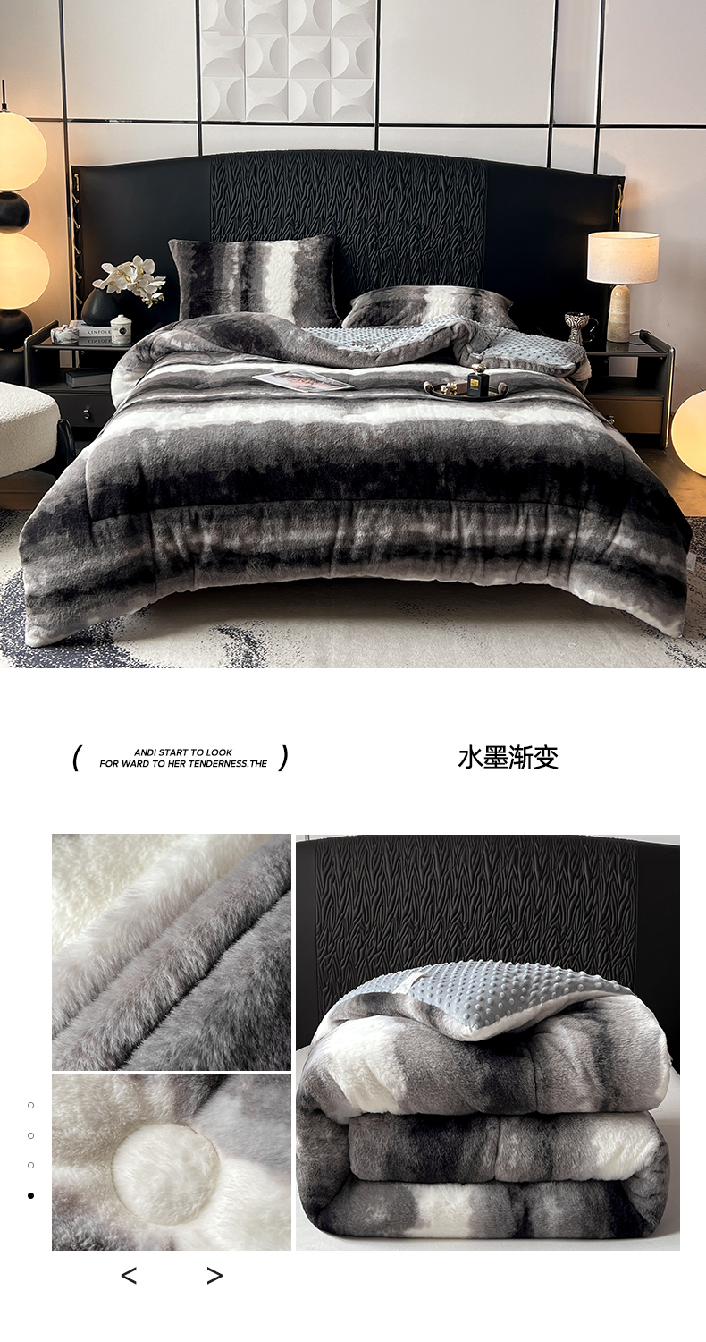 商品名称:米乐被业 2025新款兔毛印花豆豆被被子被芯 水墨渐变