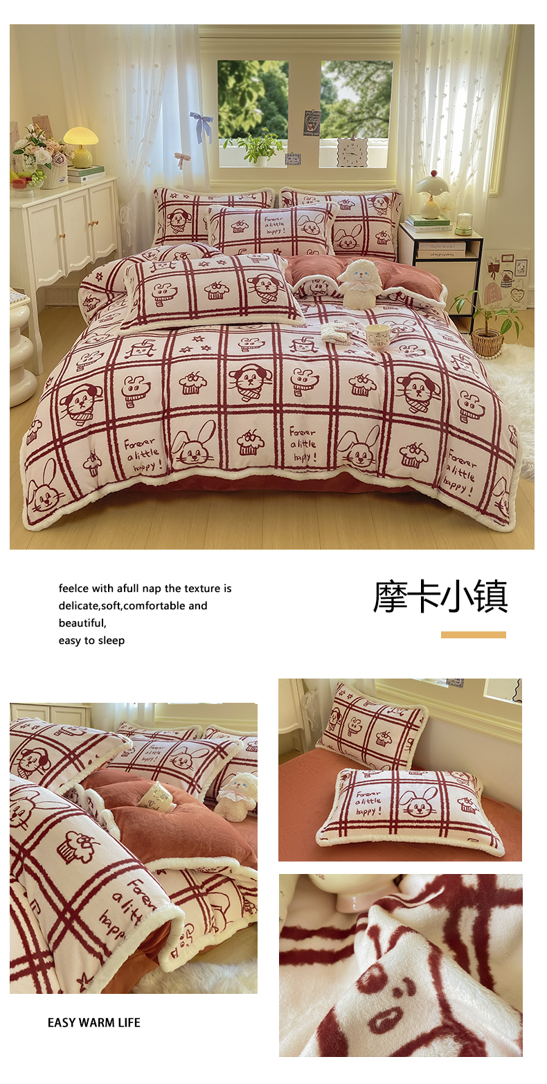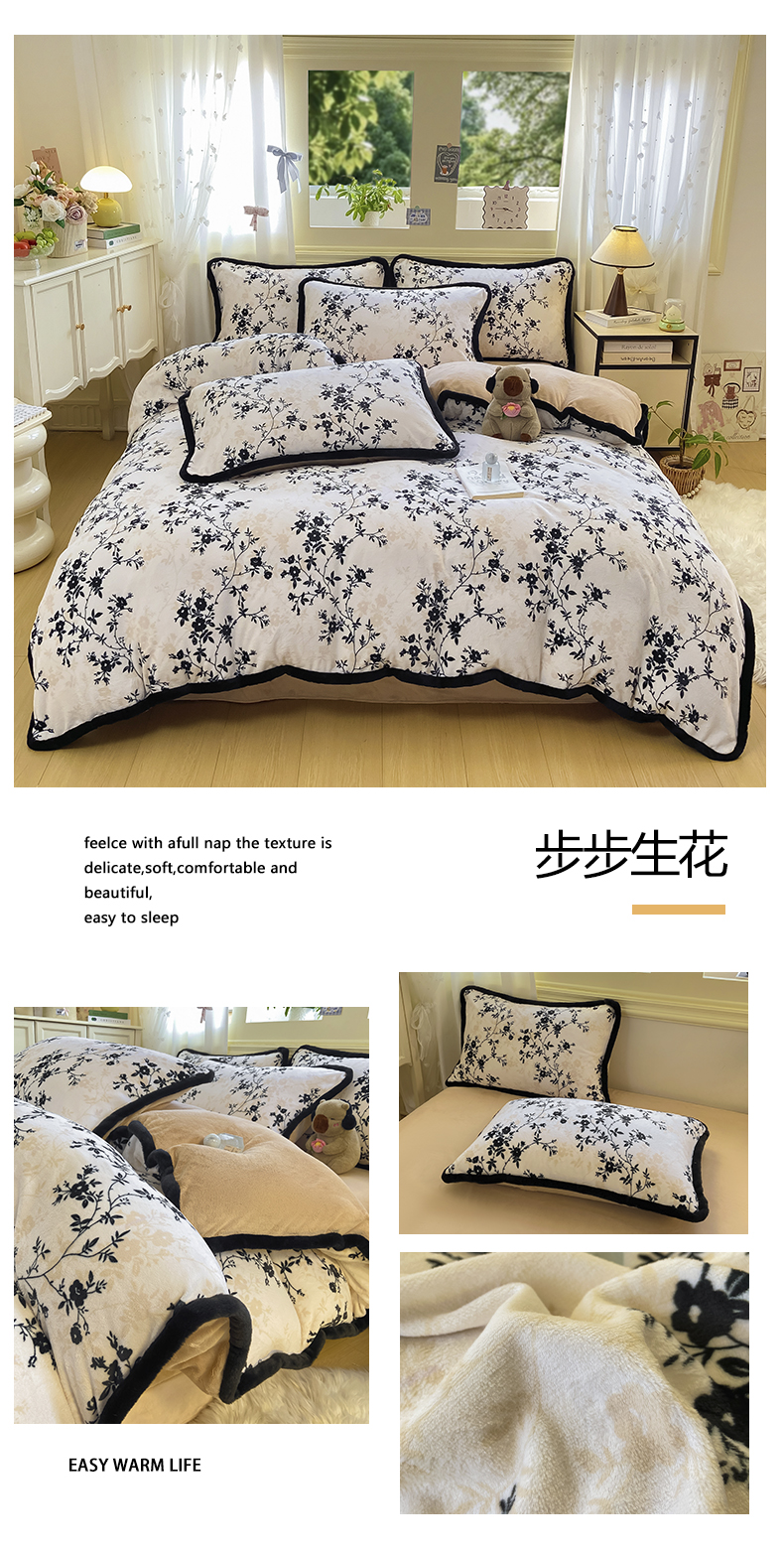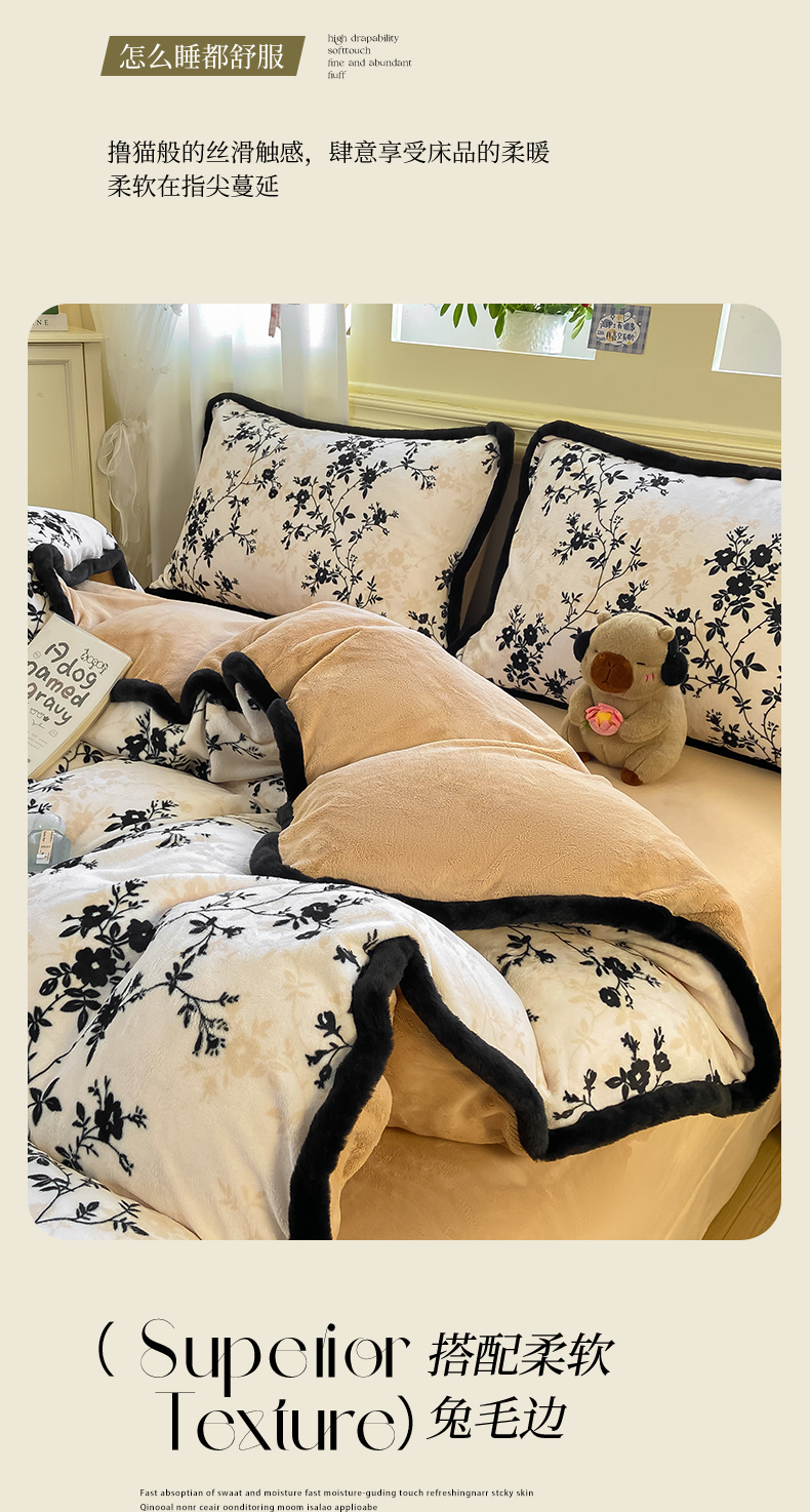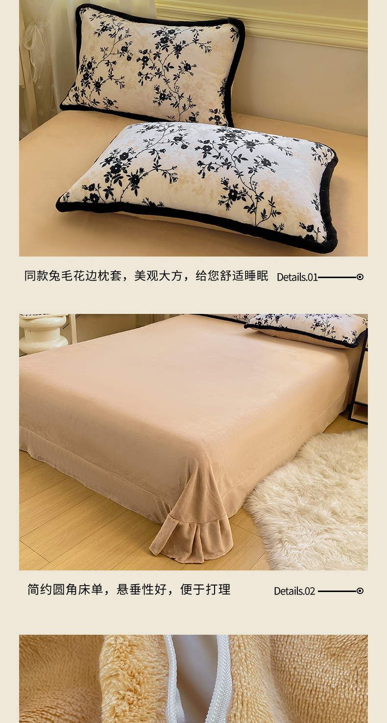 (总)大麦家纺 2025年新款兔毛花边印花牛奶绒四件套