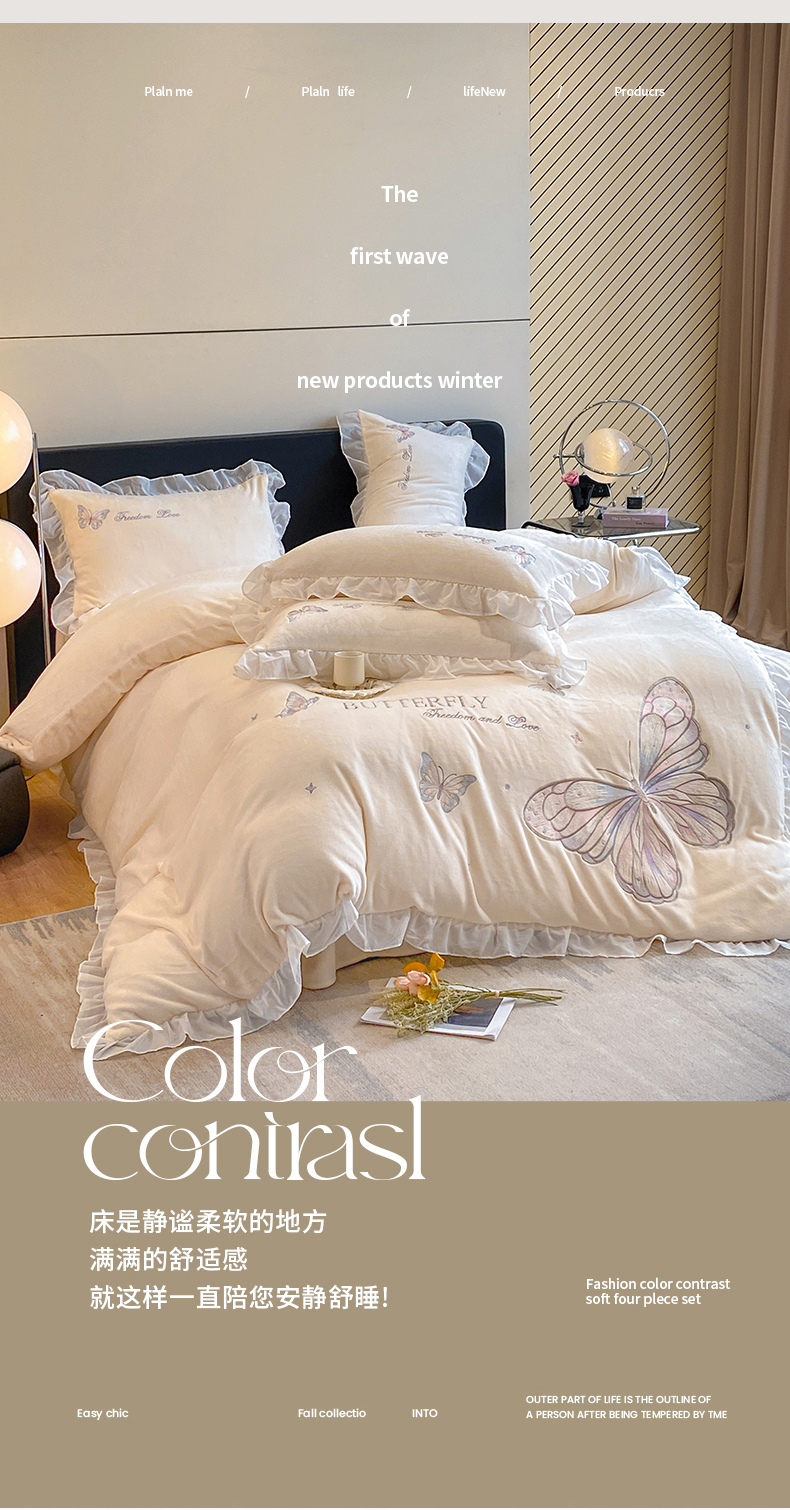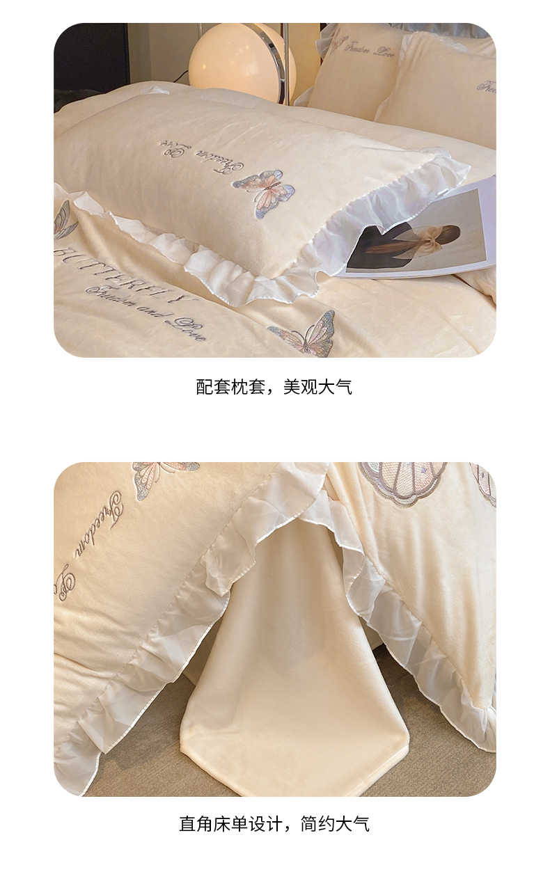 商品名称:(总)木子家纺 2025新款牛奶绒纯色刺绣花边四件套