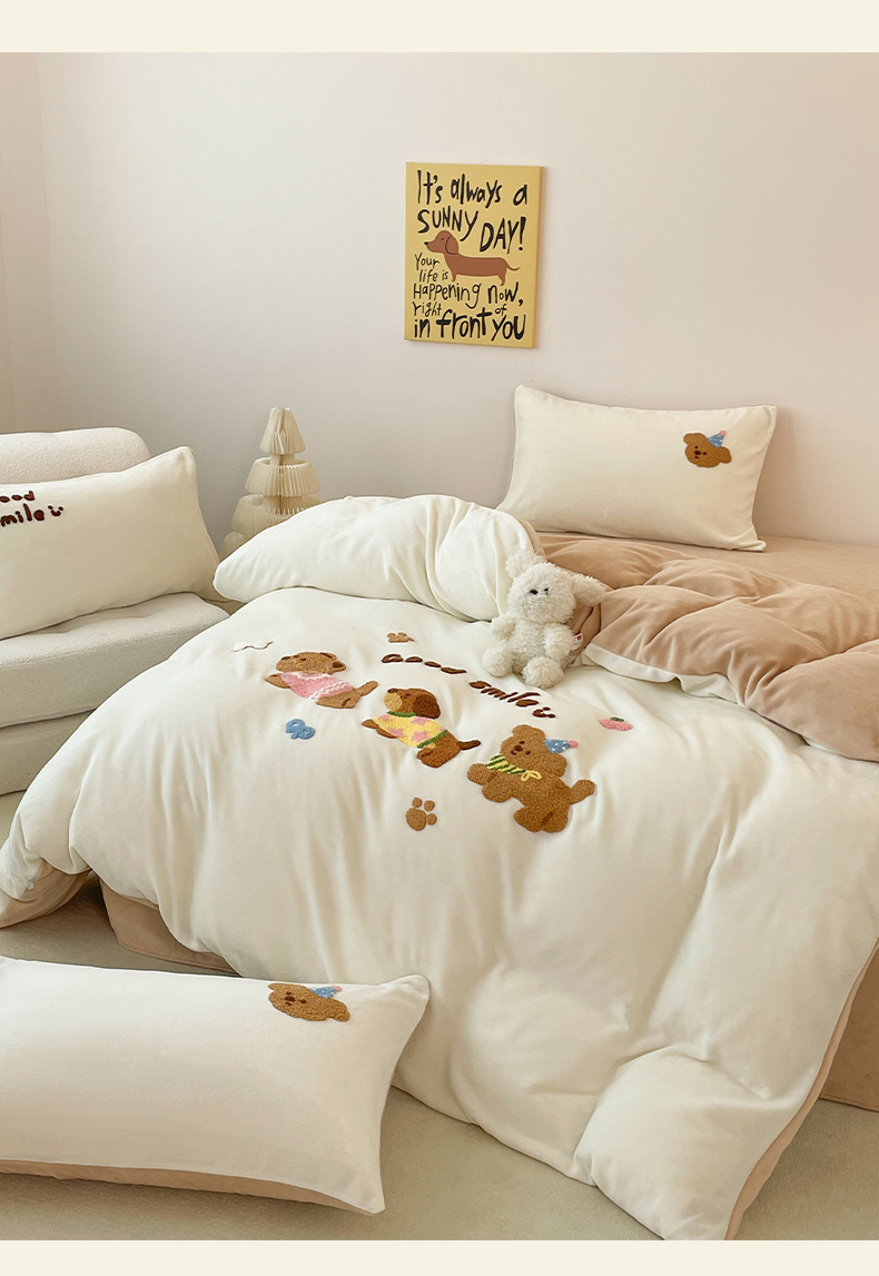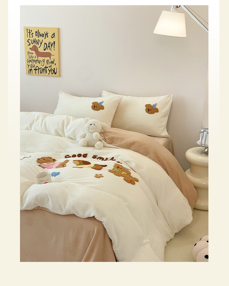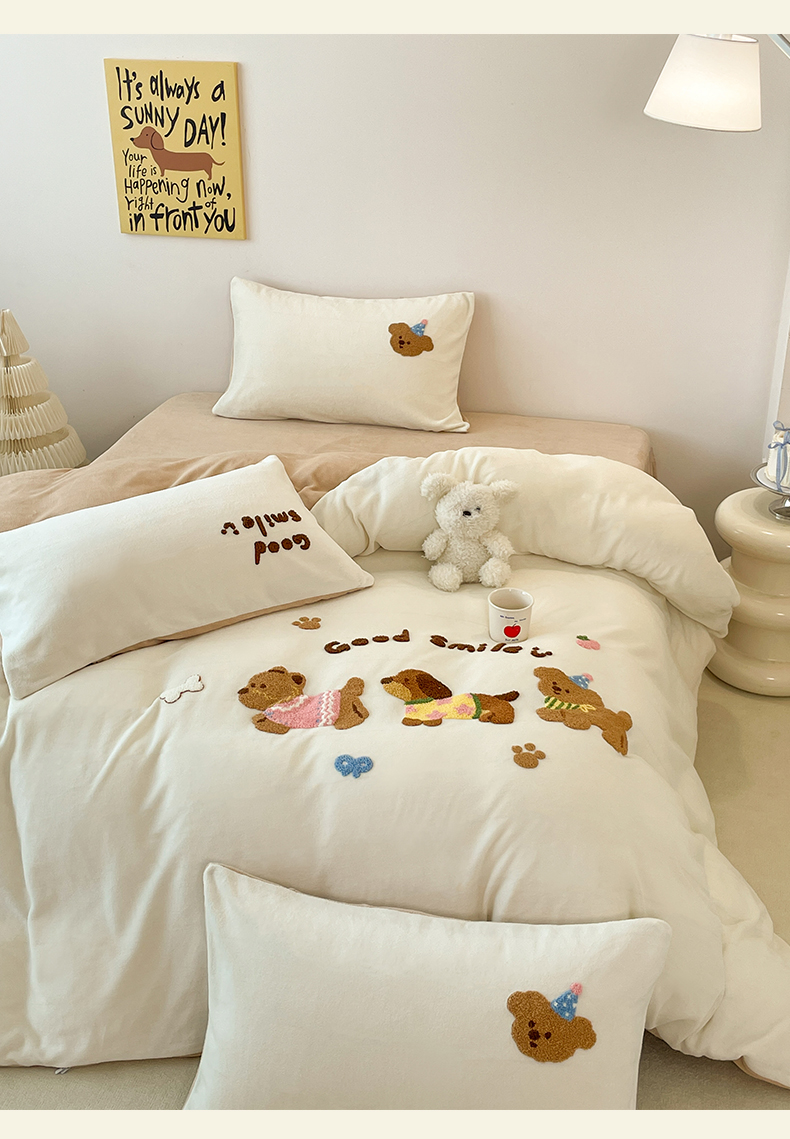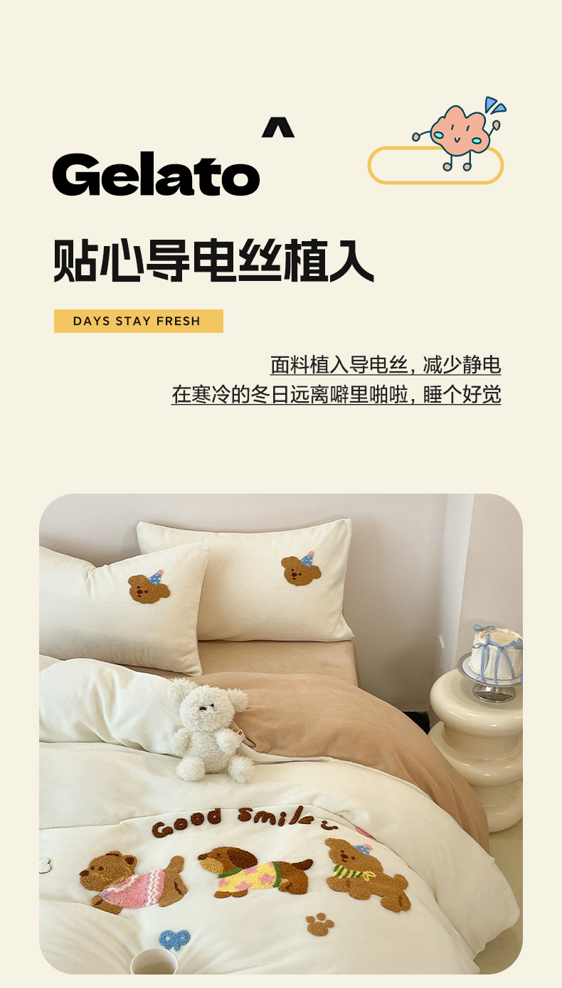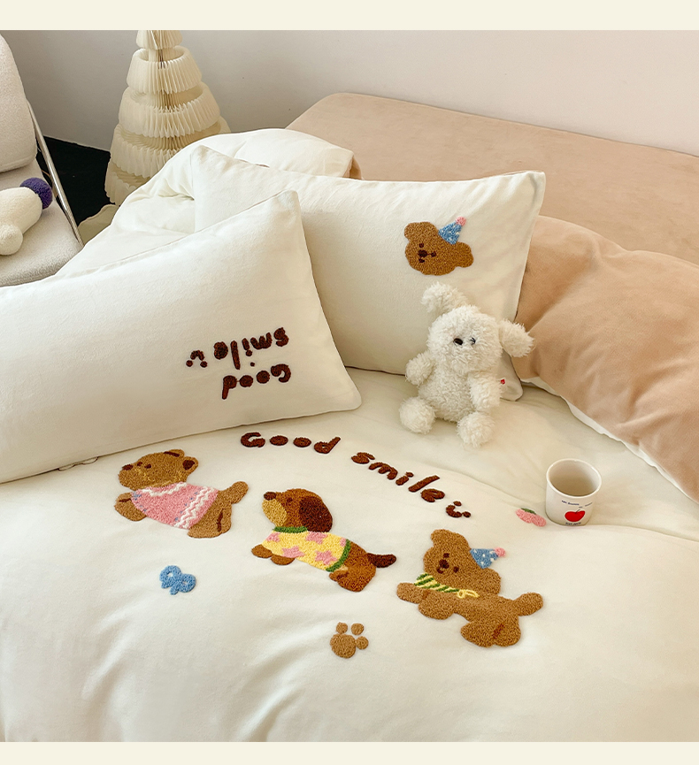 当前位置: 91家纺网 > 商品网购 > 床品套件 > 四件套 > 牛奶绒四件套 > 启发 2025新款牛奶绒毛巾绣四件套场景一 腊肠狗狗