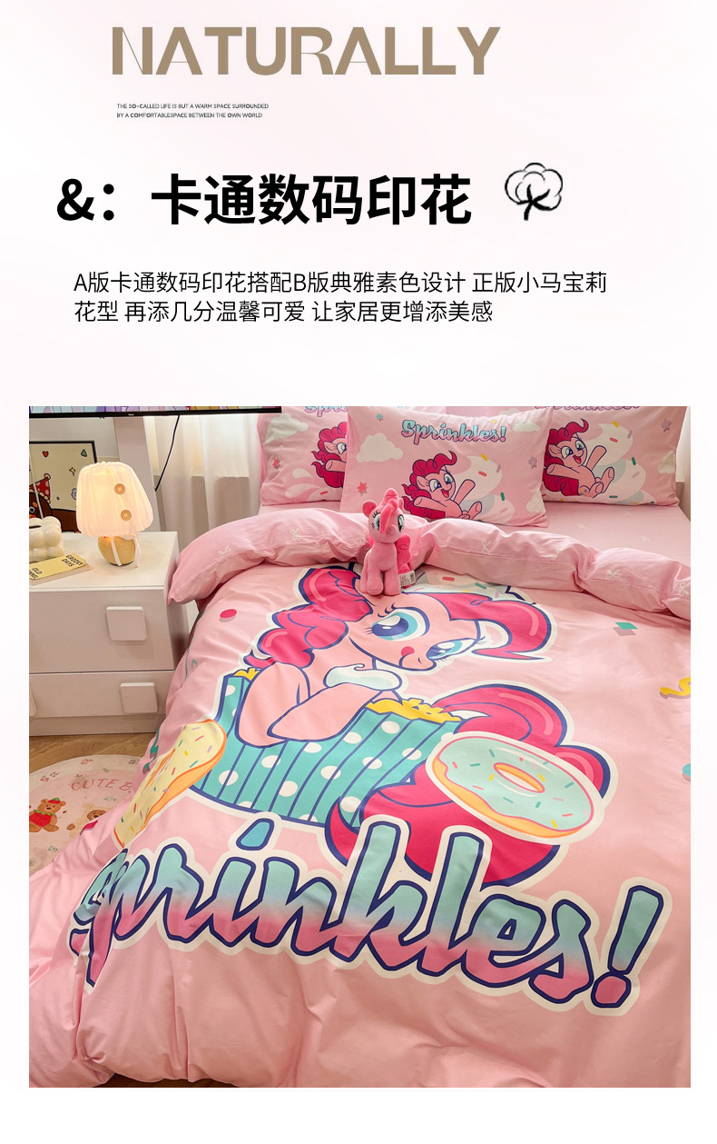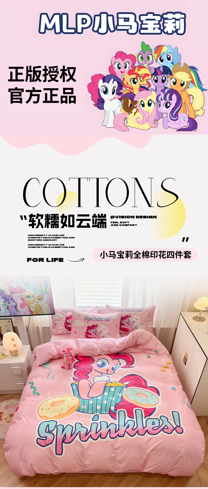 当前位置: 91家纺网 > 商品网购 > 床品套件 > 四件套 > 全棉普通四件套 > 暮思家居 2025新款正版授权小马宝莉大版全棉数码印花纯棉四件套 大版-甜甜圈碧琪