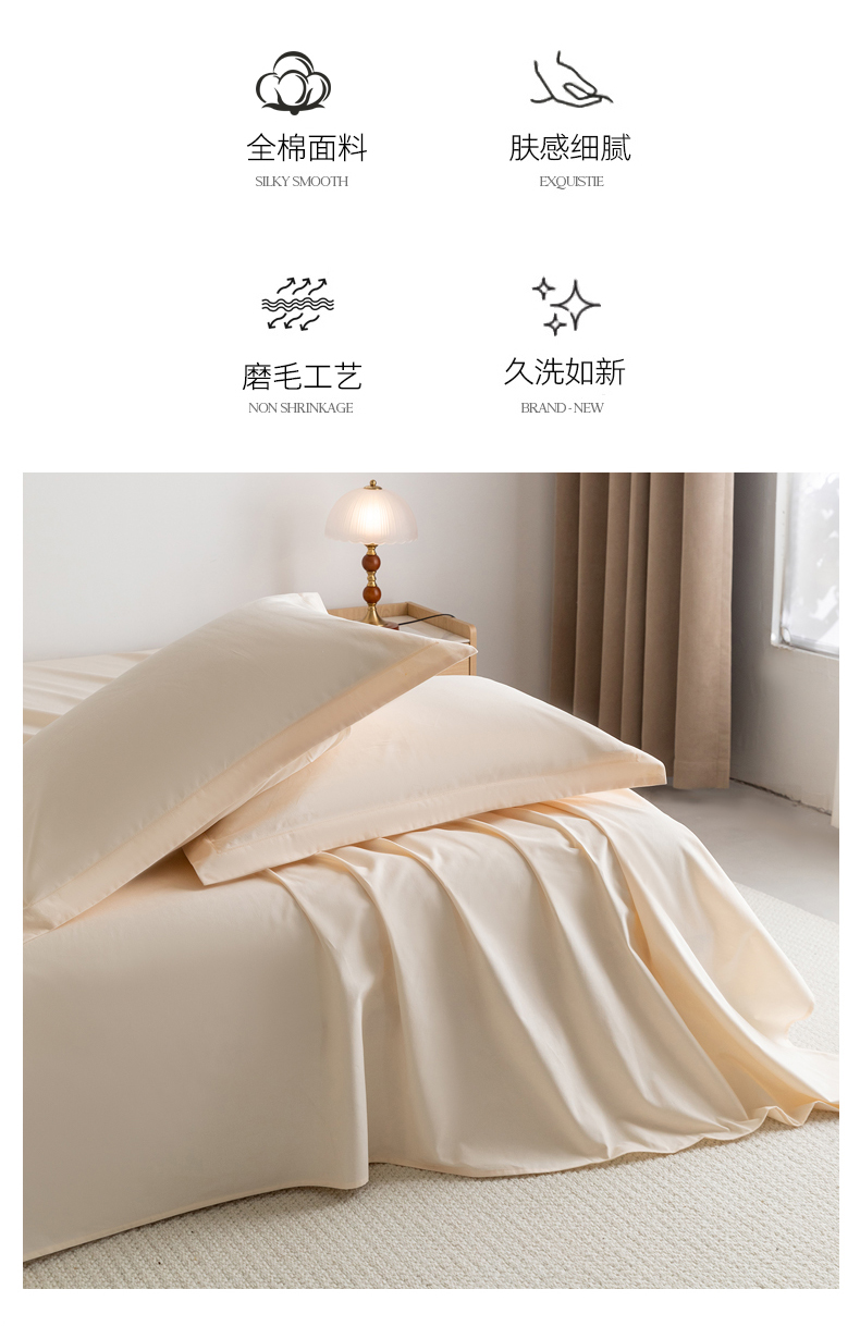 • 91家纺网 家纺一手货源 找家纺 宝时兰 2025新款加厚100%全棉高支高密长绒棉纯色磨毛床单纯棉单件床单-系列二【提供买家秀/可定制其他尺寸】 奶黄