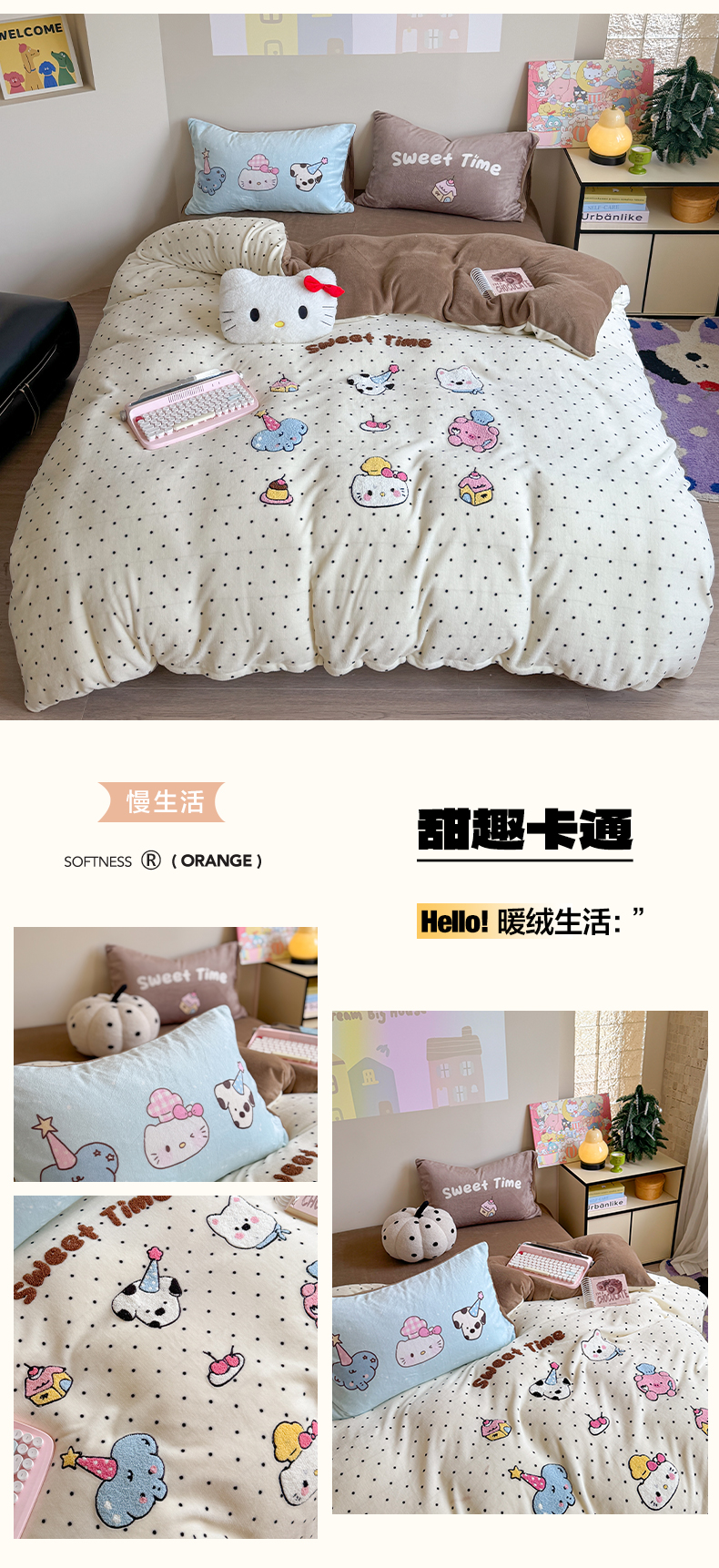 商品名称:美乐迪家纺 2025新款牛奶绒卡通绣花四件套 甜趣卡通