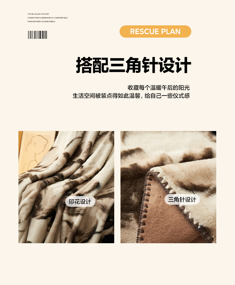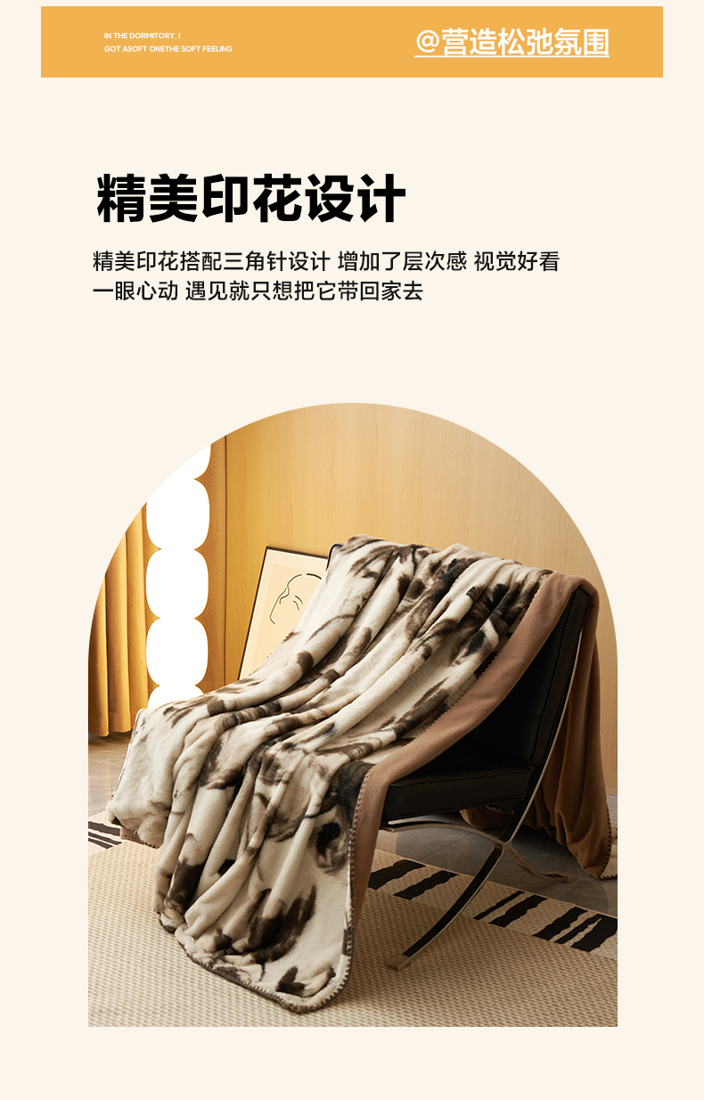 商品名称:晨曦家纺 2025新款兔毛绒海獭绒双层毛毯三角针复合毛毯 幽梦咖