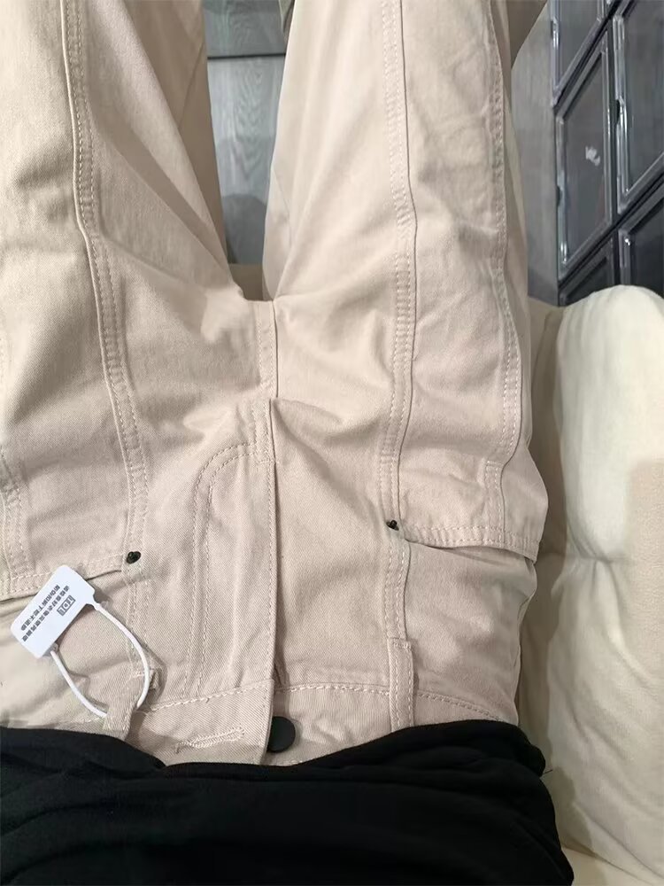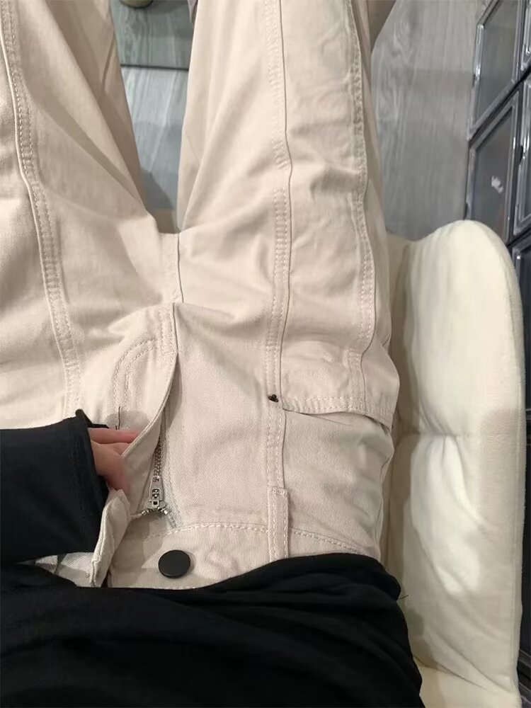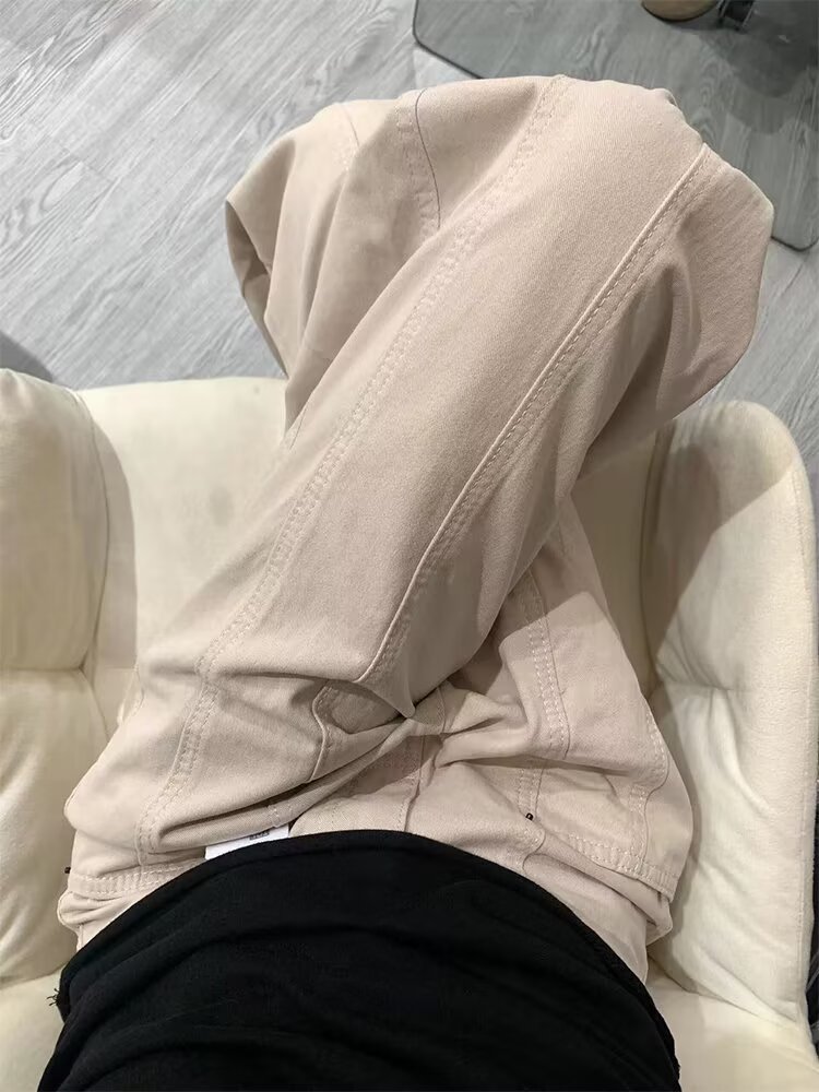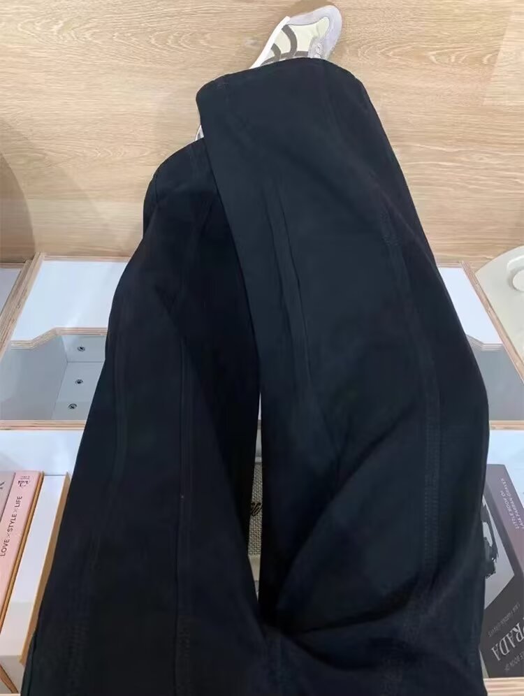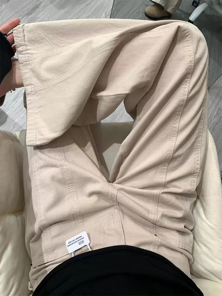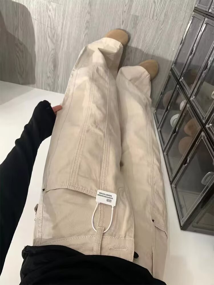 洛兰沙家居馆【只代发】【只代发】 2025新款只代发 批发牛仔裤米杏色阔腿休闲工装裤女春季新款设计感高腰宽松显瘦直筒牛仔裤子 黑色