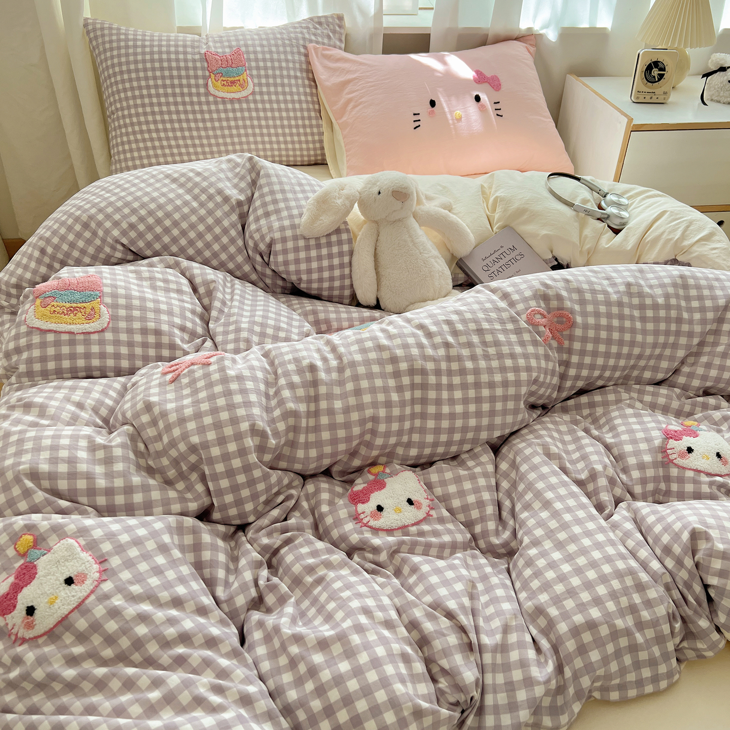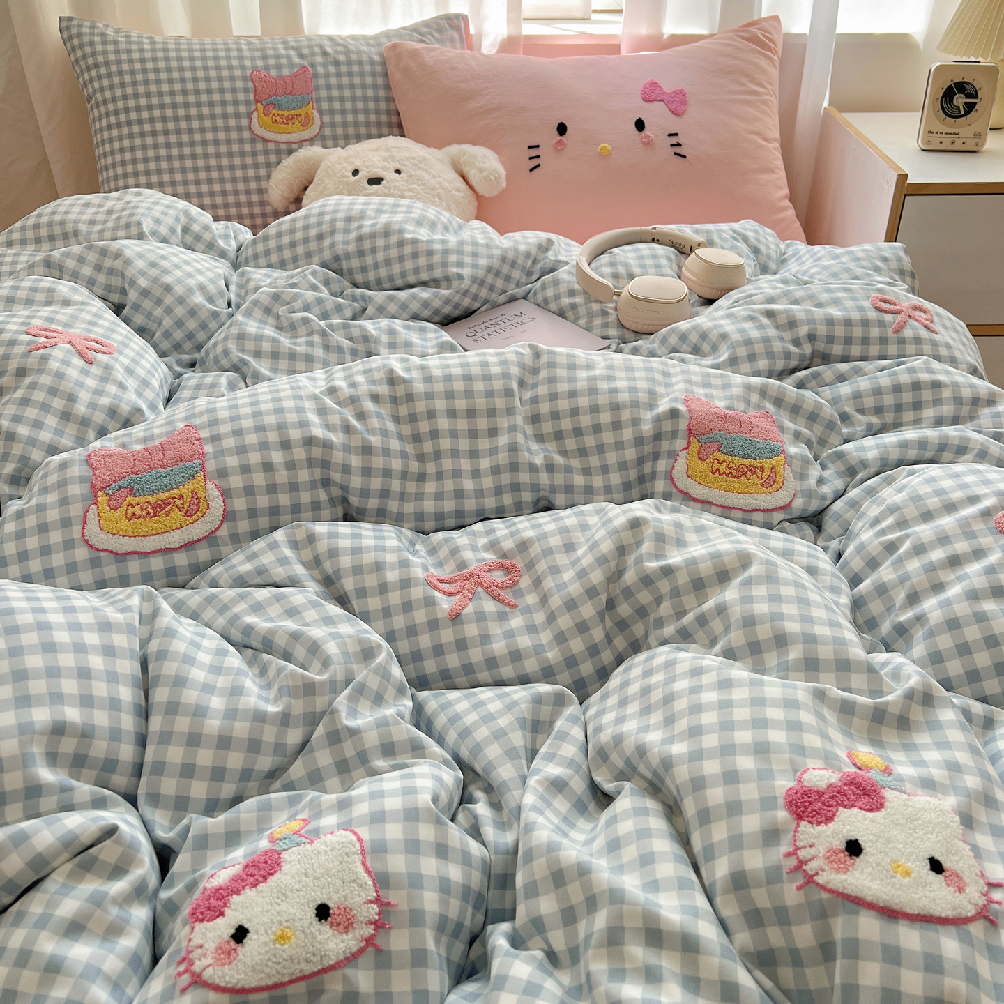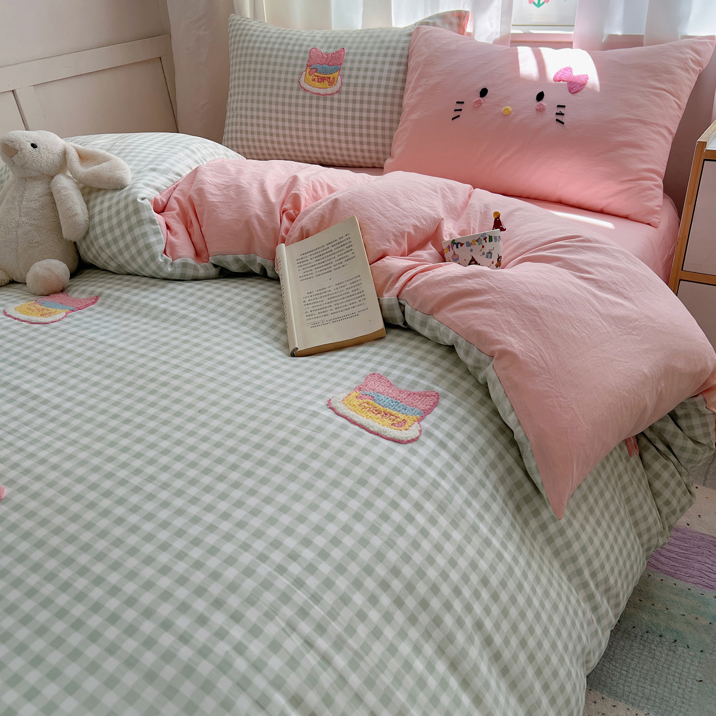当前位置: 91家纺网 > 商品网购 > 床品套件 > 四件套 > 毛巾绣四件套 > 顾里家纺 2025新款格子奶系蛋糕猫云朵棉毛巾绣套件 绿格蛋糕猫