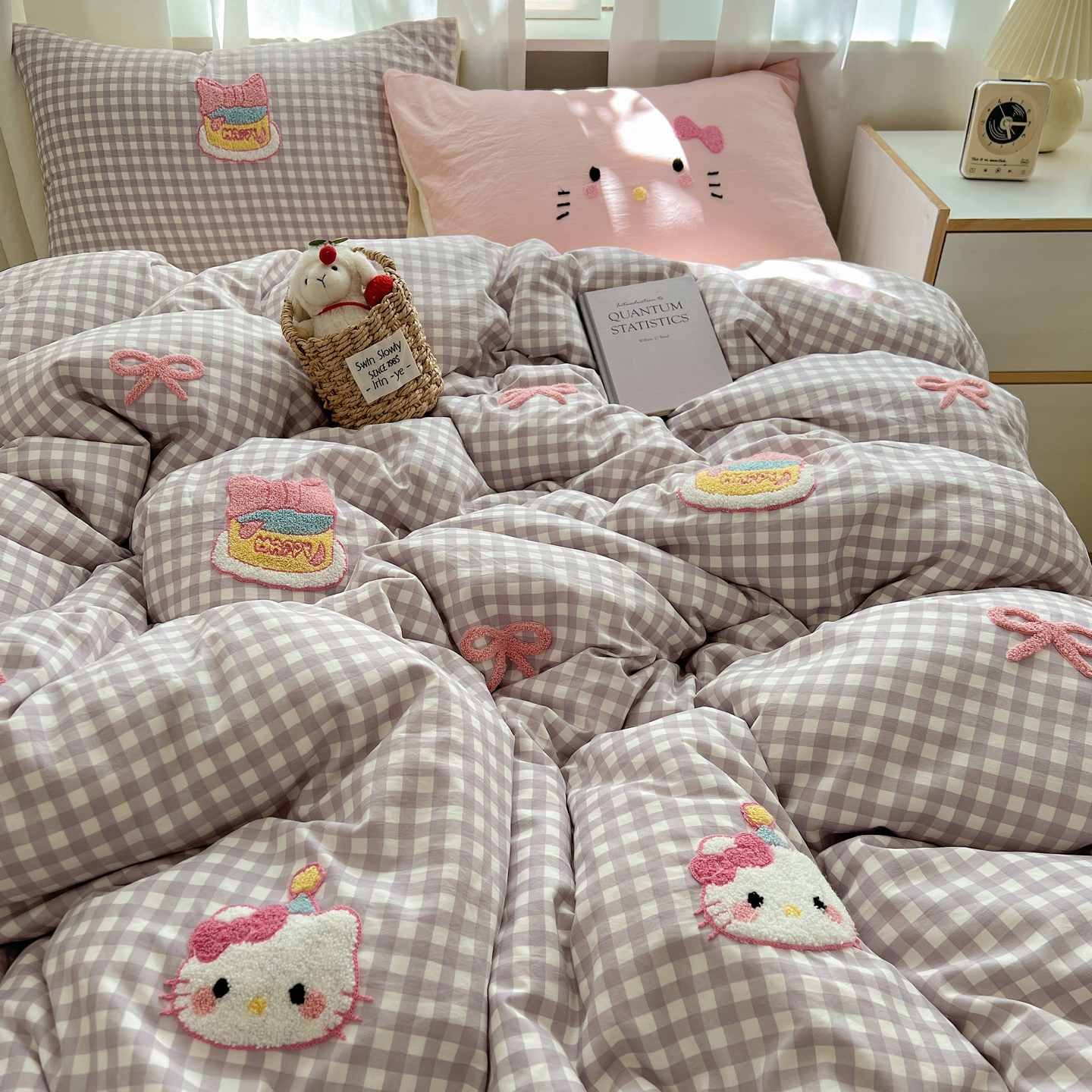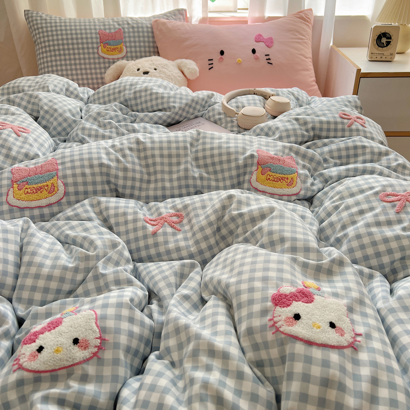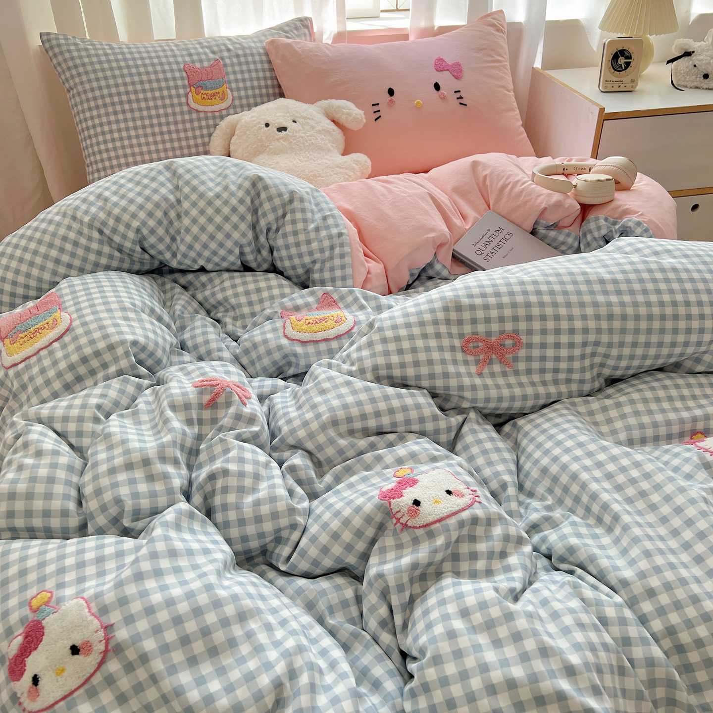 当前位置: 91家纺网 > 商品网购 > 床品套件 > 四件套 > 毛巾绣四件套 > 顾里家纺 2025新款格子奶系蛋糕猫云朵棉毛巾绣套件 绿格蛋糕猫