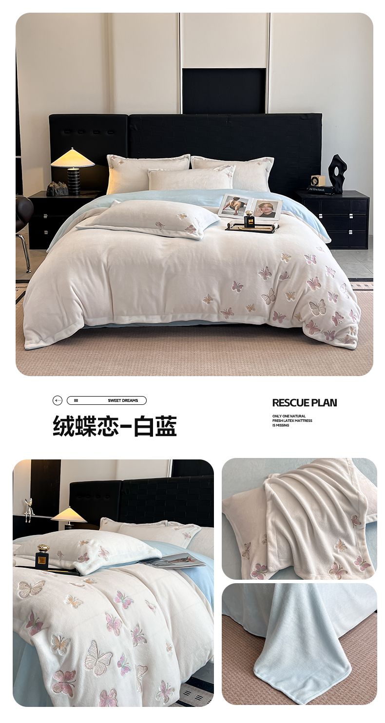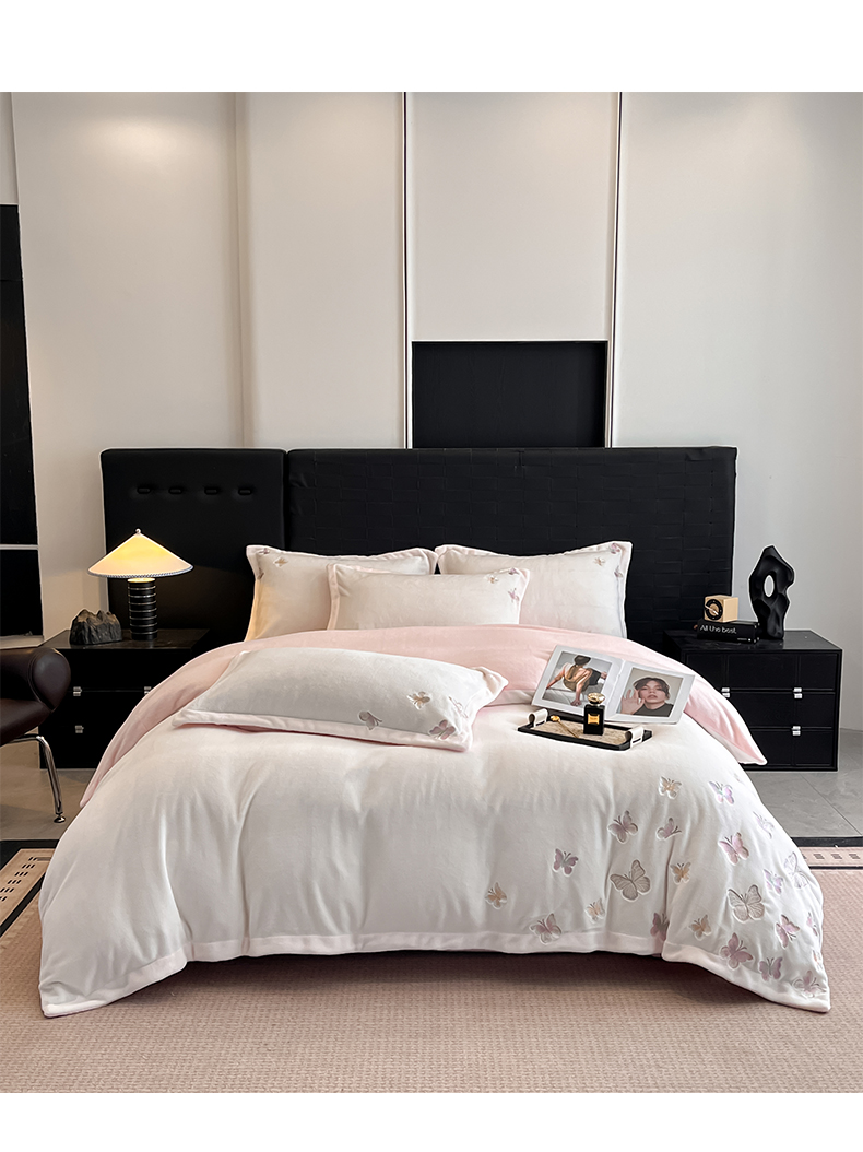 逸尚阁 2025新款高克重牛奶绒刺绣四件套-绒蝶恋系列 绒蝶恋-迷幻紫
