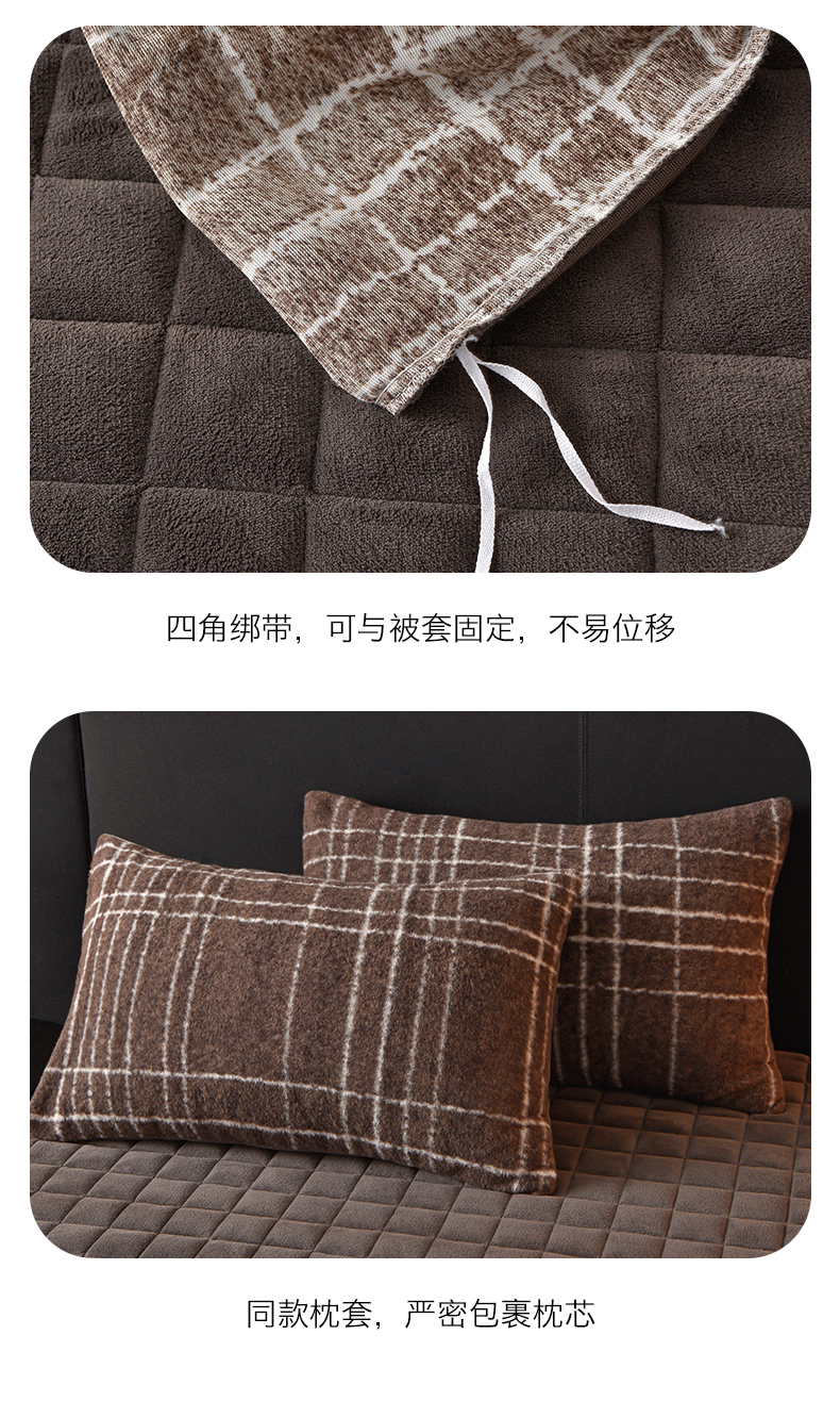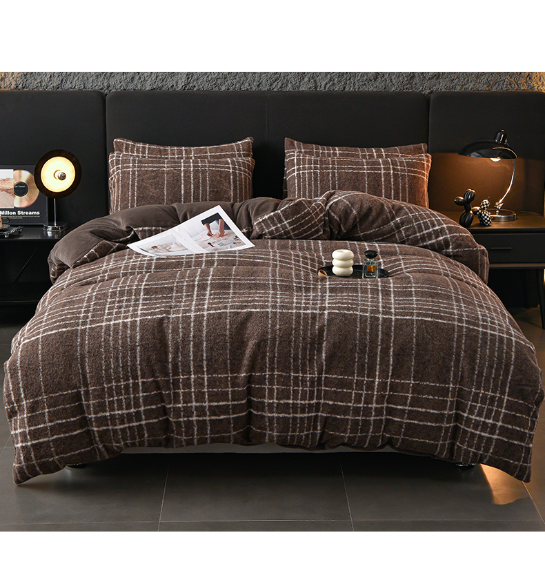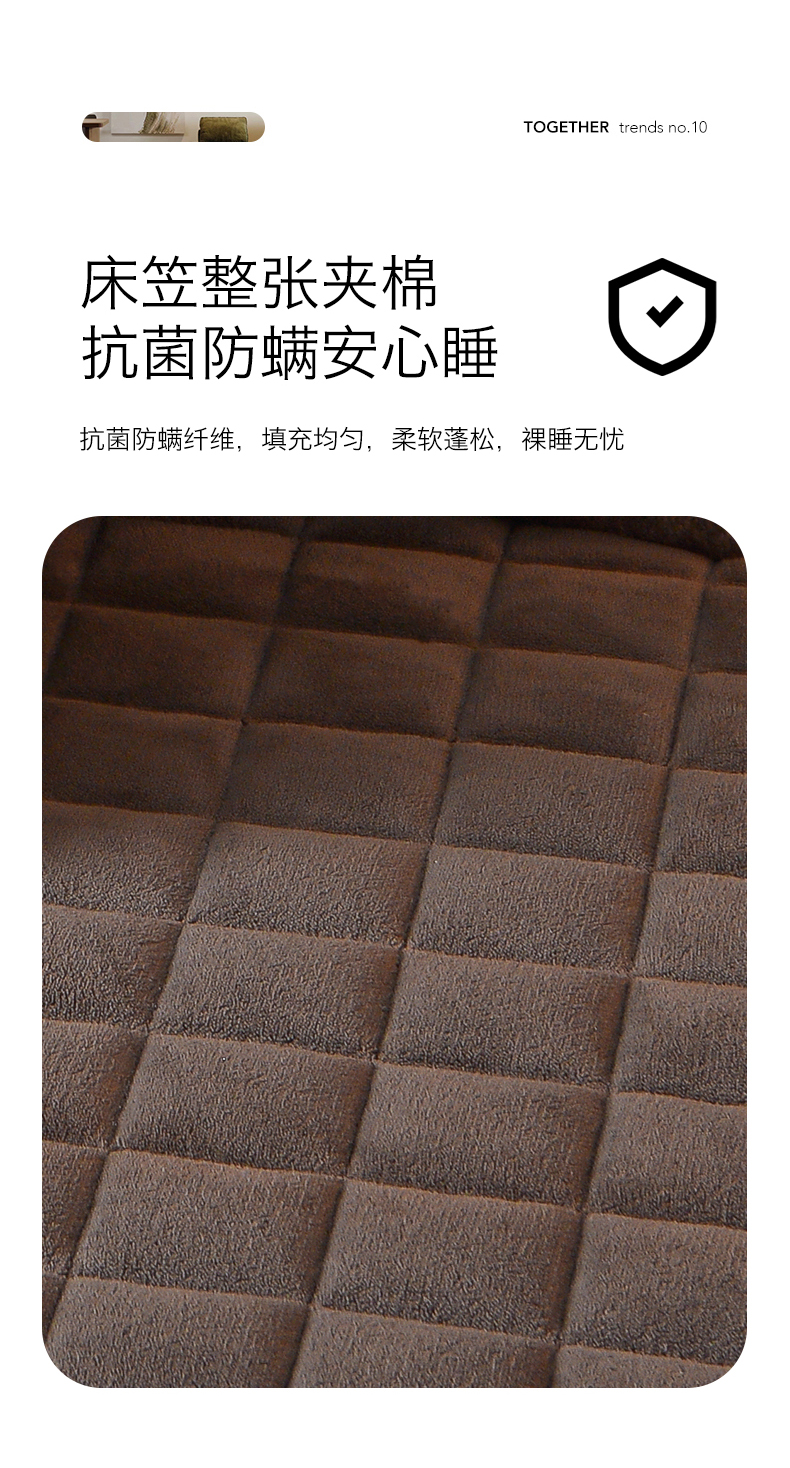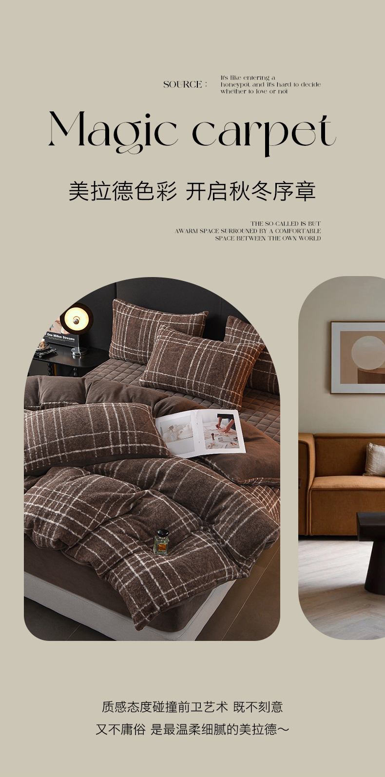 商品名称:金鹰 2025新款仿羊绒夹棉印花床笠四件套加厚牛奶绒四件套 米兰-咖