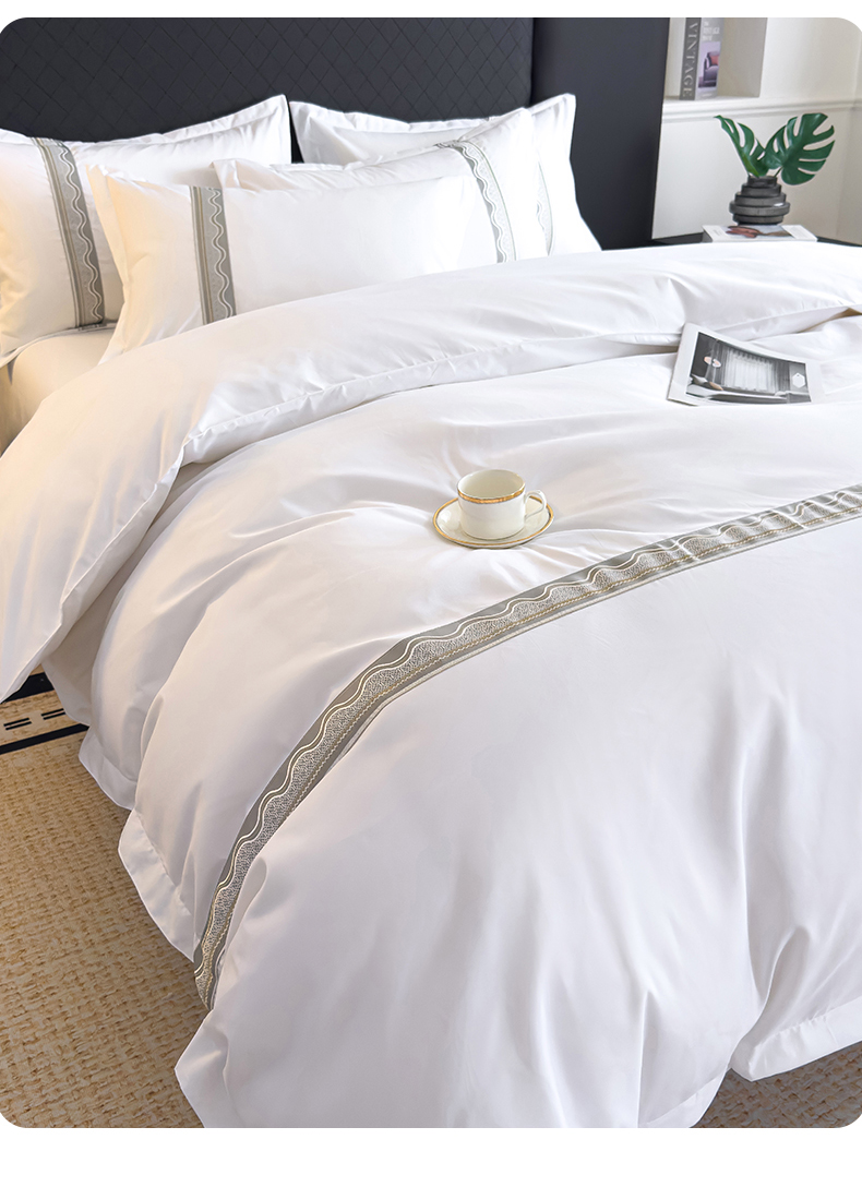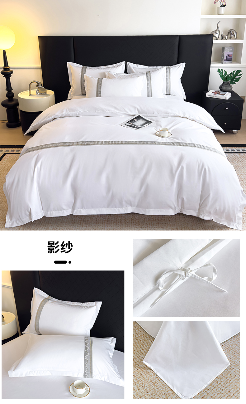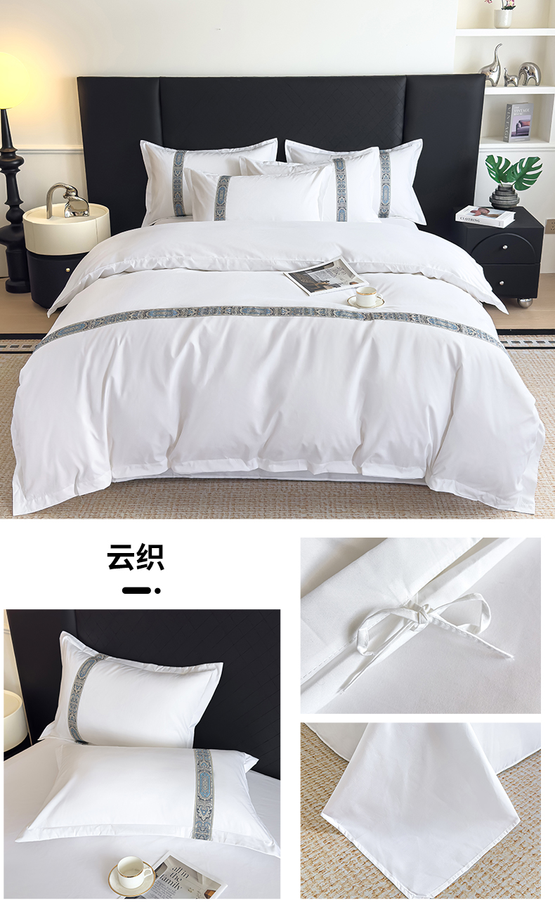 当前位置: 91家纺网 > 商品网购 > 床品套件 > 四件套 > 化纤活性四件套 > 梦庭帛美 2025新款酒店布草宾馆刺绣磨毛四件套 影纱