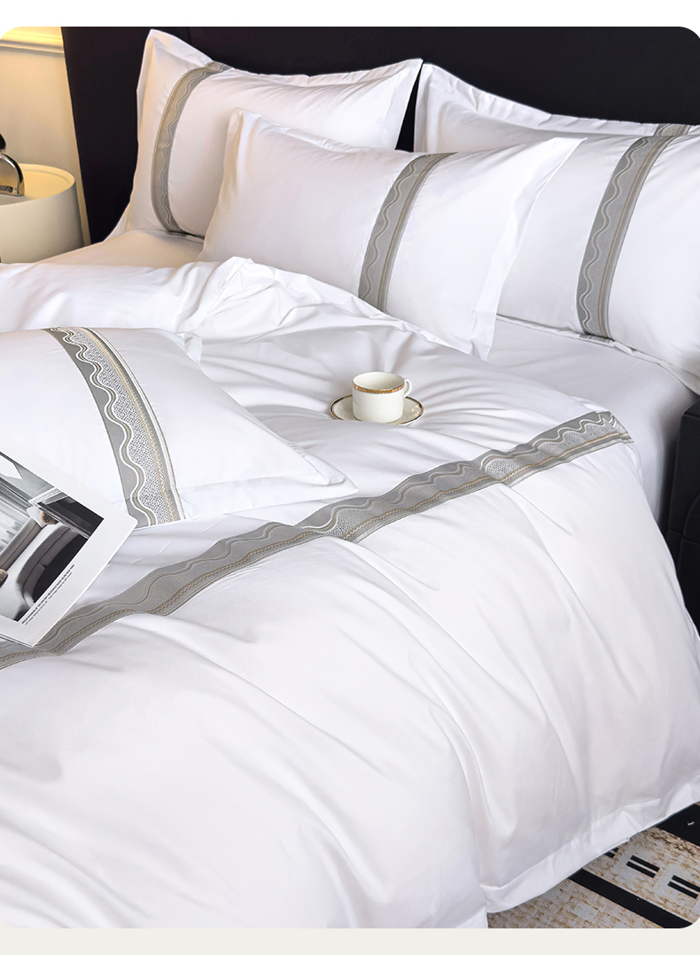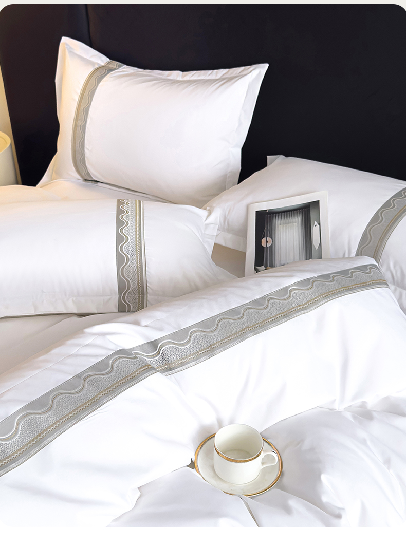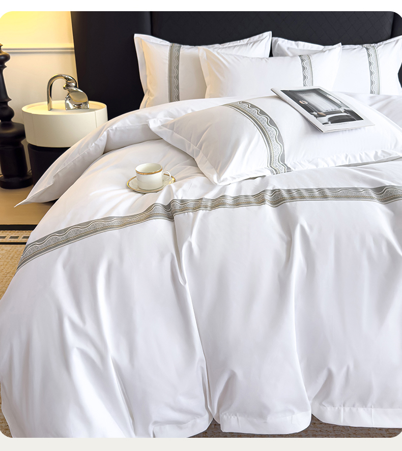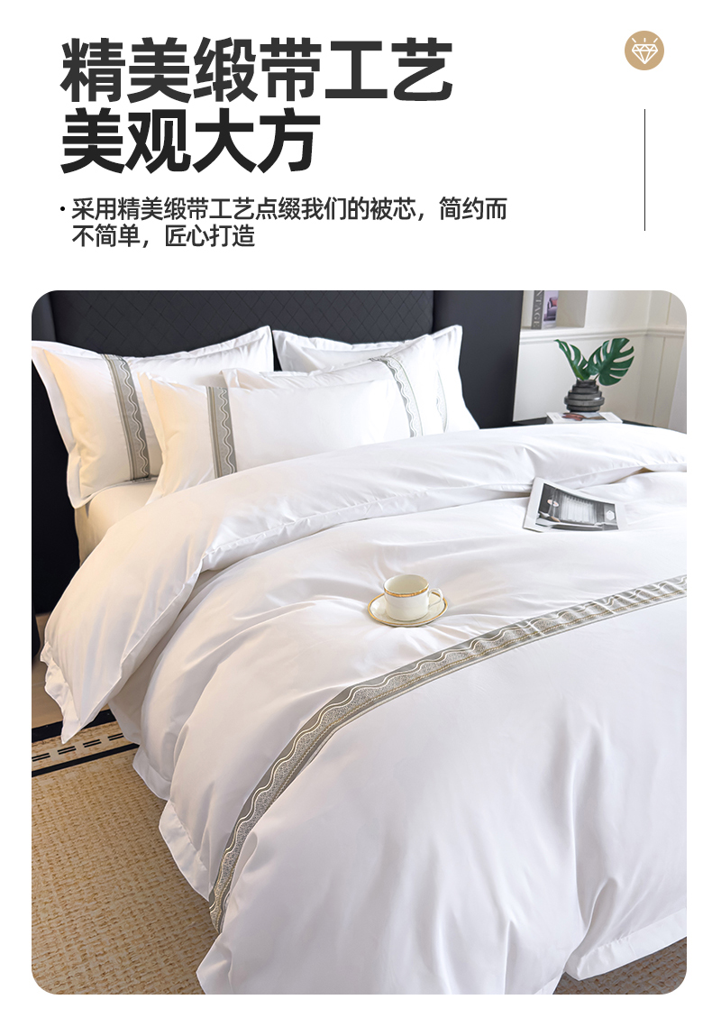当前位置: 91家纺网 > 商品网购 > 床品套件 > 四件套 > 化纤活性四件套 > 梦庭帛美 2025新款酒店布草宾馆刺绣磨毛四件套 影纱