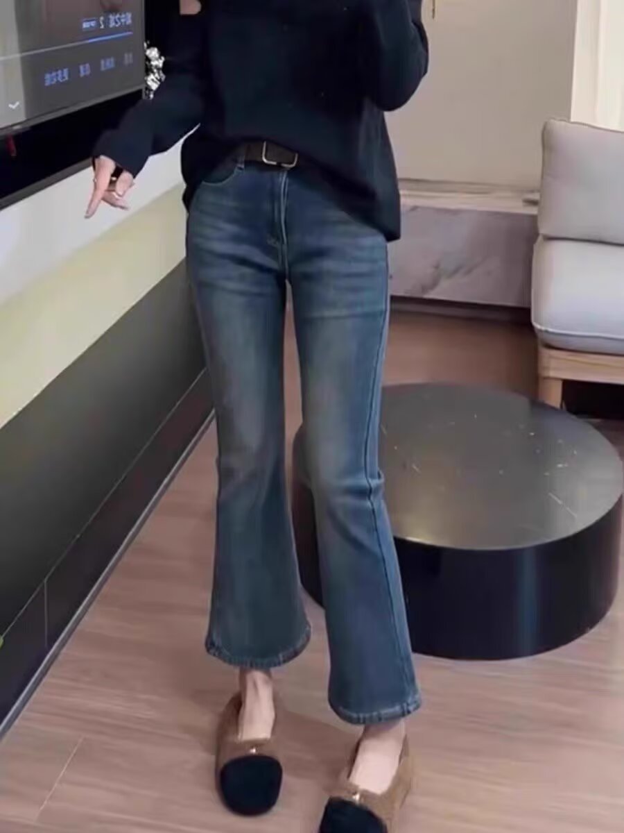 当前位置: 91家纺网 > 商品网购 > 居家日用 > 睡衣/家居服套装 > 洛兰沙家居馆【只代发】【只代发】 2025新款只代发秋季新款高腰弹力微喇马蹄裤大码遮肉显瘦小个子九分牛仔裤女批发19 蓝色【不含腰带】