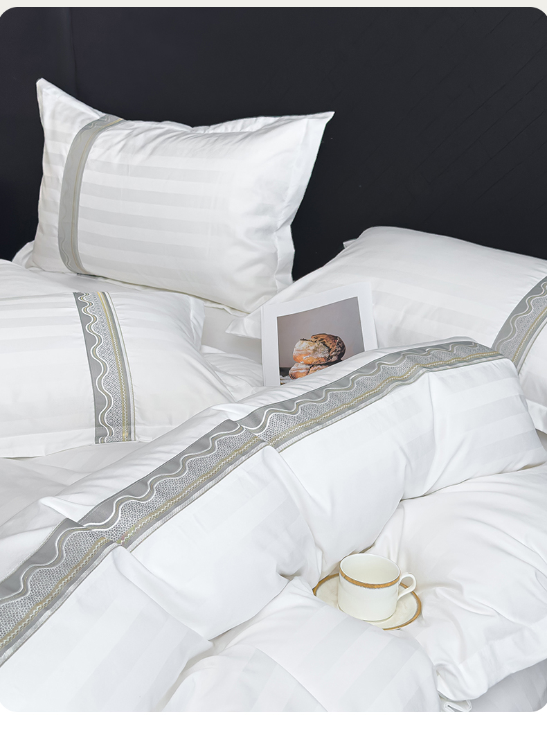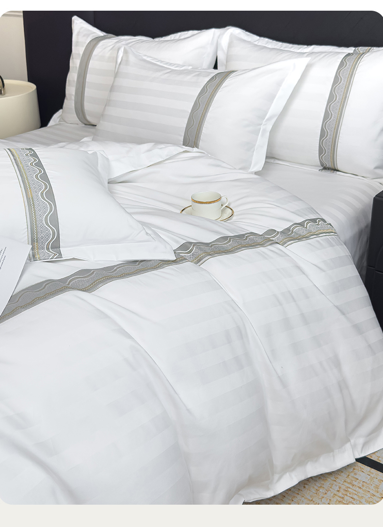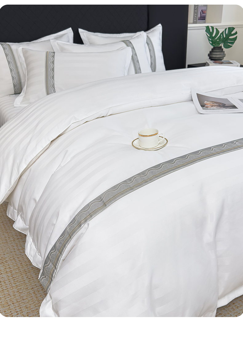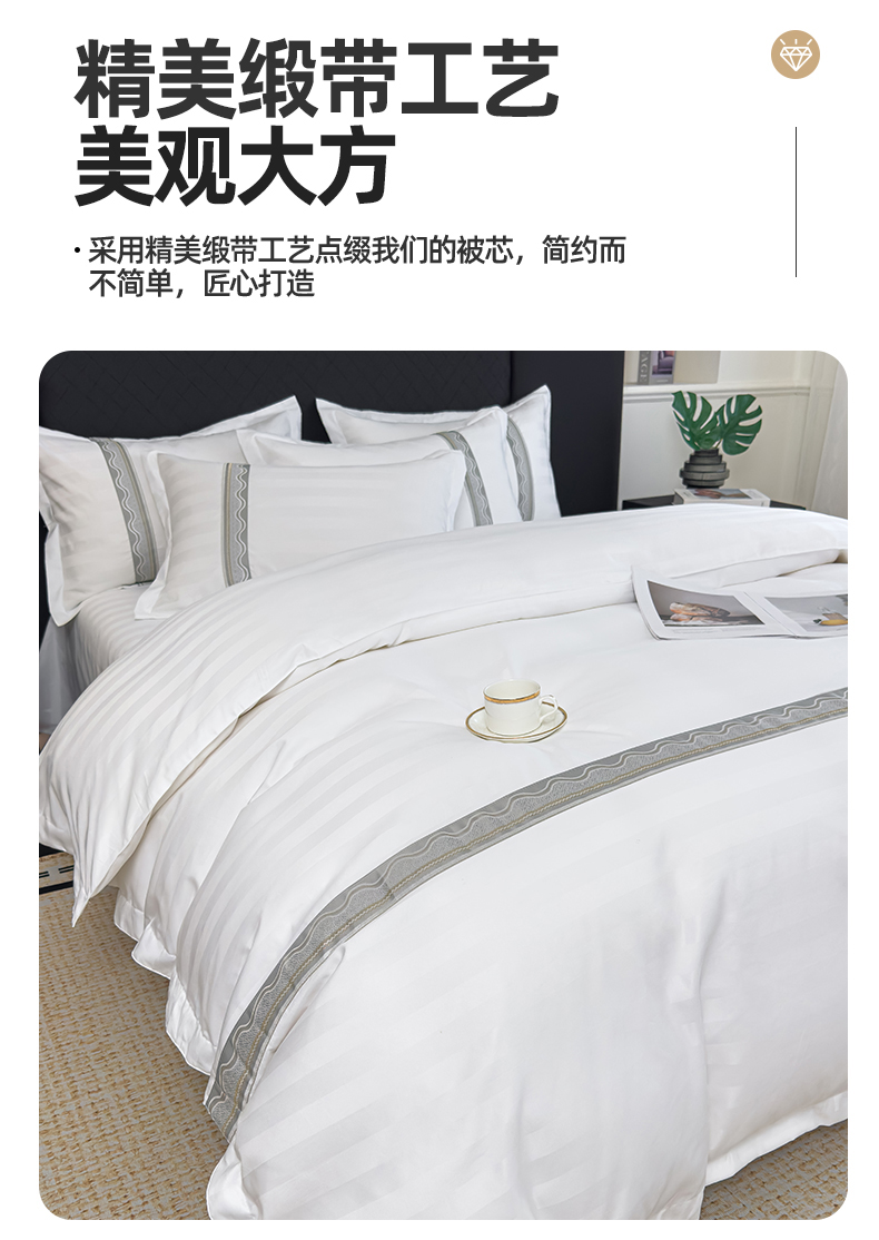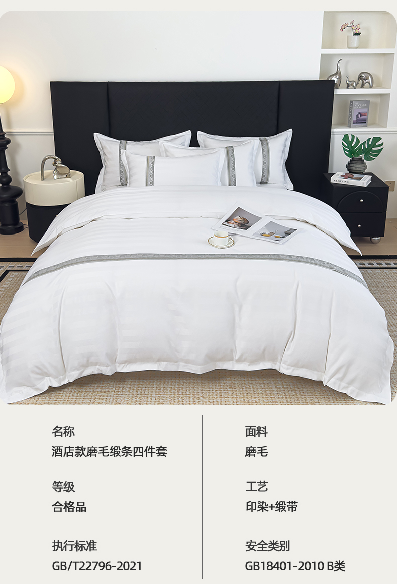 当前位置: 91家纺网 > 商品网购 > 床品套件 > 四件套 > 化纤活性四件套 > (总)梦庭帛美 2025新款酒店布草缎条刺绣款四件套
