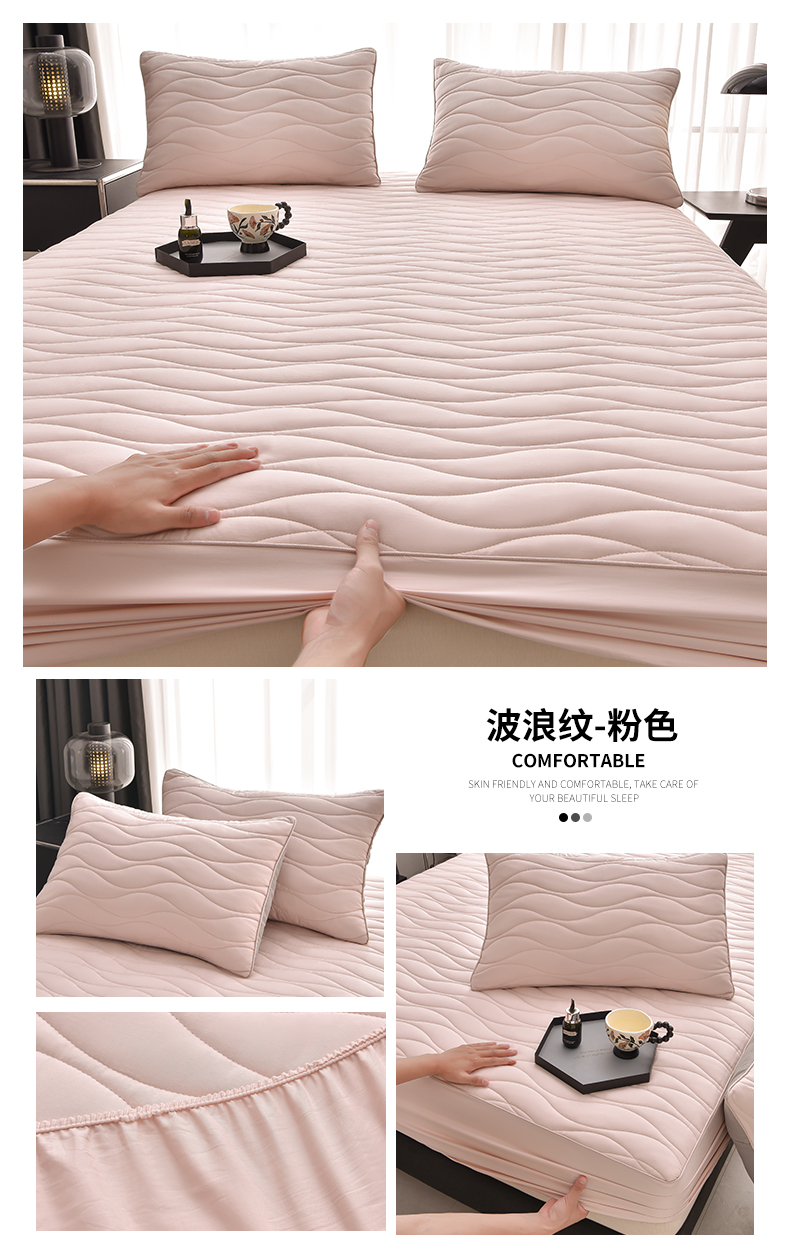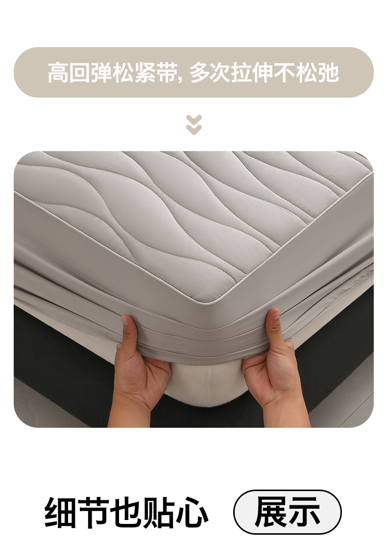 • 91家纺网 家纺一手货源 找家纺 金鹰 2025新款全棉50S抗菌防螨夹棉防水床笠席梦思保护套床垫套 波浪纹-白