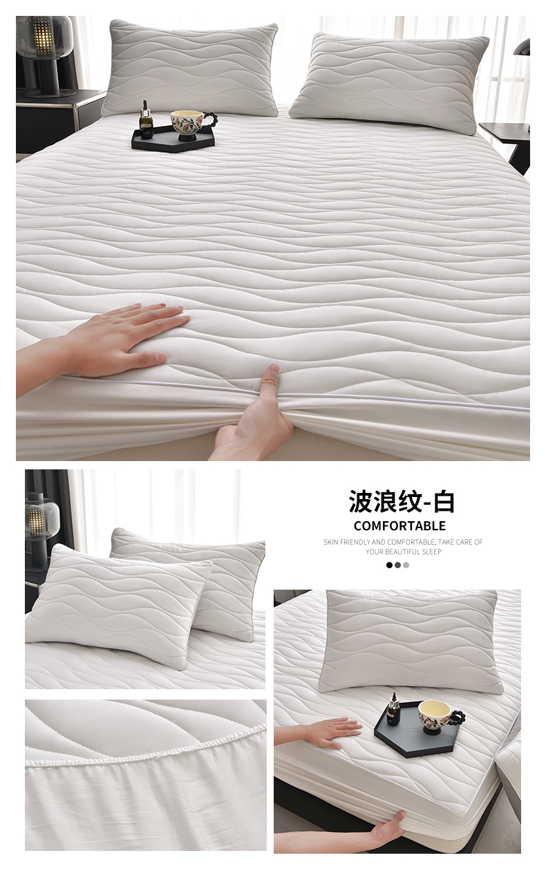 • 91家纺网 家纺一手货源 找家纺 金鹰 2025新款全棉50S抗菌防螨夹棉防水床笠席梦思保护套床垫套 波浪纹-白 91家纺网 家纺一手货源 找家纺 金鹰 2025新款全棉50S抗菌防螨夹棉防水床笠席梦思保护套床垫套 波浪纹-白