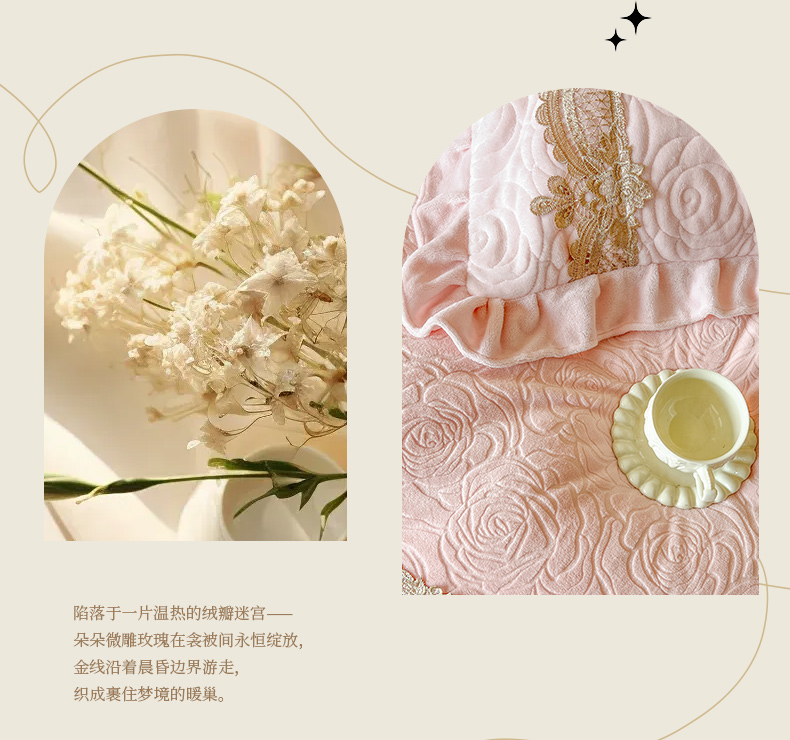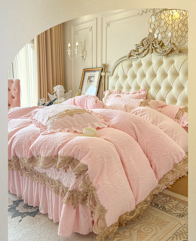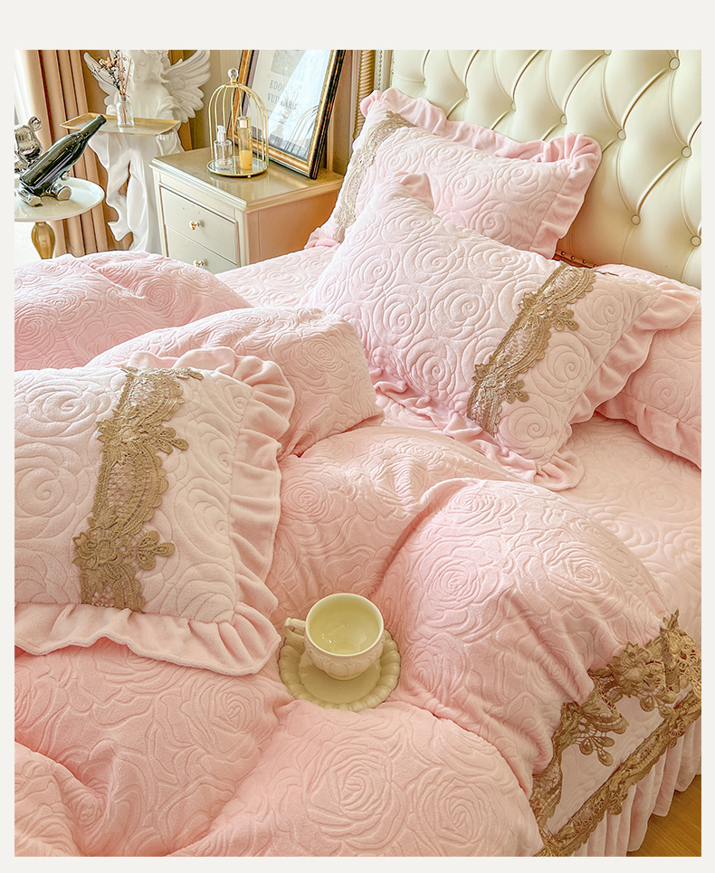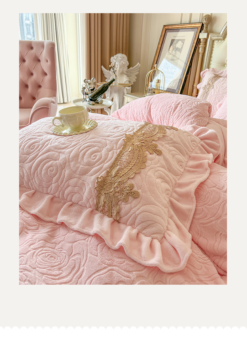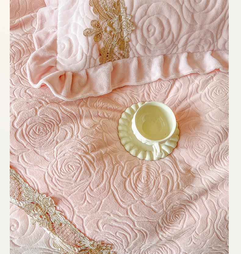 商品名称:恋尚 2025新款雕花牛奶绒罗曼蒂克系列四件套(控价290) 罗曼蒂克-清新粉