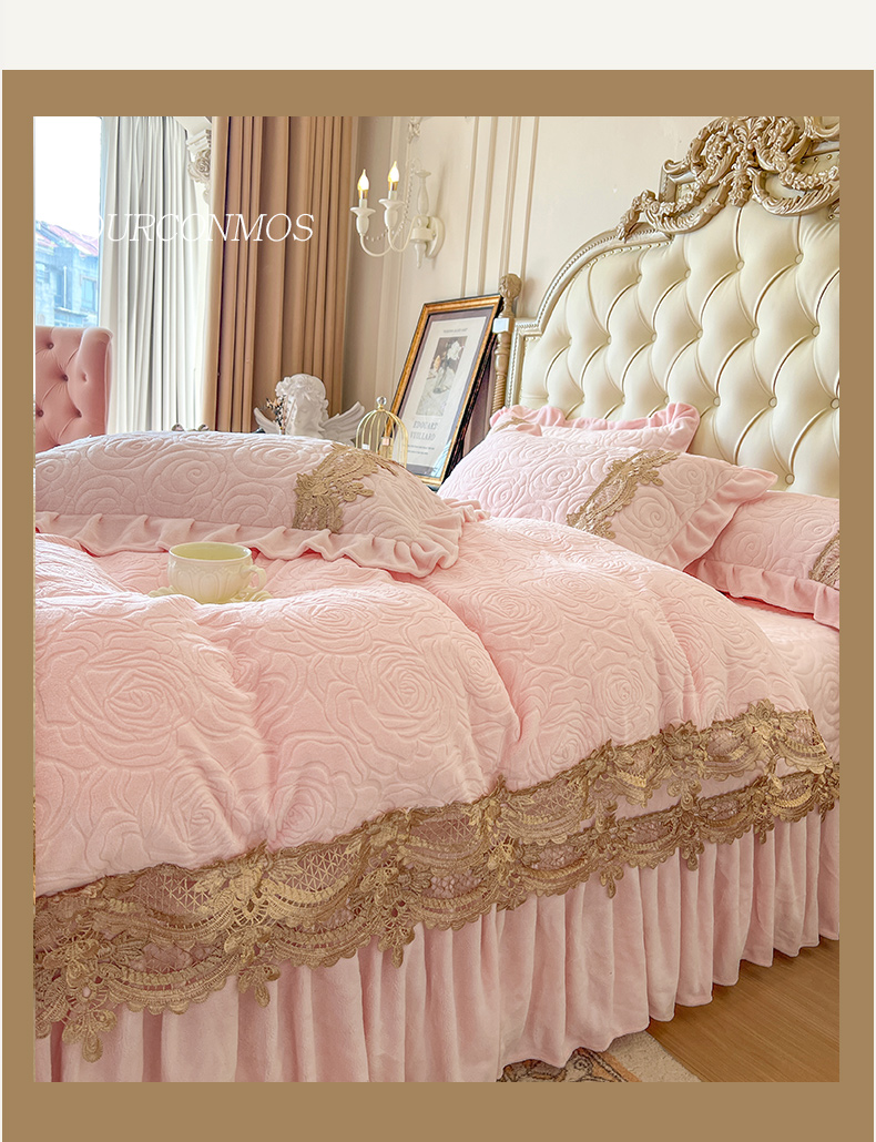 恋尚 2025新款雕花牛奶绒罗曼蒂克系列四件套(控价290) 罗曼蒂克-清新粉