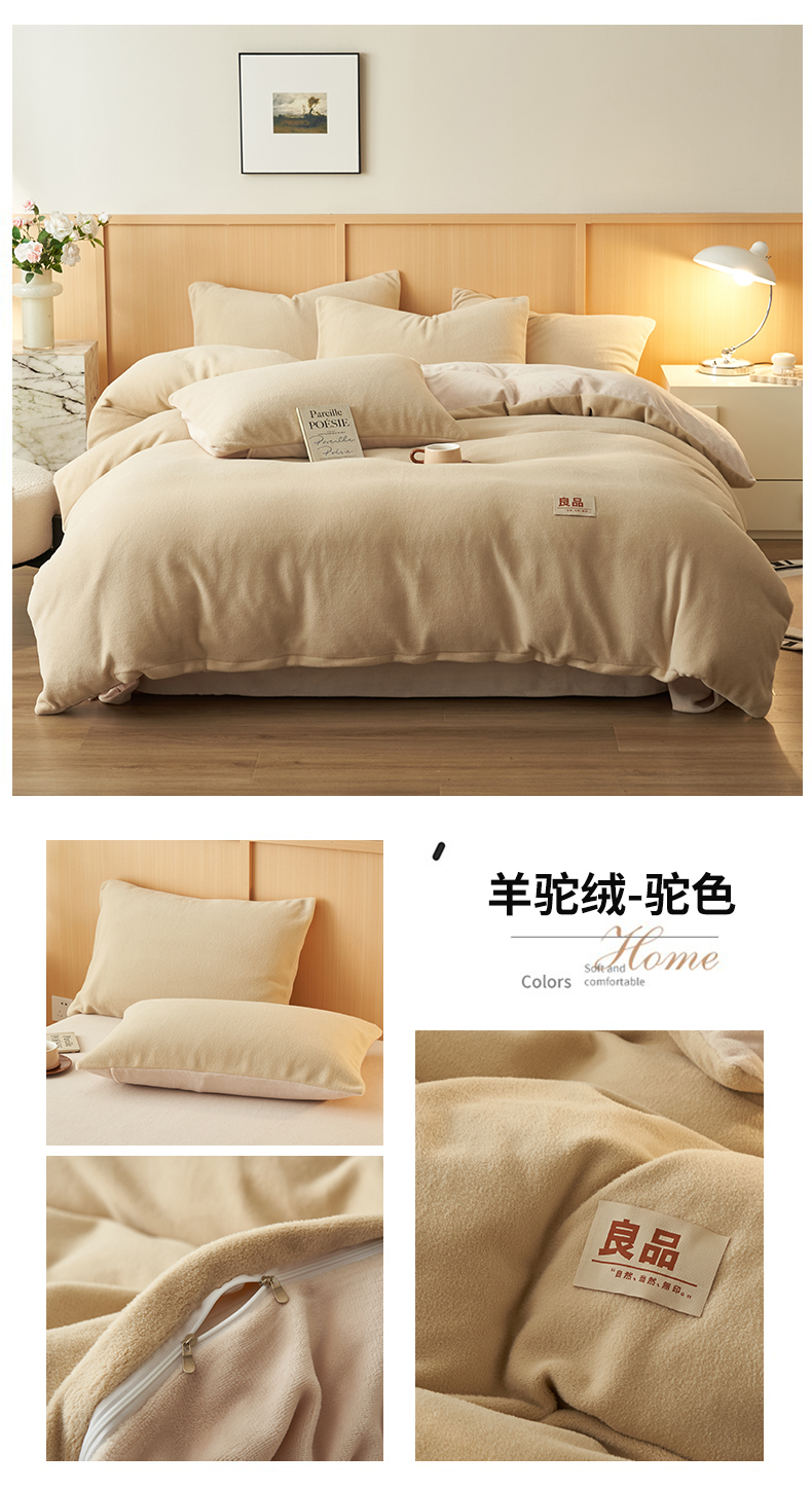(总)金鹰 2025新款羊驼绒牛奶绒四件套加厚保暖绒套件被套,羊驼绒-浅灰,羊驼绒-深咖,羊驼绒-驼色,羊驼绒-粉色,羊驼绒-焦糖,羊驼绒-咖啡,羊驼绒-蓝色,羊驼绒-奶白