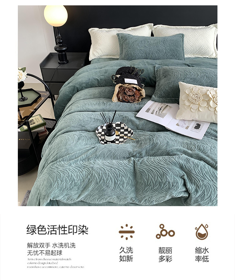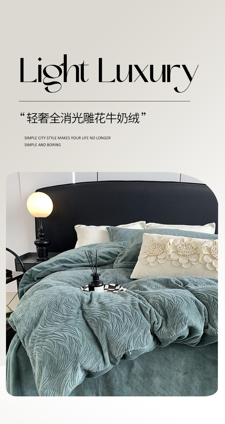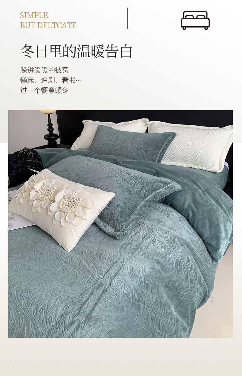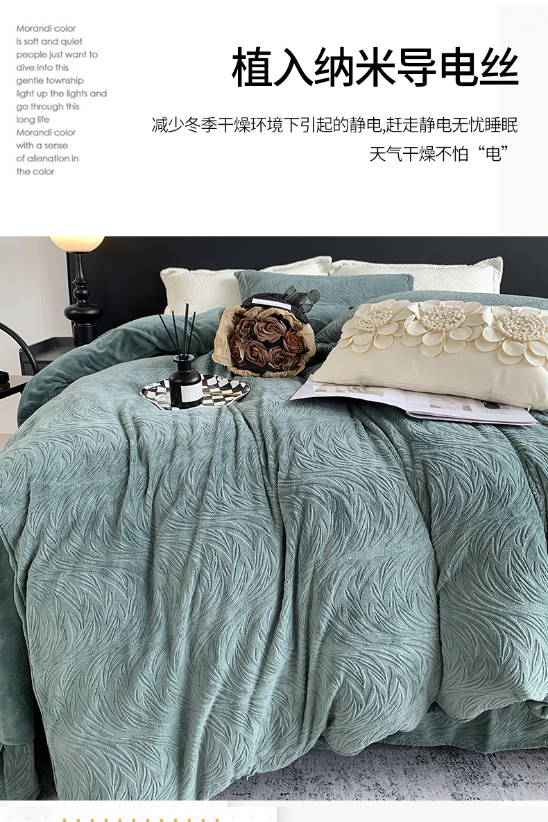 奈萝家纺 2025新款雕花绒高克重牛奶绒四件套-流年系列 流年祖母绿