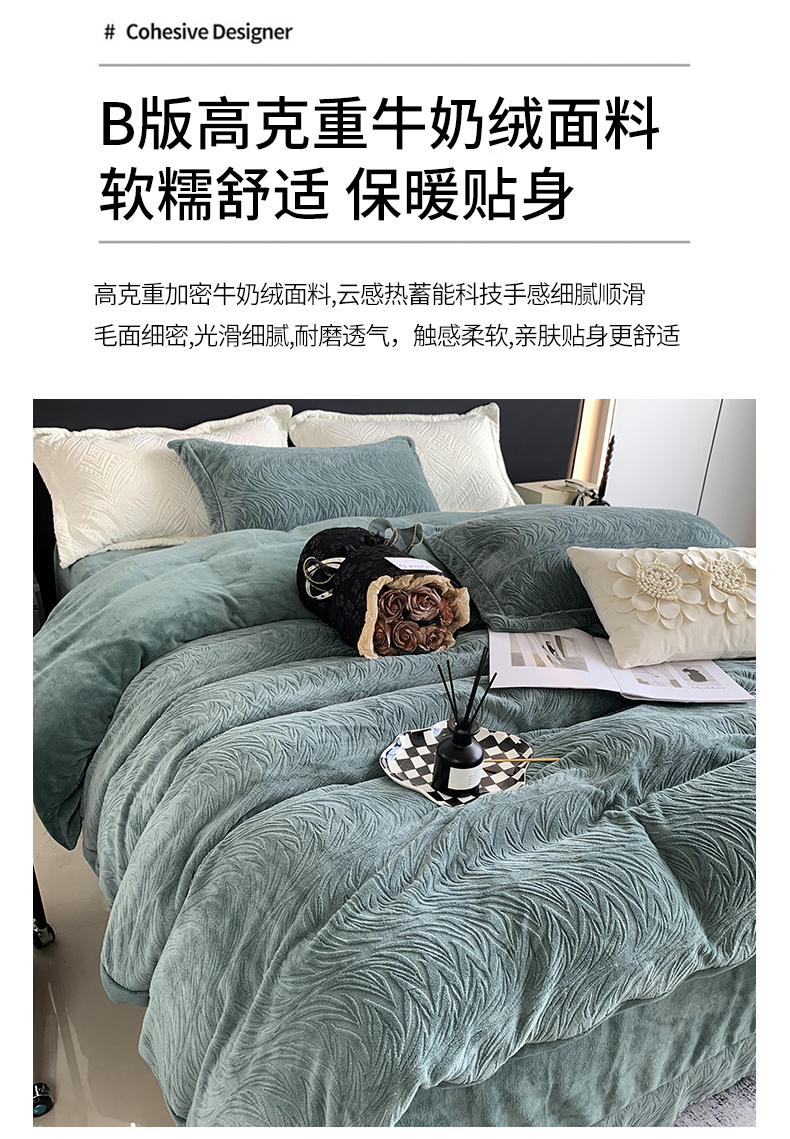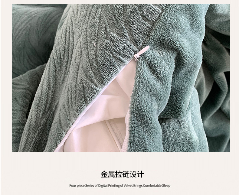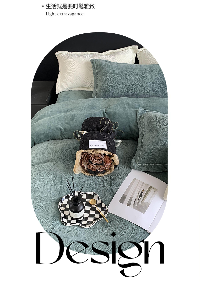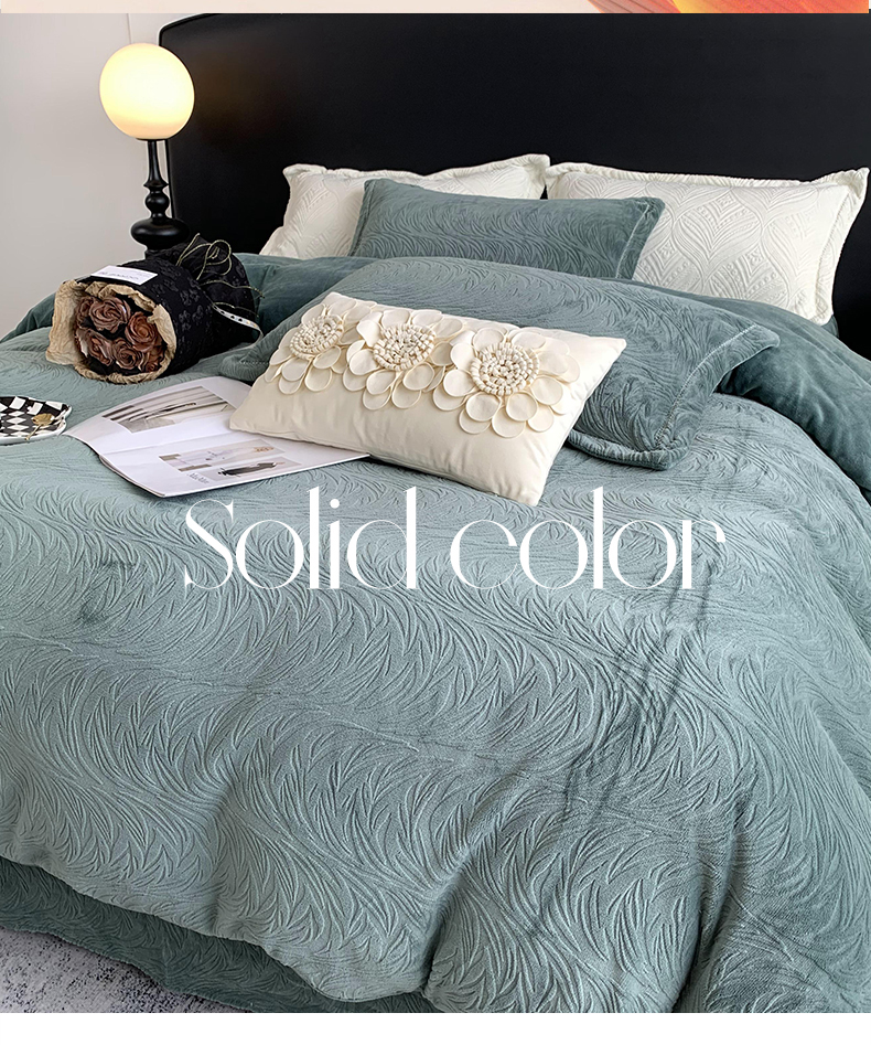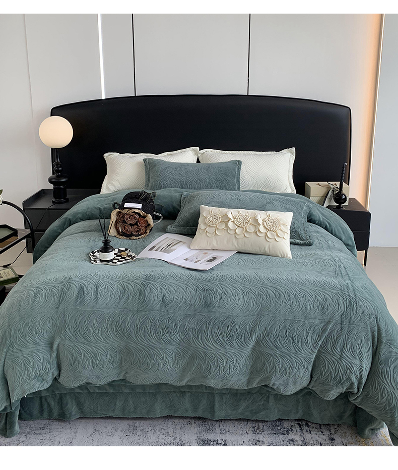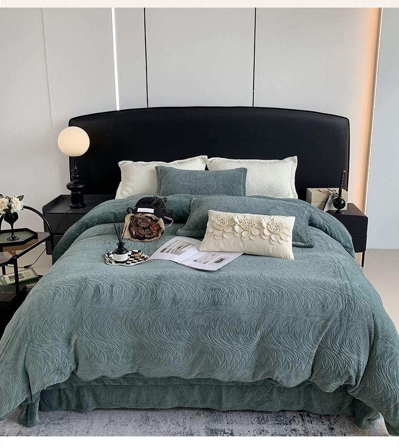 奈萝家纺 2025新款雕花绒高克重牛奶绒四件套-流年系列 流年祖母绿