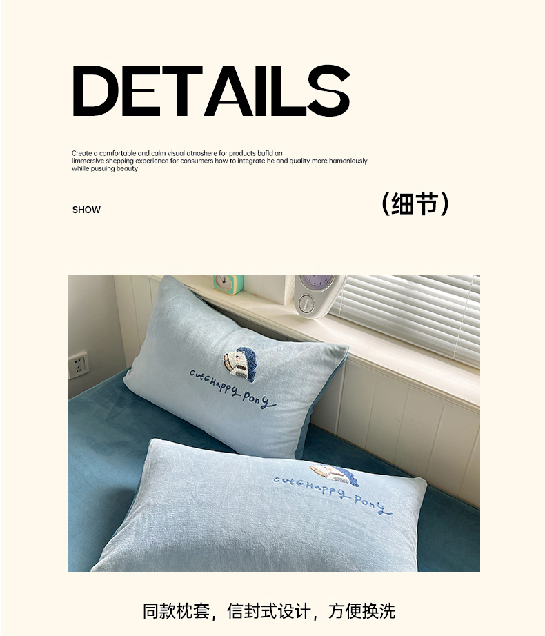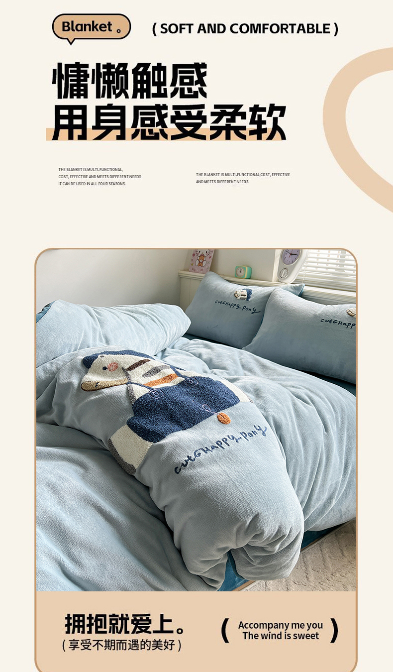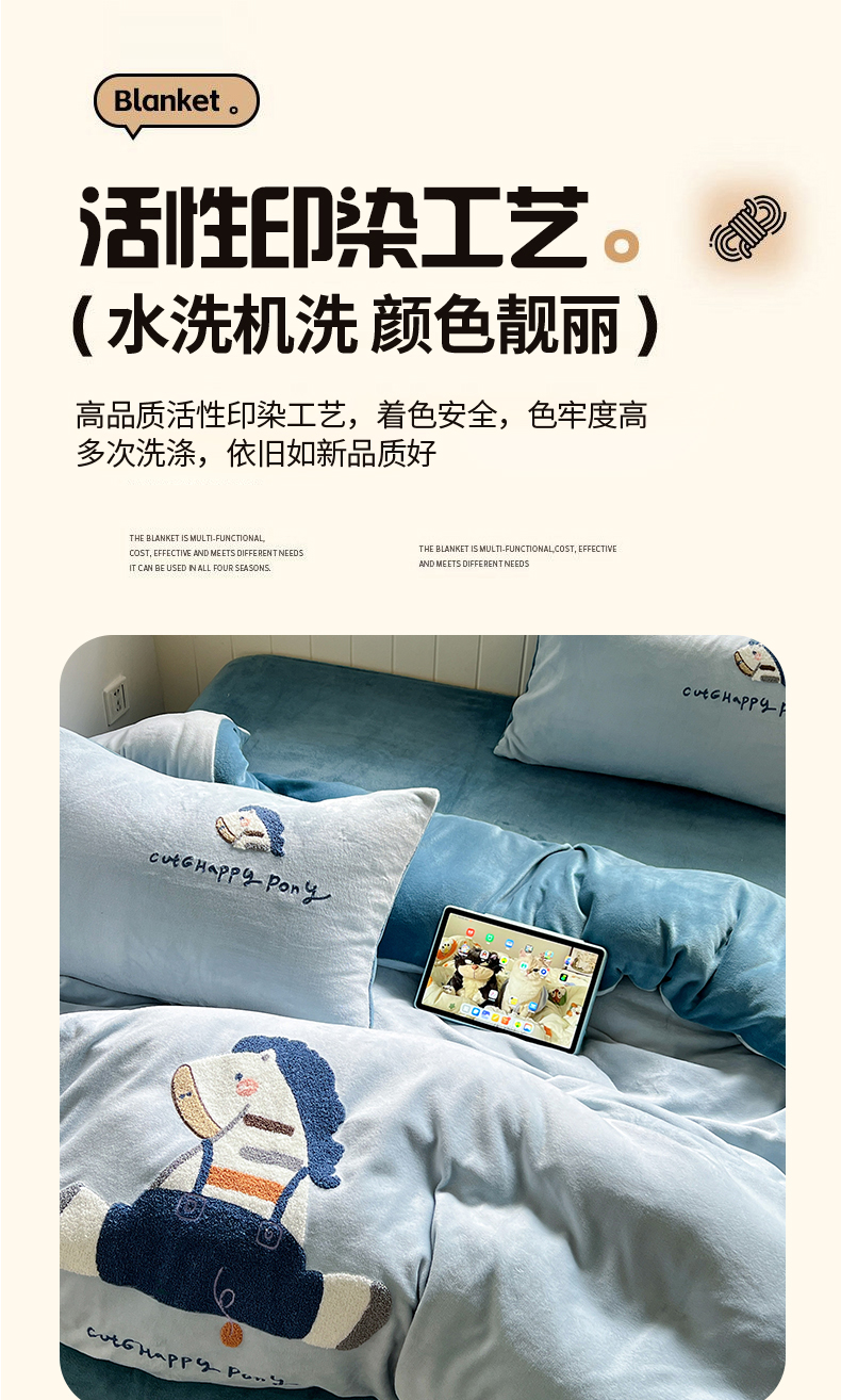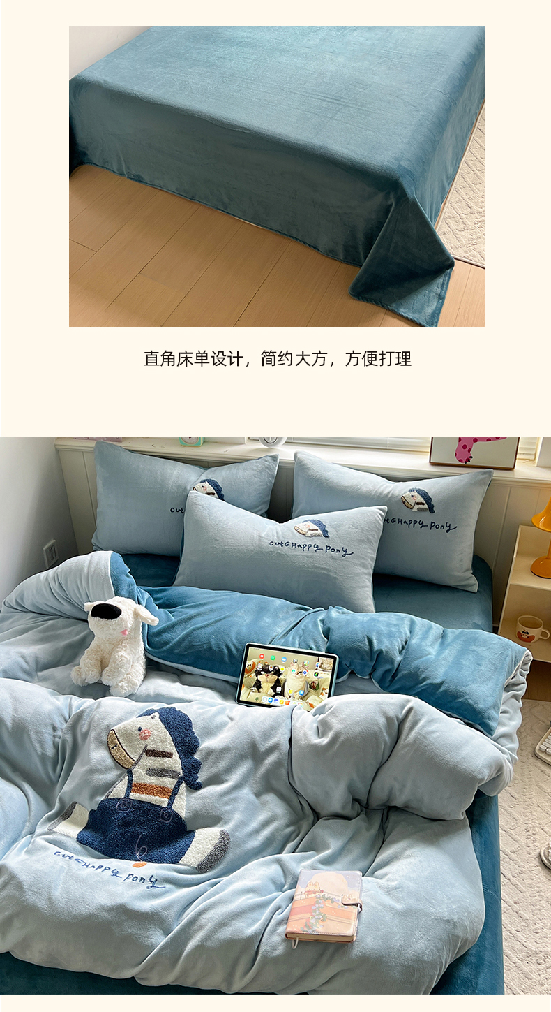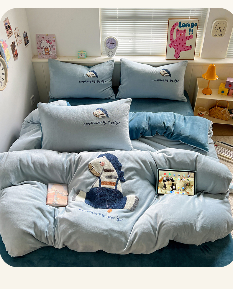 商品名称:凯洛奇 2025新款牛奶绒毛巾绣系列四件套-斑马先生(提供买家秀) 斑马先生-天空蓝
