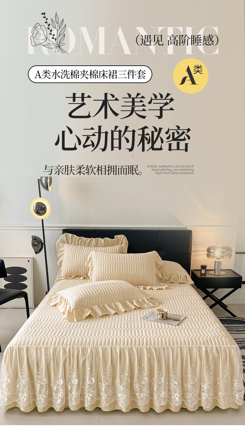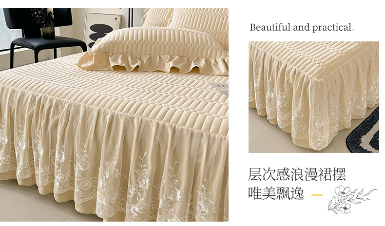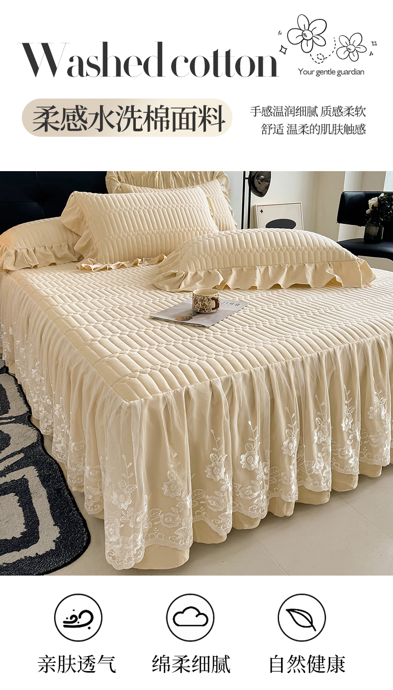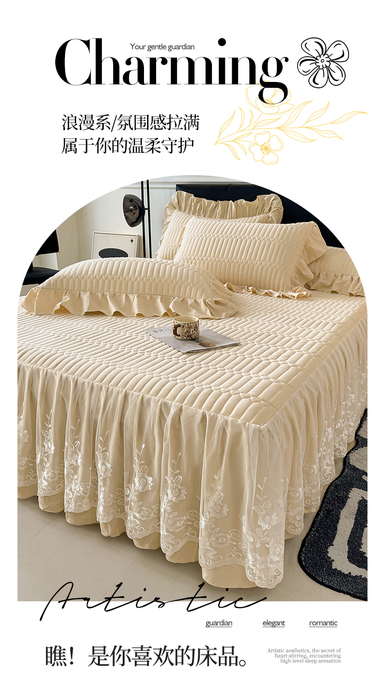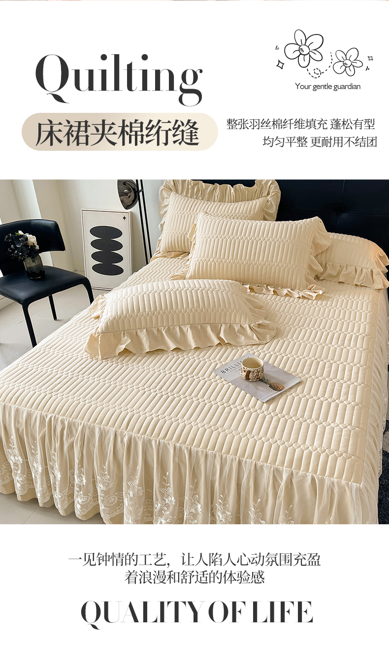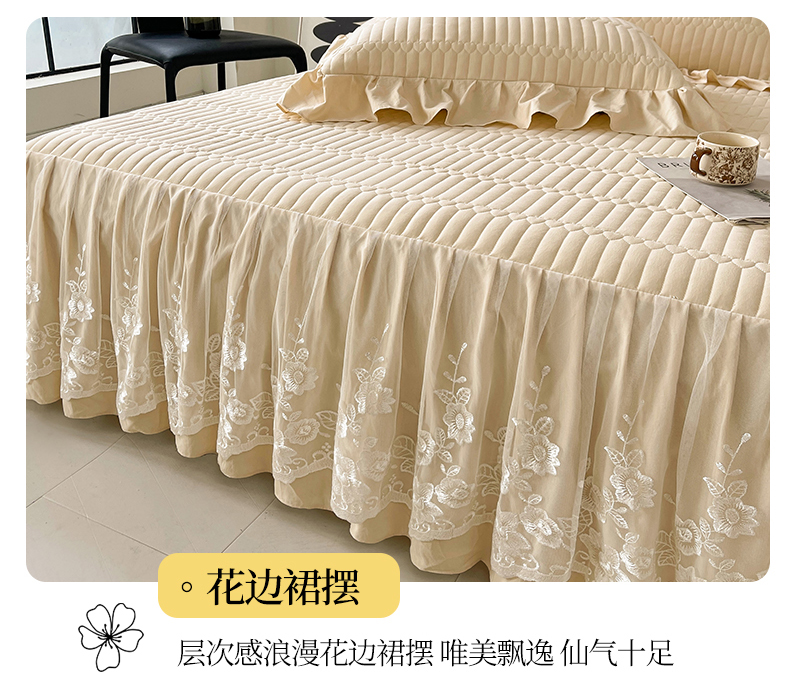 当前位置: 91家纺网 > 商品网购 > 床品套件 > 四件套 > 牛奶绒四件套 > 好儿喜家纺 2025新款A类水洗棉床裙三件套-安妮系列 安妮-香槟