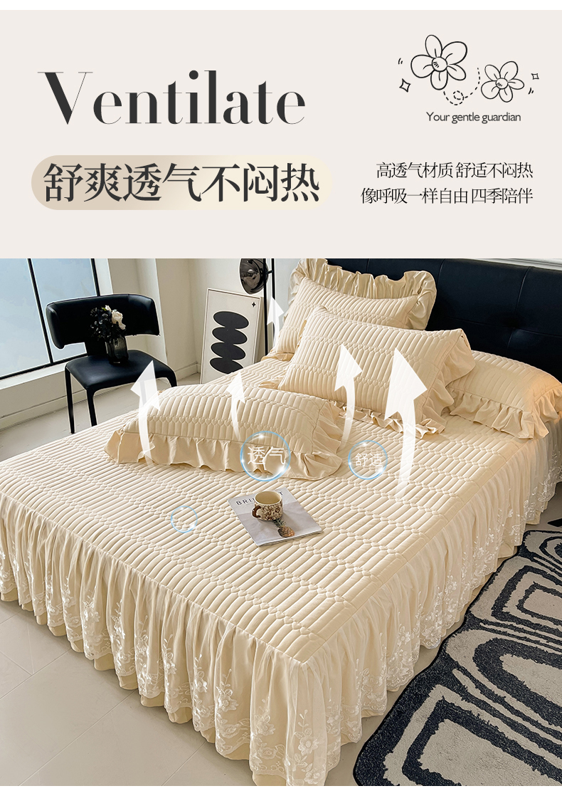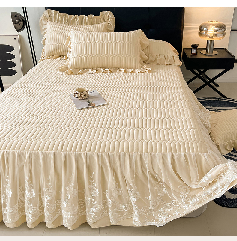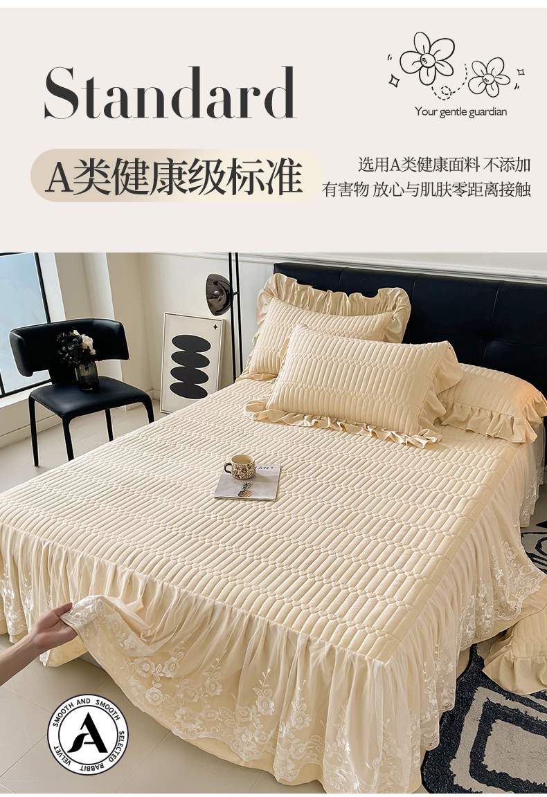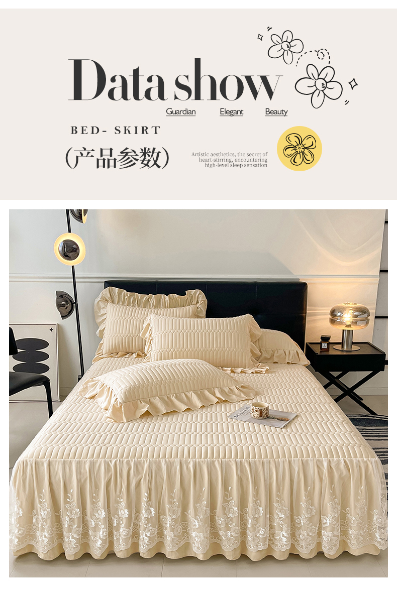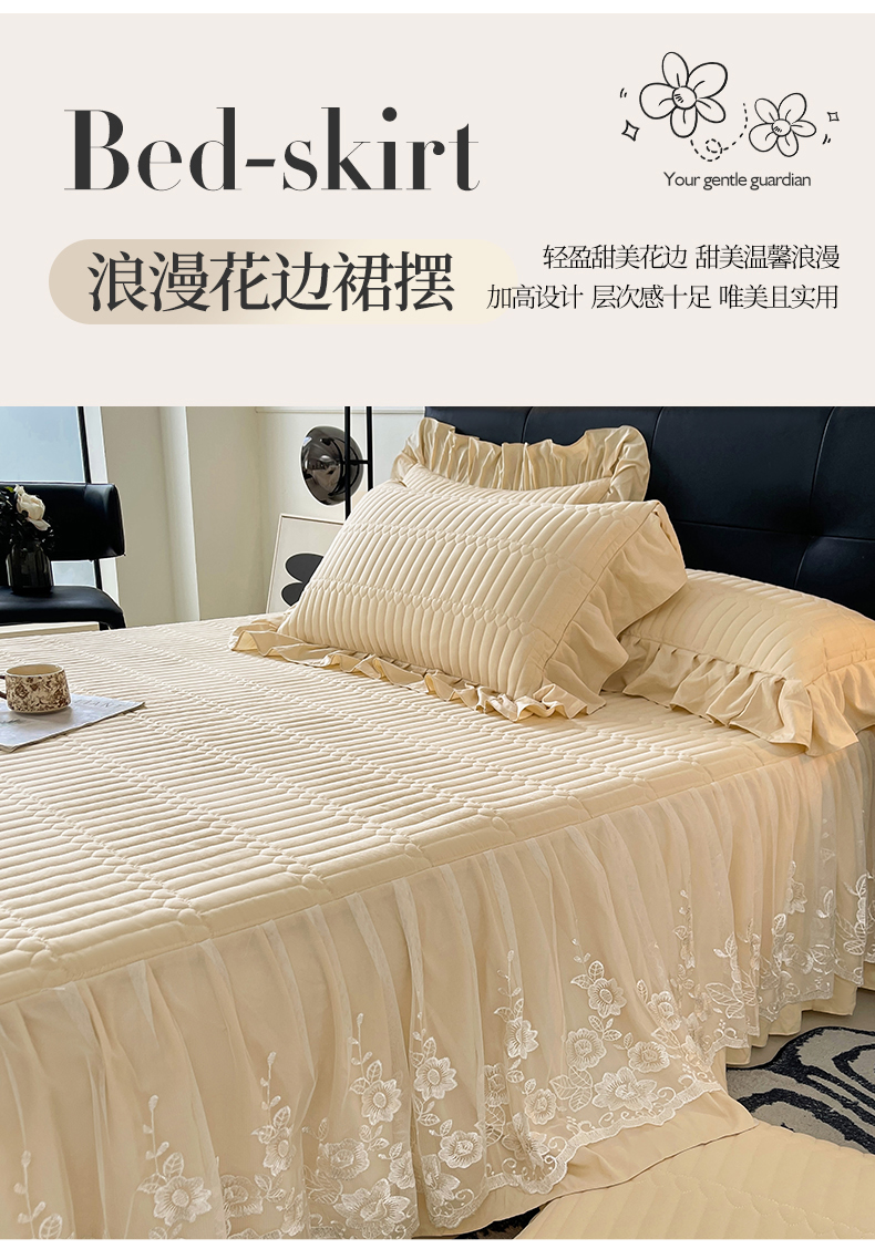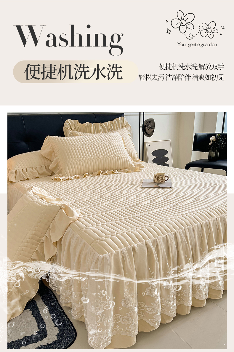 当前位置: 91家纺网 > 商品网购 > 床品套件 > 四件套 > 牛奶绒四件套 > 好儿喜家纺 2025新款A类水洗棉床裙三件套-安妮系列 安妮-香槟