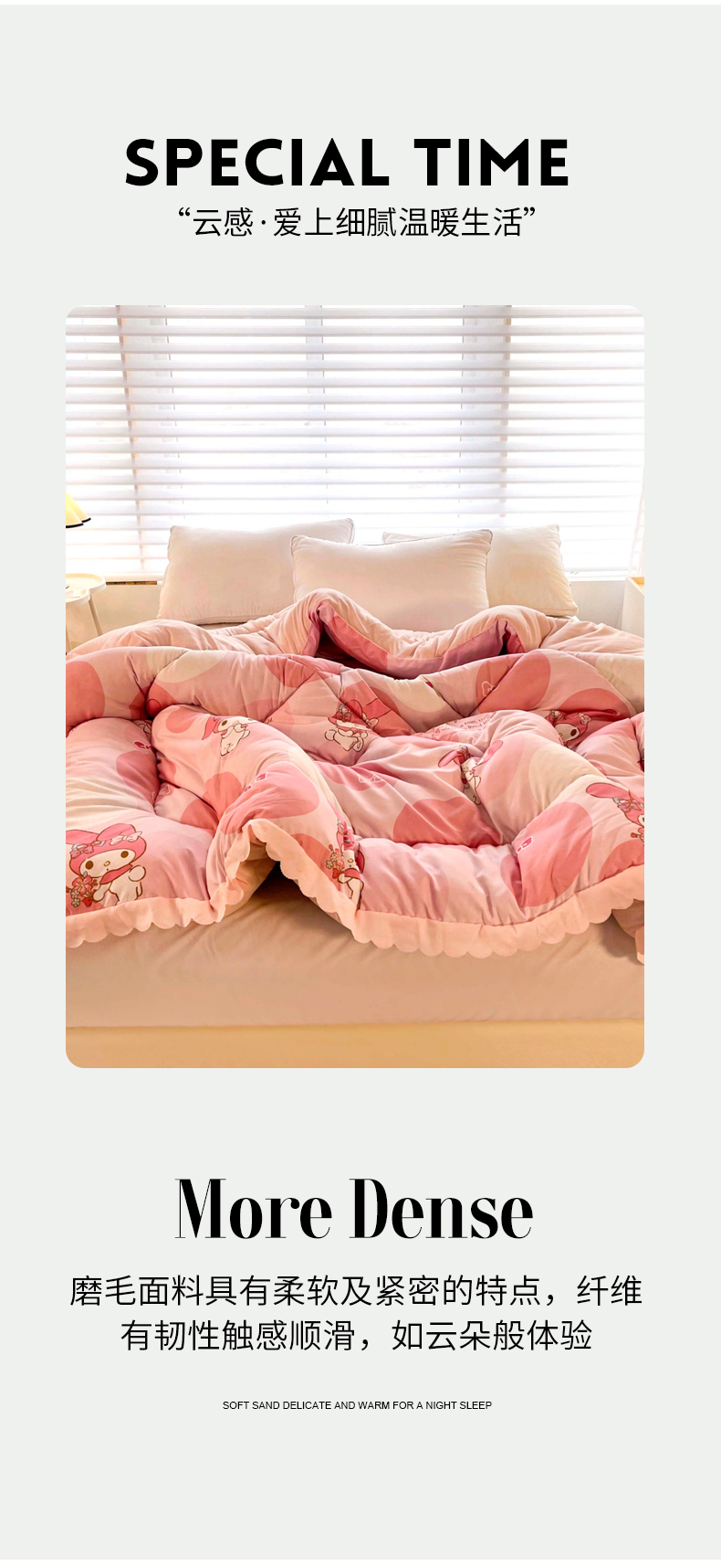(总)一电 2025新款冬季双面牛奶珊瑚绒床上四件套法兰绒床品加绒被套床单三件套-第三批,公主库洛米,天使库洛米,甜筒库洛米,小兔子,圆点库洛米