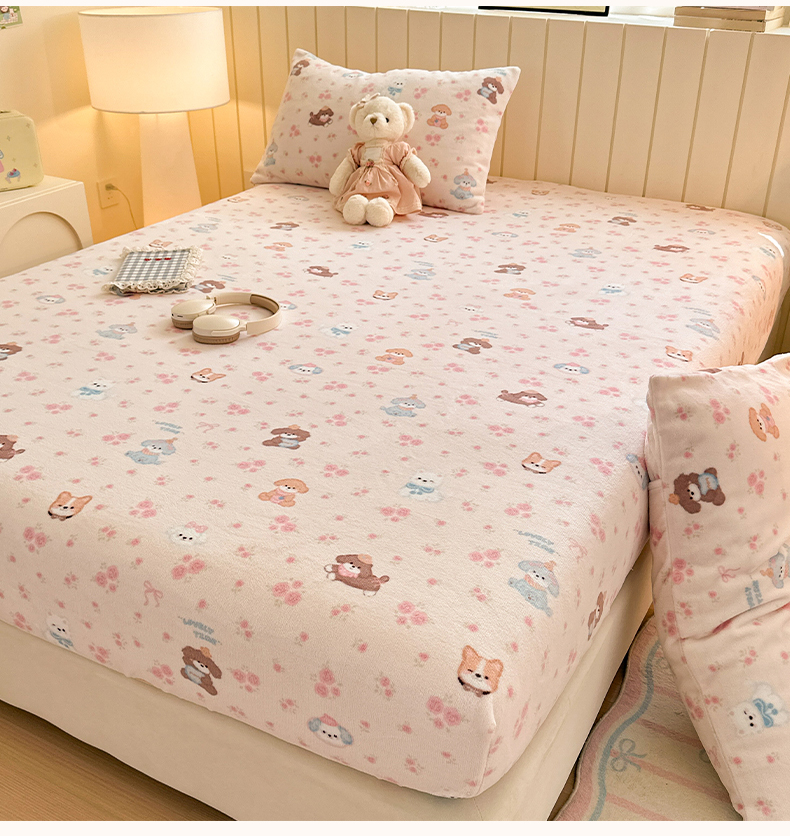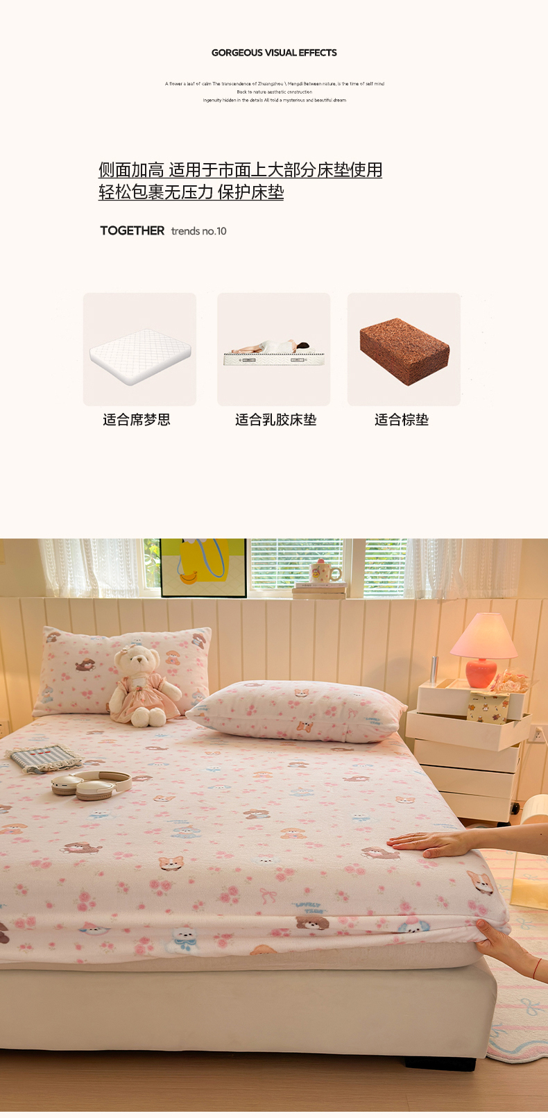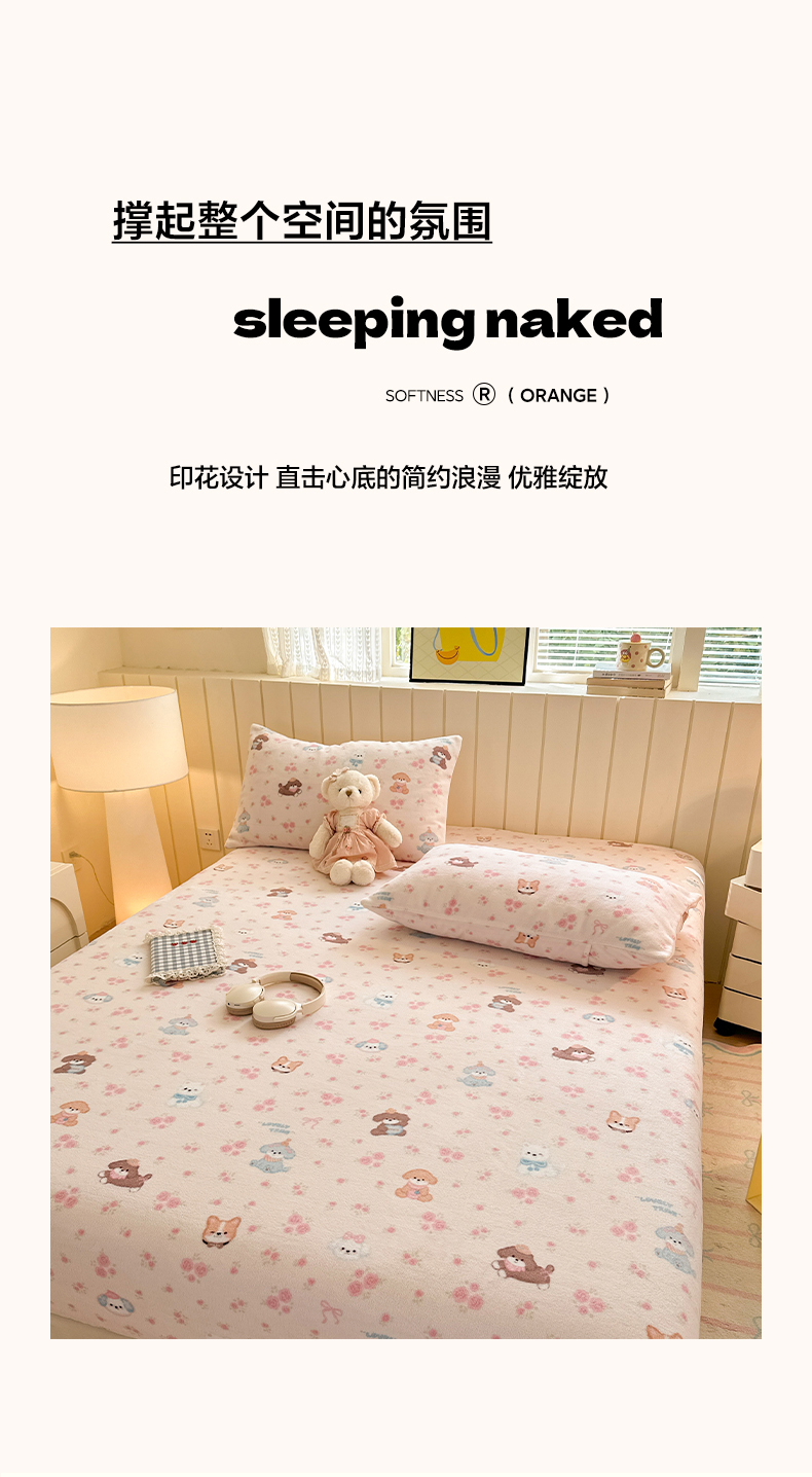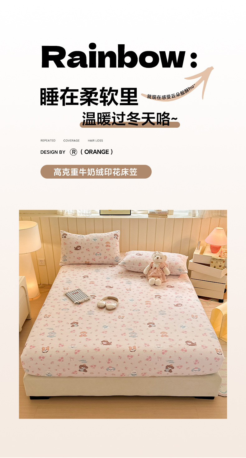 丽美人家纺 2025年牛奶绒小版印花床笠单床笠床笠单件 油画小萌物
