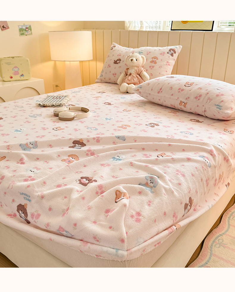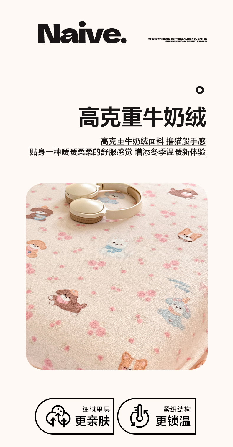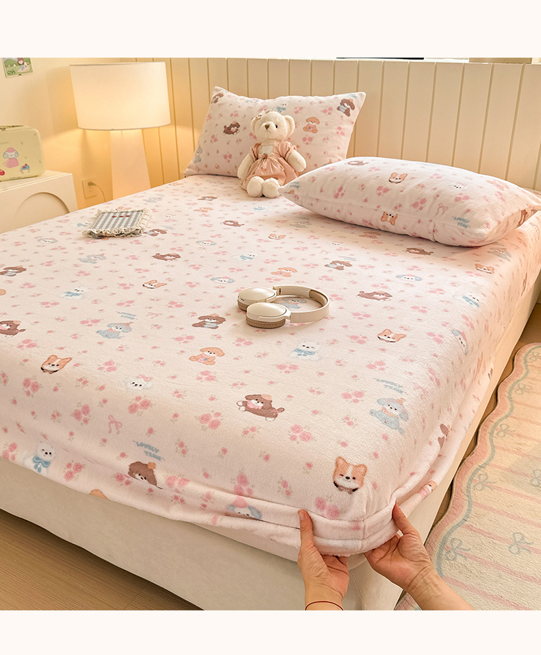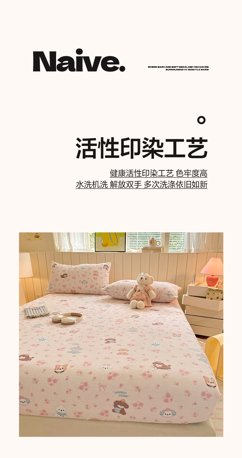 丽美人家纺 2025年牛奶绒小版印花床笠单床笠床笠单件 油画小萌物