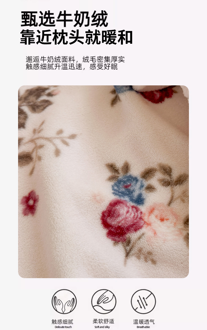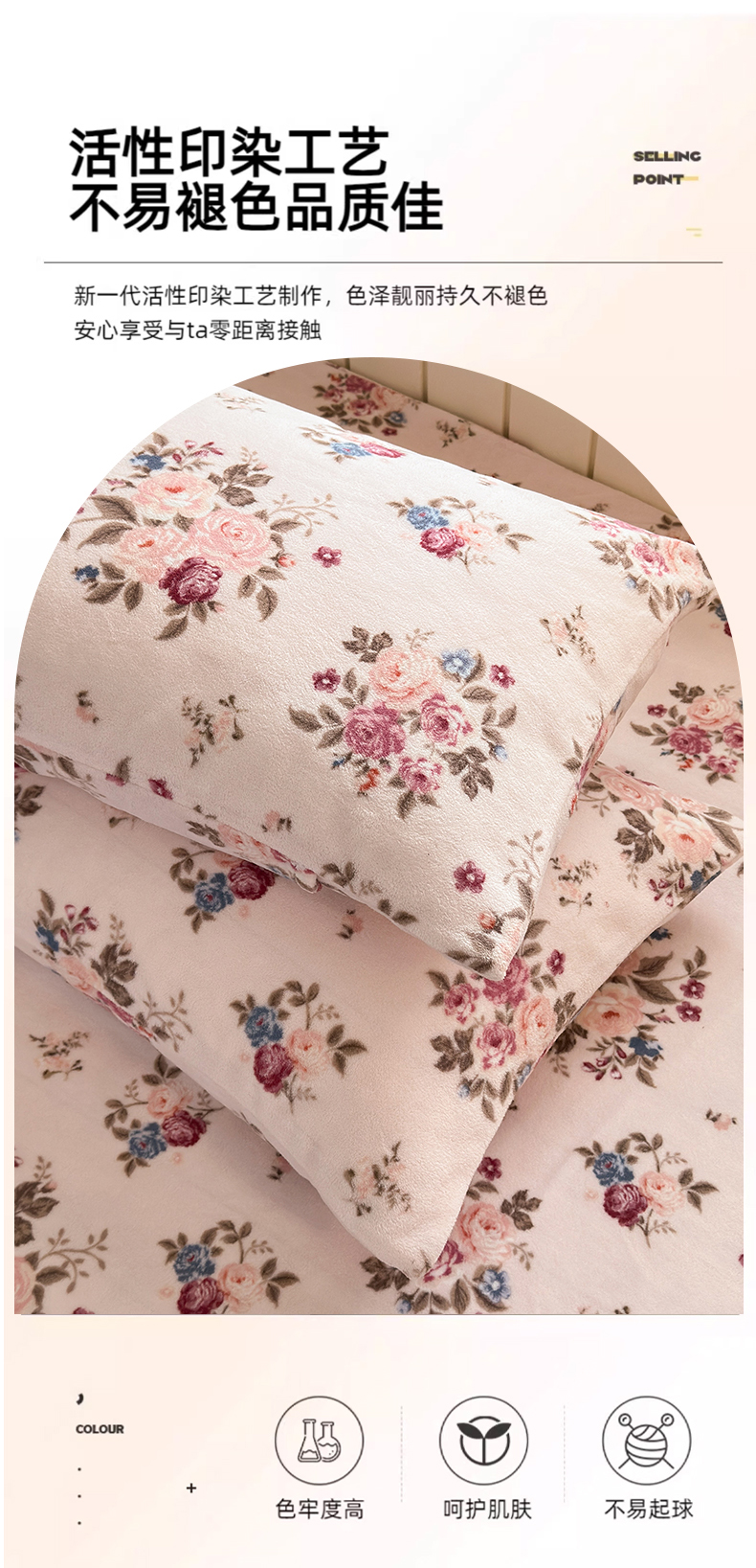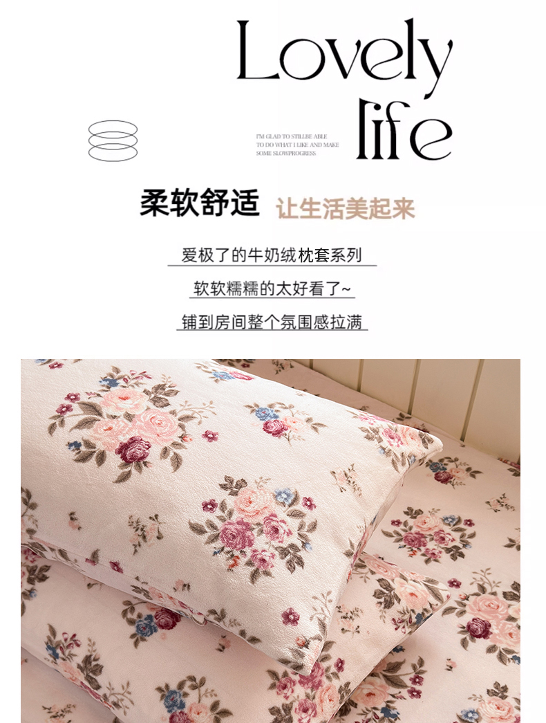 商品名称:丽美人家纺 2025新款牛奶绒小版枕套 山茶花语-粉