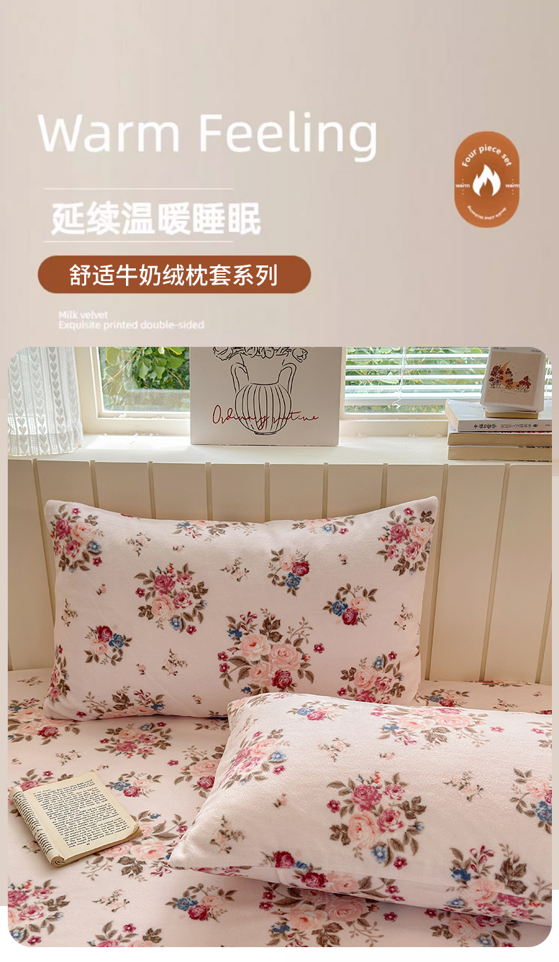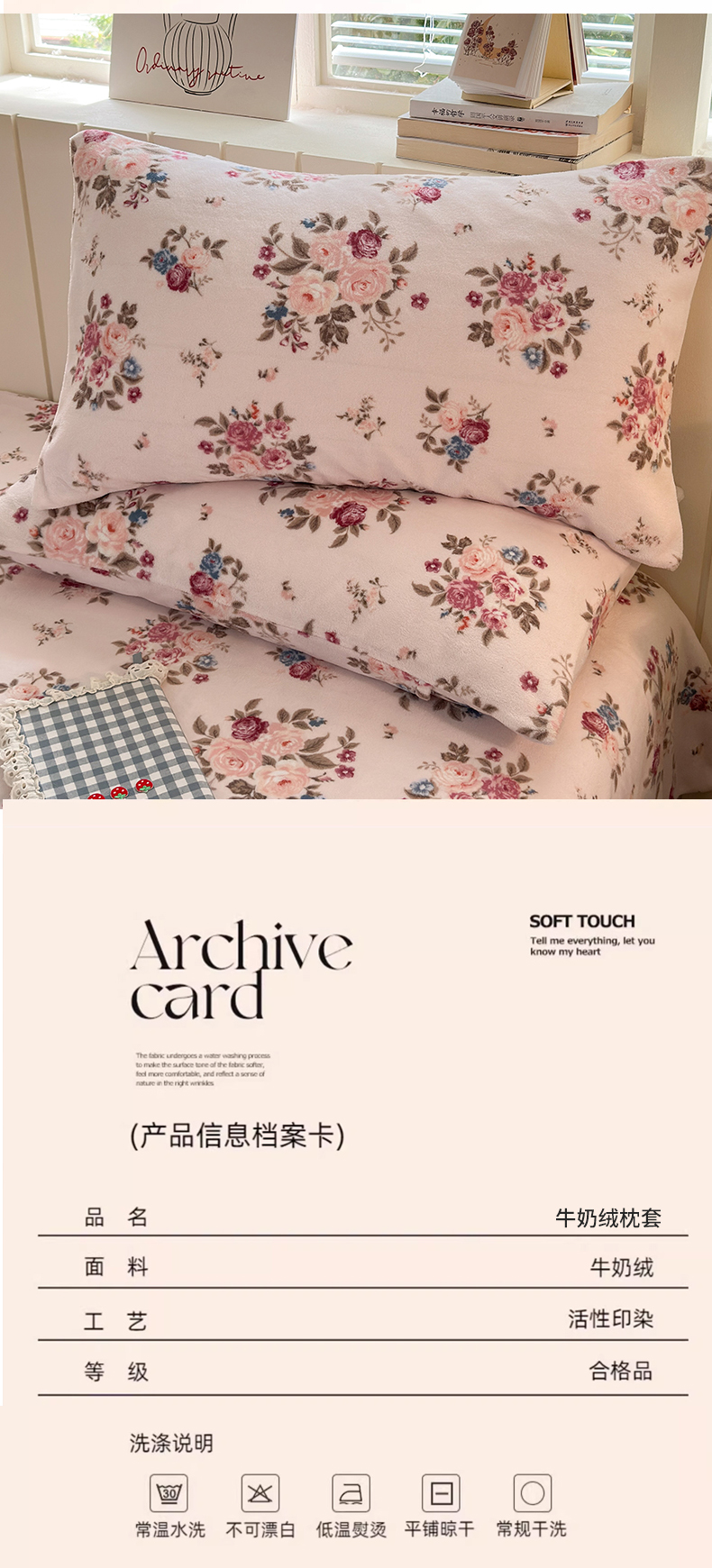 丽美人家纺 2025新款牛奶绒小版枕套 山茶花语-粉