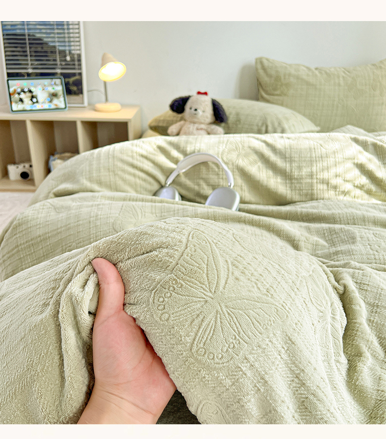 当前位置: 91家纺网 > 商品网购 > 床品套件 > 四件套 > 牛奶绒四件套 > 耀悦家纺 2025新款INS博主风立体A类全消光雕花牛奶绒四件套加厚韩系系列 蝴蝶结伴侣-奶白