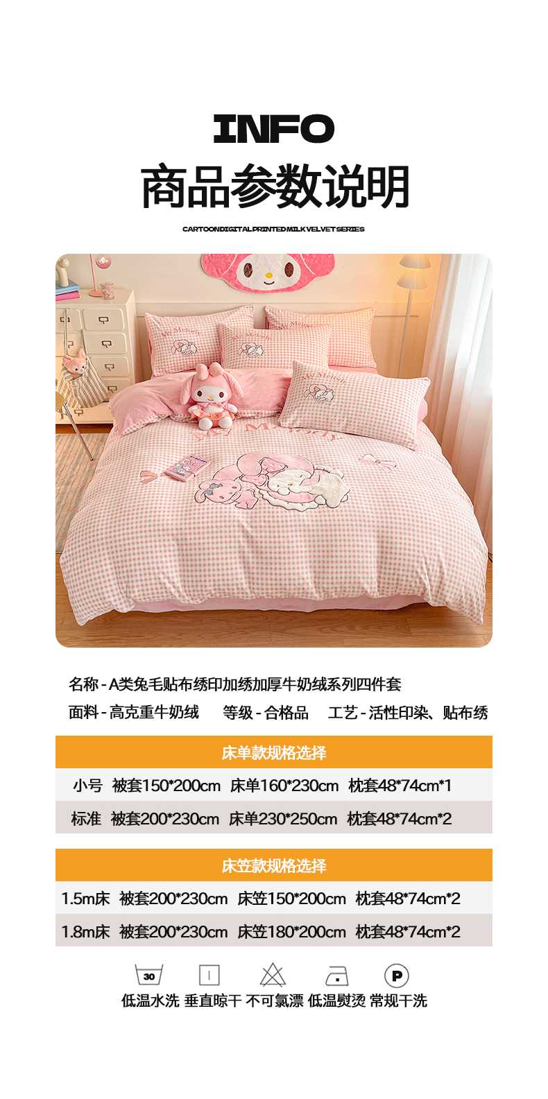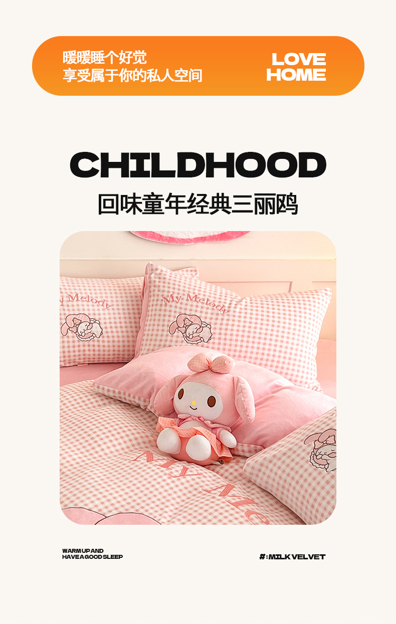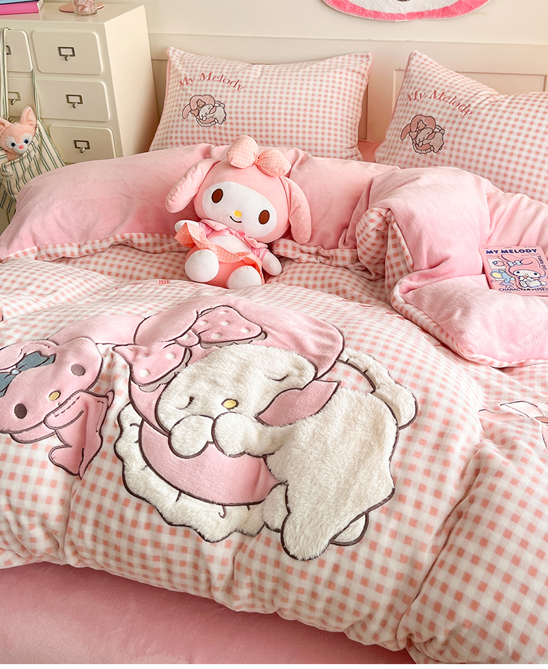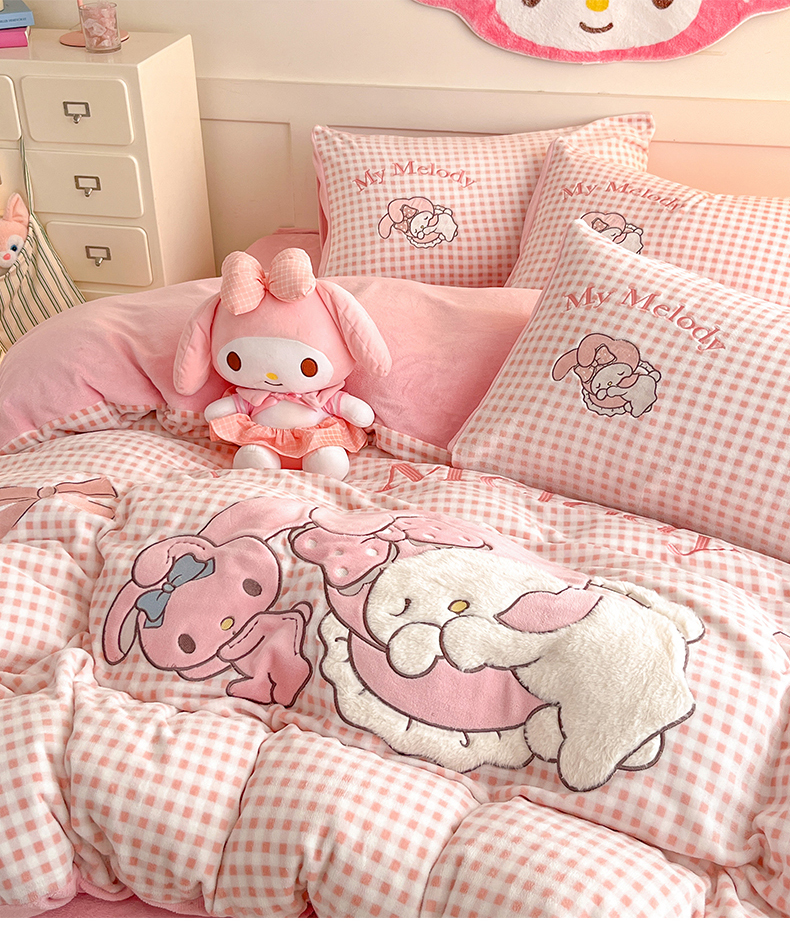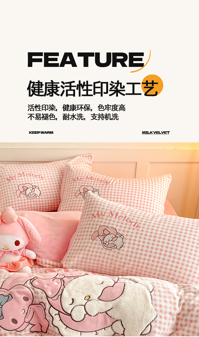 当前位置: 91家纺网 > 商品网购 > 床品套件 > 四件套 > 牛奶绒四件套 > 金爱家 2025新款A类三丽鸥授权Kitty兔毛贴布绣毛巾绣印加绣卡通少女加厚牛奶绒系列四件套 绒贴布绣-晚安美乐蒂