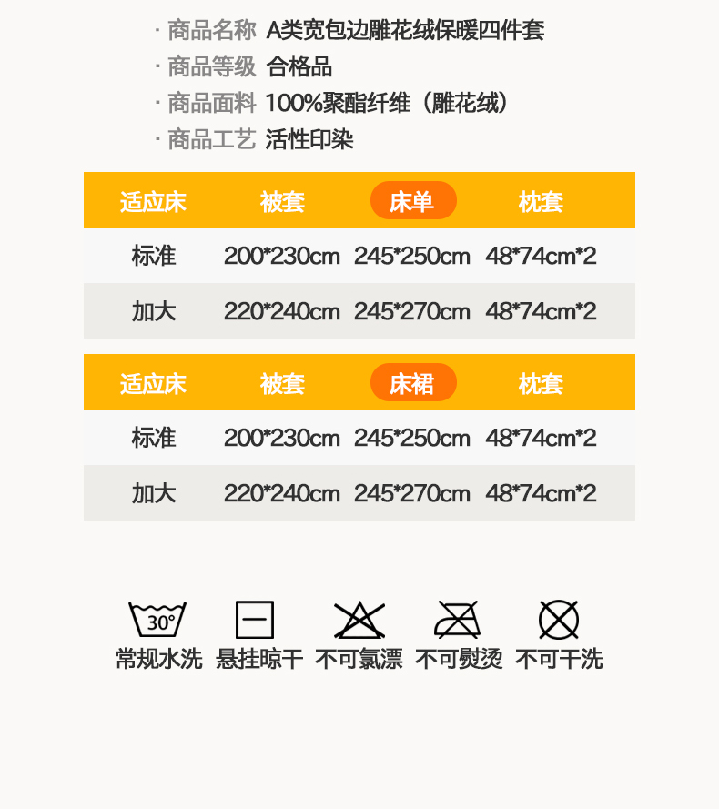 1.8m床笠款四件套 | ¥105.00 |