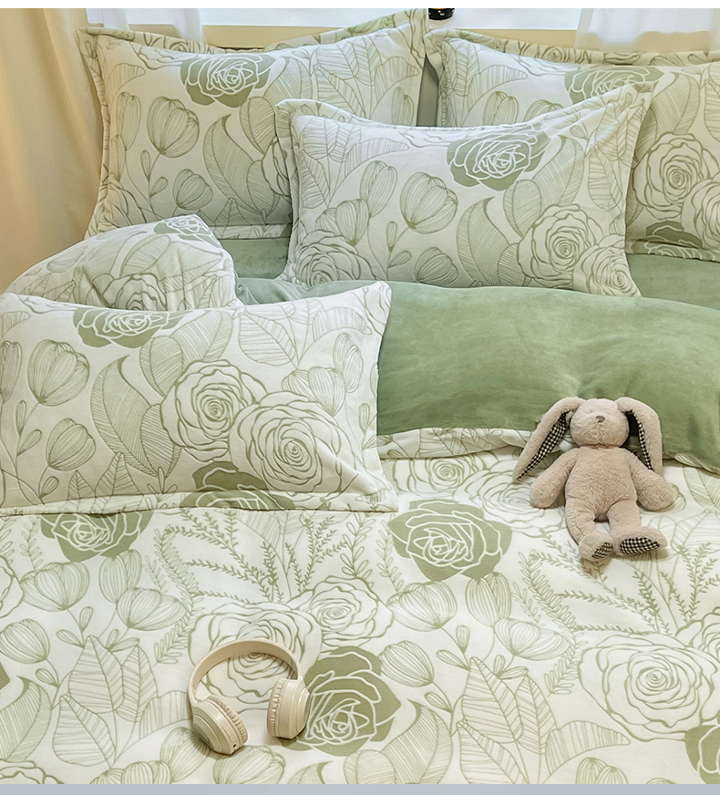 商品名称:名兮家居 2025新款高克重加厚雕花绒枕套 朵美-绿
