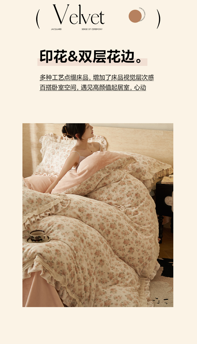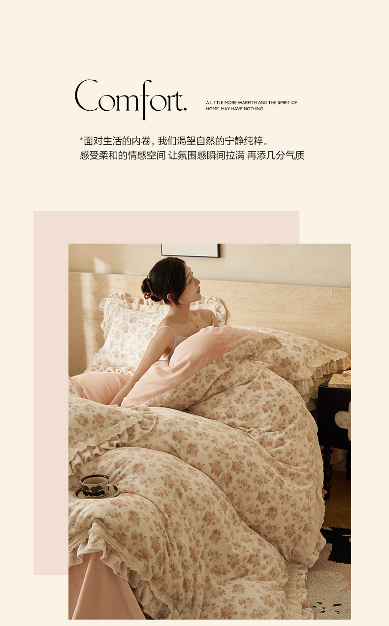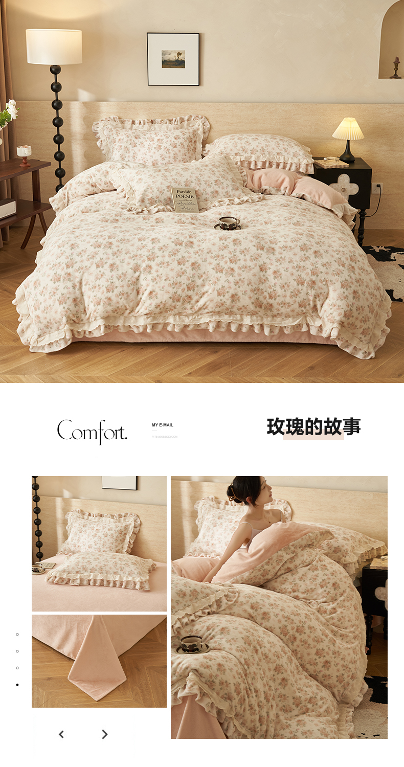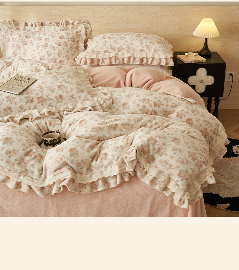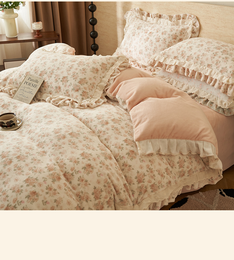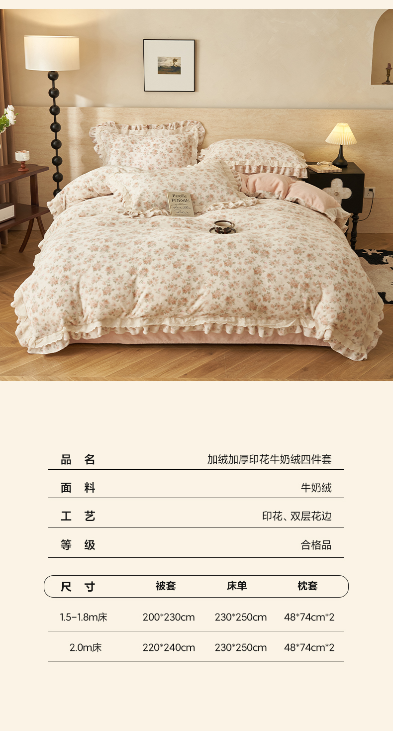 当前位置: 91家纺网 > 商品网购 > 床品套件 > 四件套 > 牛奶绒四件套 > 晨曦家纺 2025新款加绒加厚230克少女风双层花边牛奶绒印花四件套 花妮