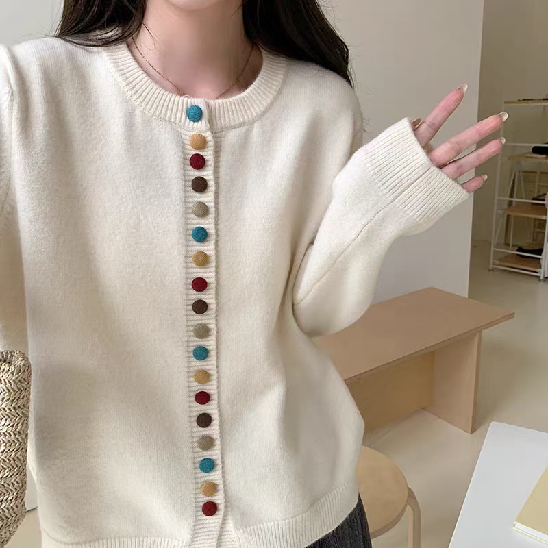 (总)洛兰沙家居馆 只代发小香风毛衣女春秋慵懒可爱甜美蕾丝V领针织开衫短款外套温柔上衣