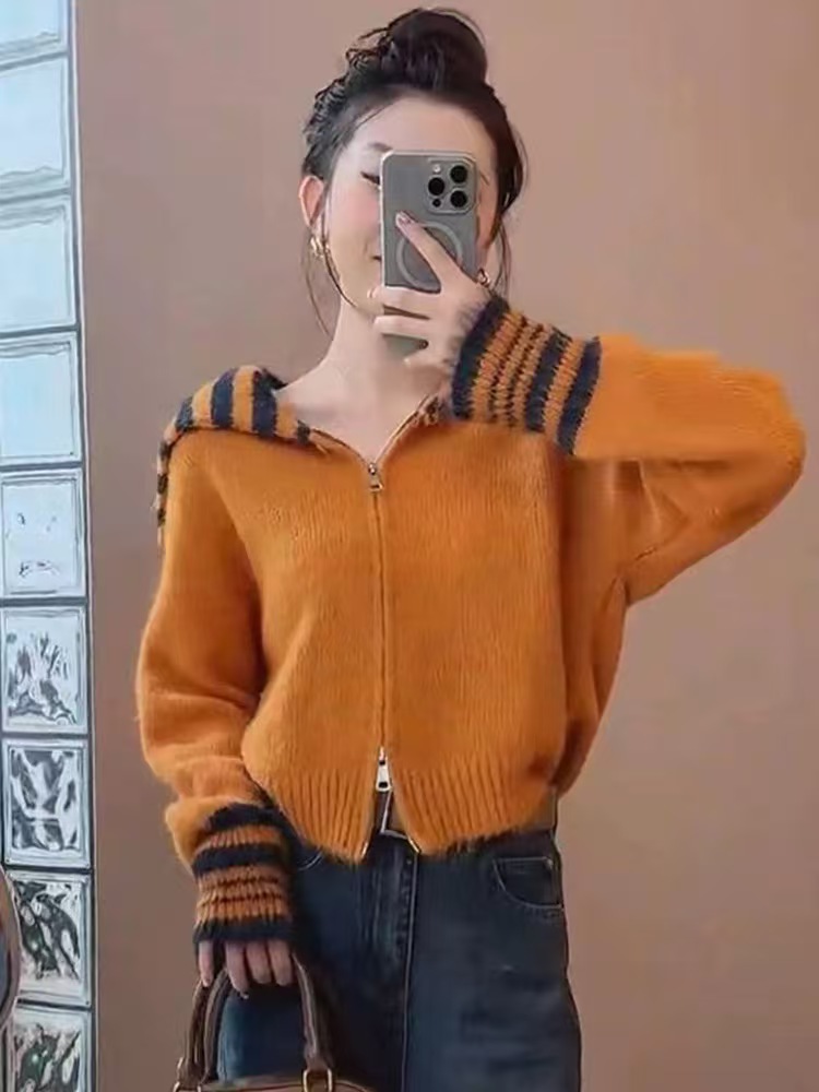 (总)洛兰沙家居馆 只代发欧洲站秋季新休闲款毛衣外套大领修身型扣宽松软糯针织开衫