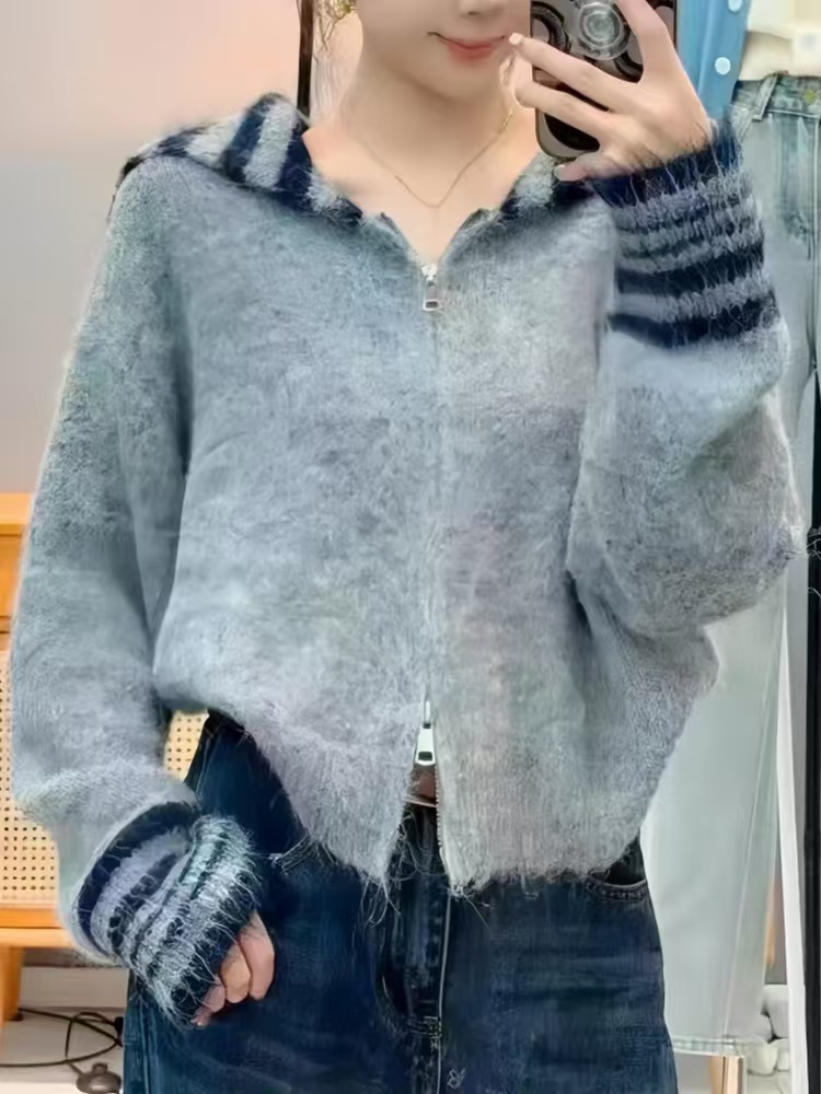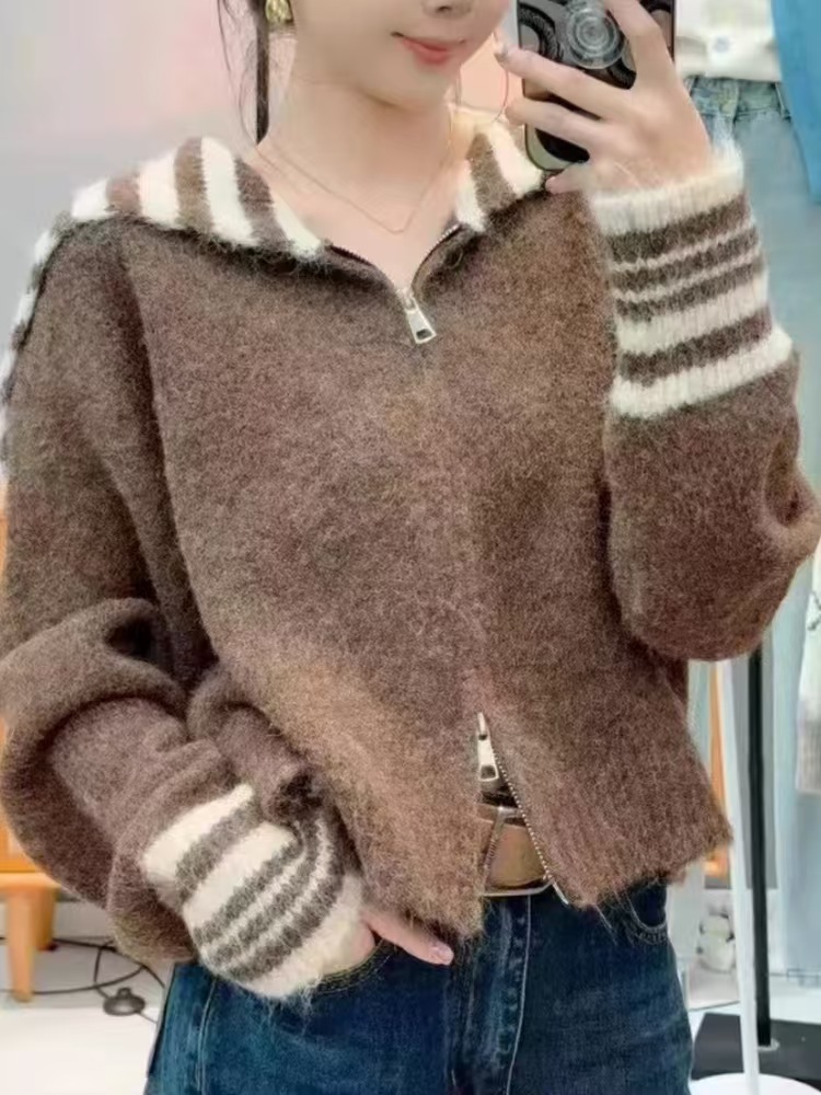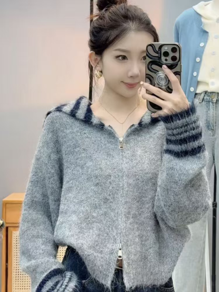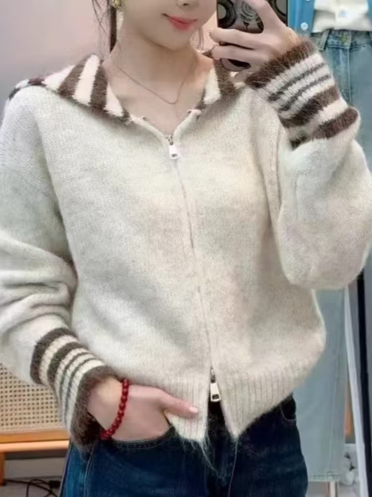 商品名称:(总)洛兰沙家居馆 只代发欧洲站秋季新休闲款毛衣外套大领修身型扣宽松软糯针织开衫