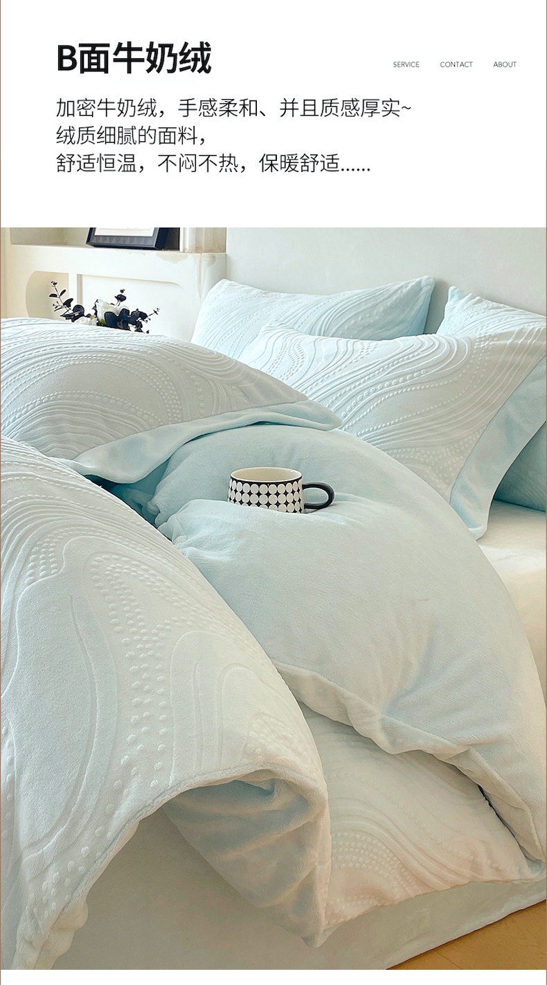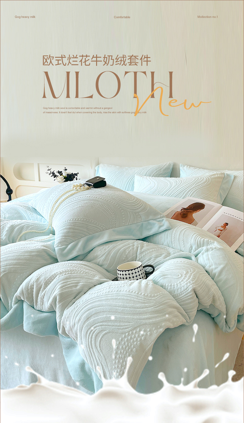 (总)乐蔻家纺 2025新款欧式烂花牛奶绒四件套-弗洛,弗洛-豆绿,弗洛-奶白,弗洛-天青