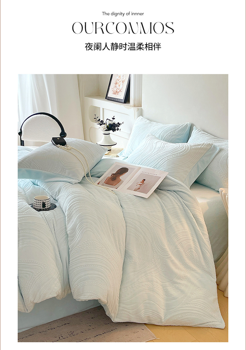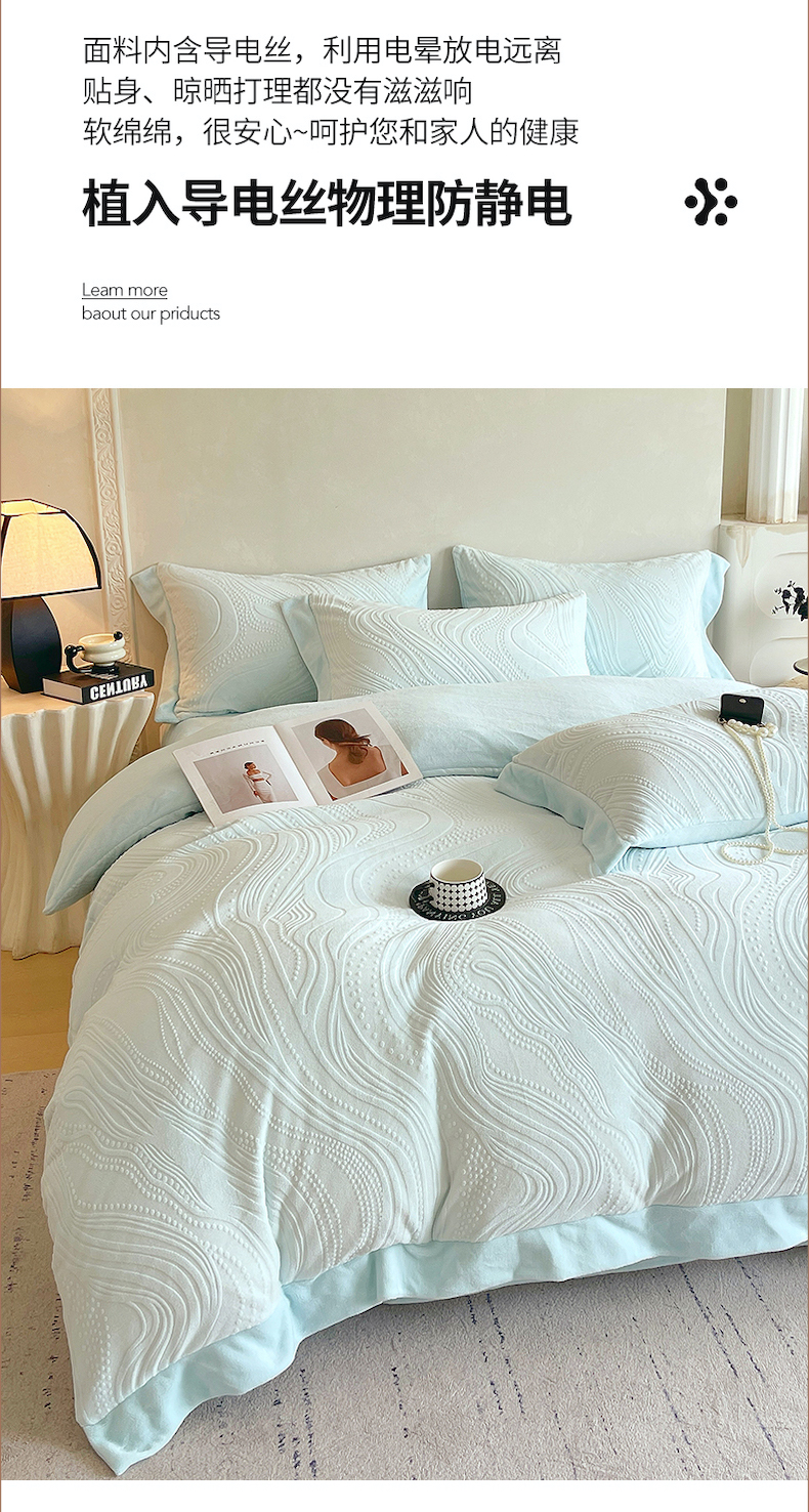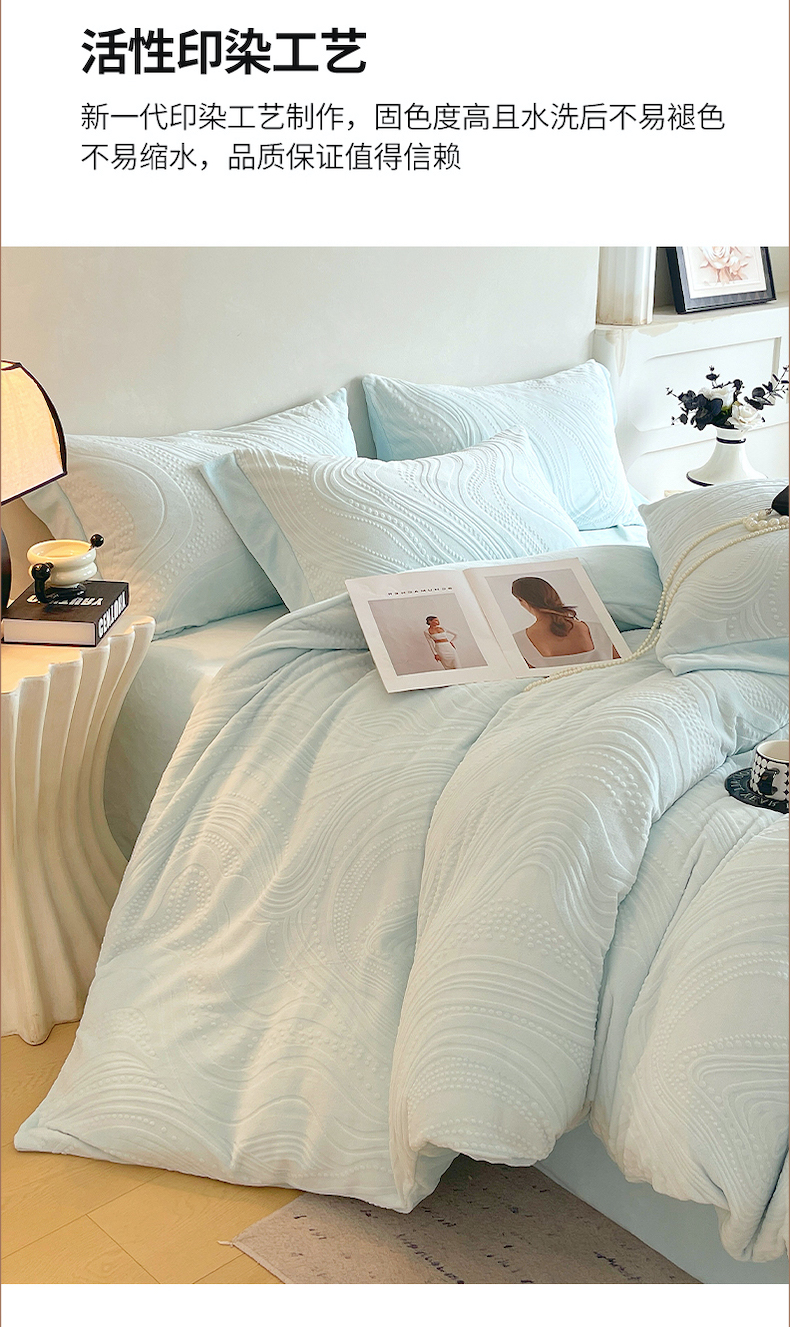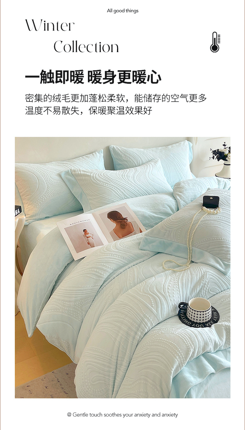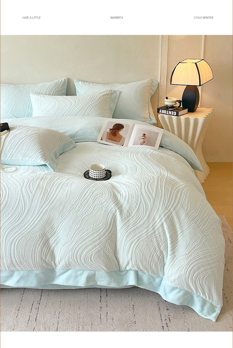 乐蔻家纺 2025新款欧式烂花牛奶绒四件套-弗洛 弗洛-天青