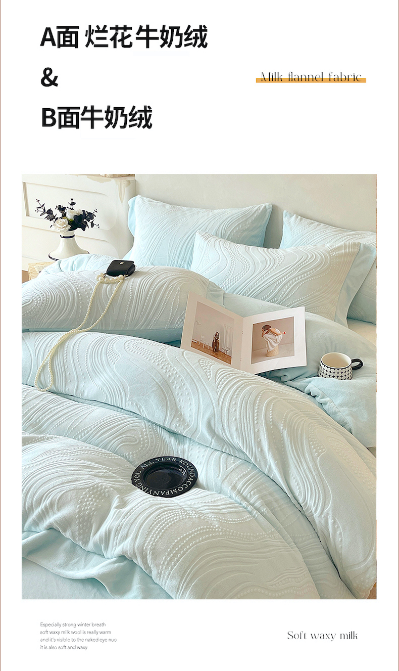 (总)乐蔻 2024款韩版荷叶边230g烂花小雏菊牛奶绒四件套保暖套件,小雏菊-奶白,桃乐丝-翡翠绿,桃乐丝--奶白,桃乐丝-驼,蝶恋花-蝴蝶粉,蝶恋花-宁静蓝,蝶恋花-银鱼白,小雏菊-薄暮灰,小雏菊-湖水蓝,小雏菊-樱花粉