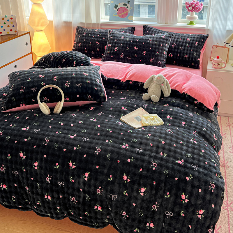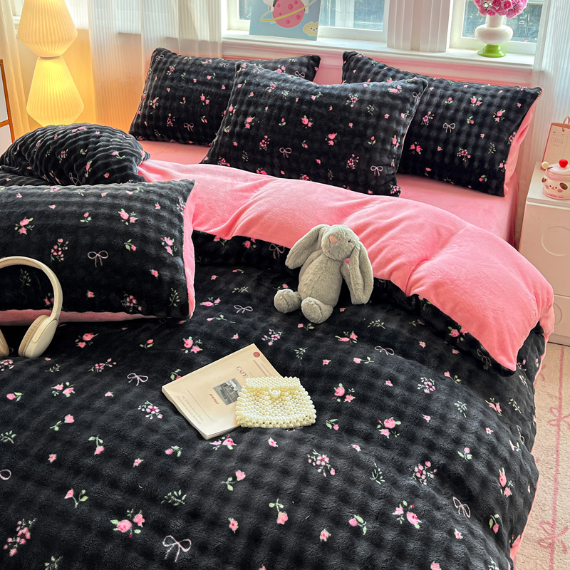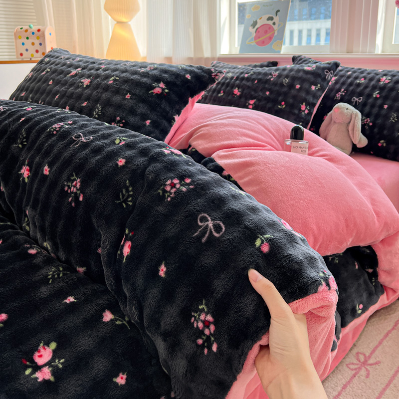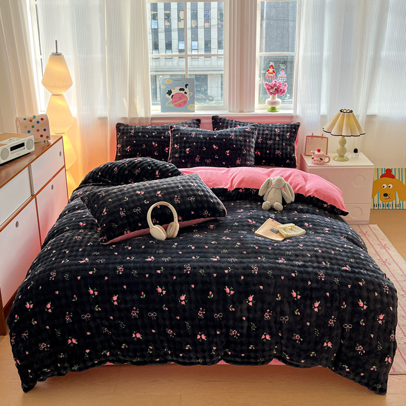 一比一 2025新款亲肤舒适保暖泡泡绒牛奶绒四件套 暗香