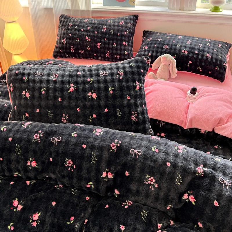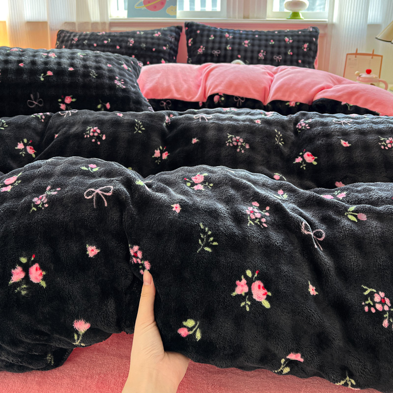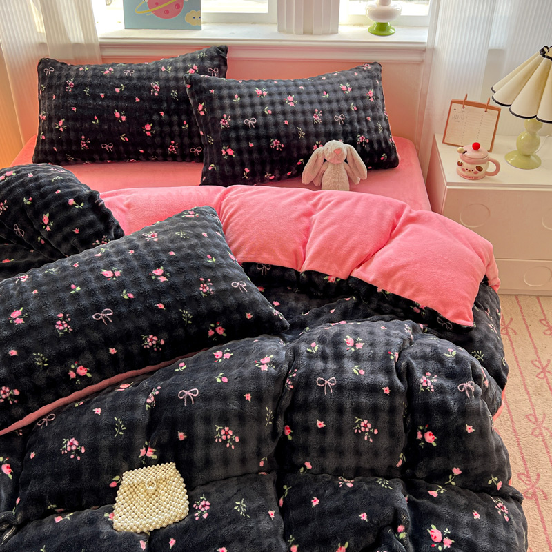 (总)一比一家纺 2025新款保暖舒适云感纱➕绒加绒四件套,樱桃灰,格子蝴蝶结紫,黛秋,蝶影 - 灰,花漾,蝶影- 紫,冬日暖阳,蝴蝶结点点- 紫,兰亭序,兰溪,曼塔玫瑰,南城旧事,闲趣花开,樱桃小狗,紫蔓花开,格林黑,小美满,婉约